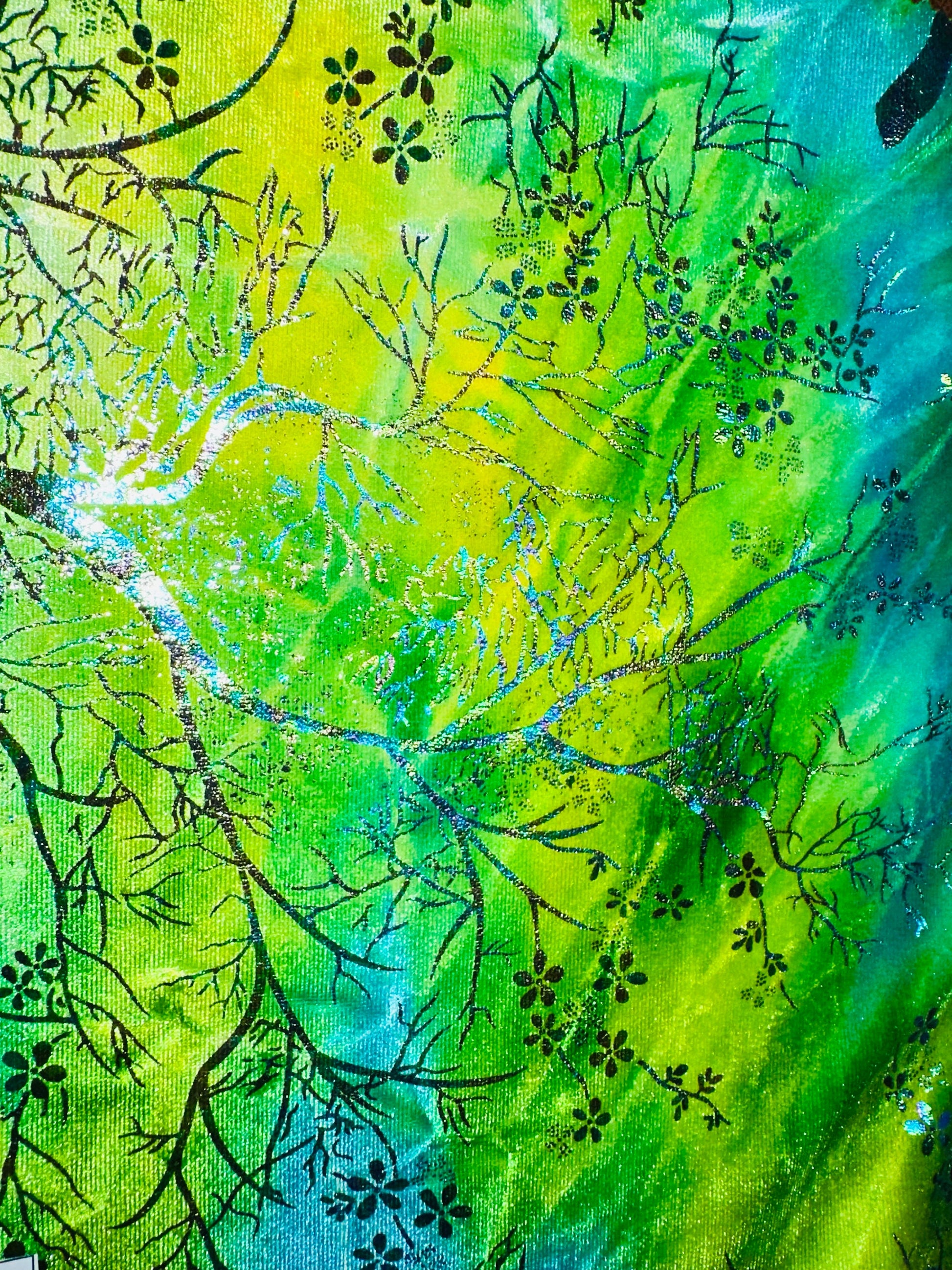 New Luxury tie dye stretch velvet with Japanese Garden design 4-way stretch 58/60”