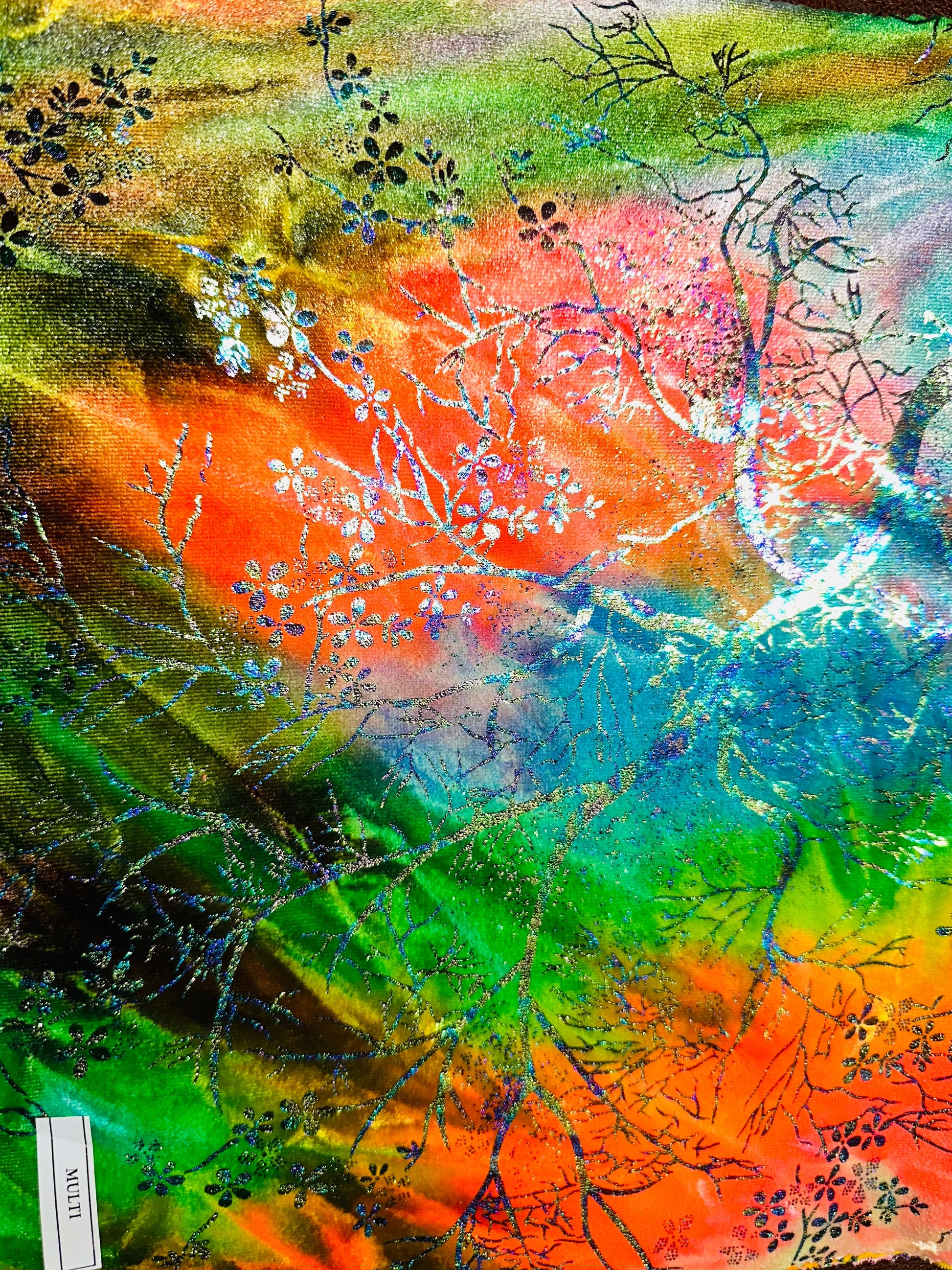 New Luxury tie dye stretch velvet with Japanese Garden design 4-way stretch velvet with foil 58/60” Sold by the YD. 420G high quality fabrics by AlexLAFabrics Sold by the YD. Ships worldwide from Los Angeles California USA