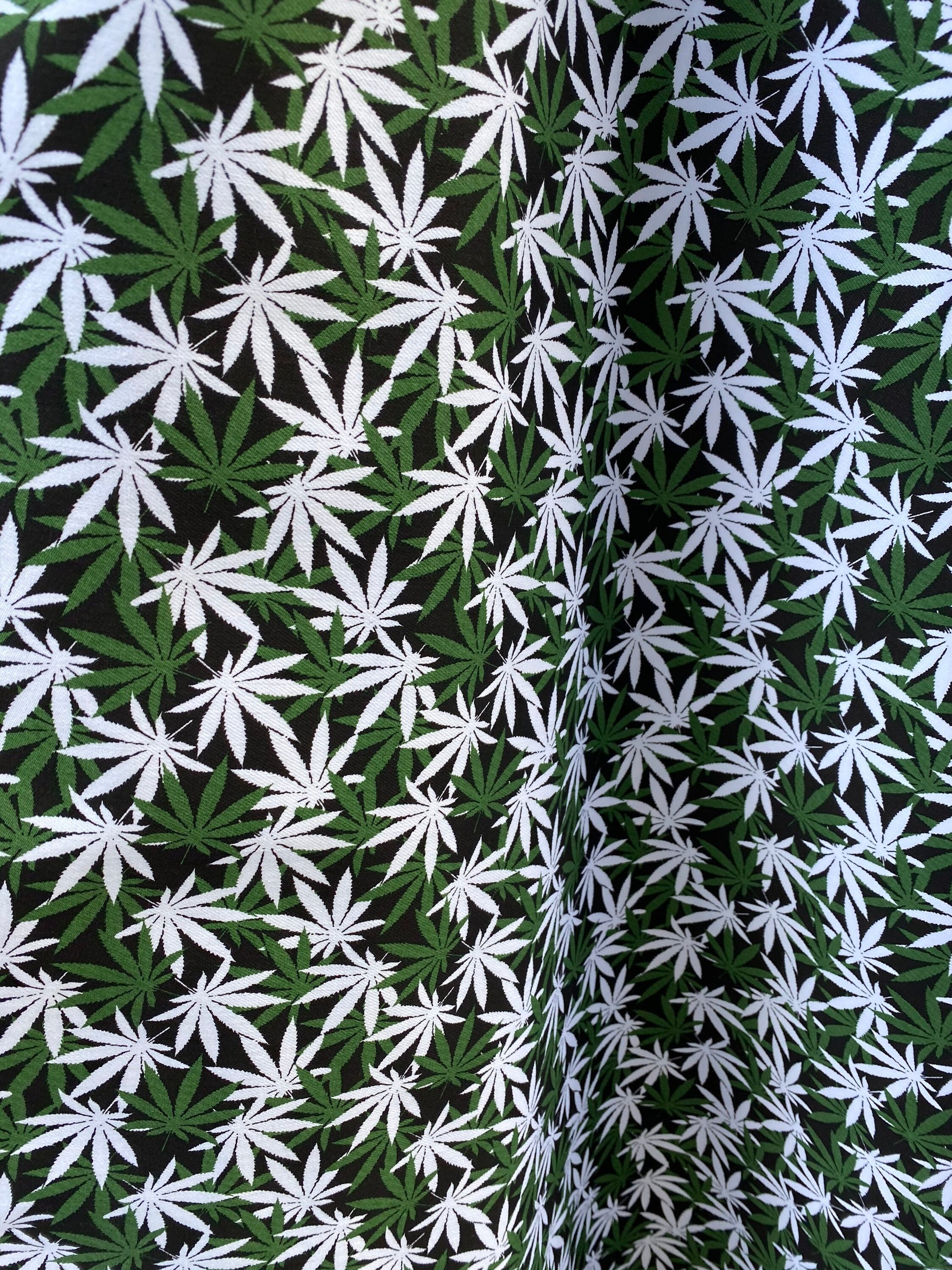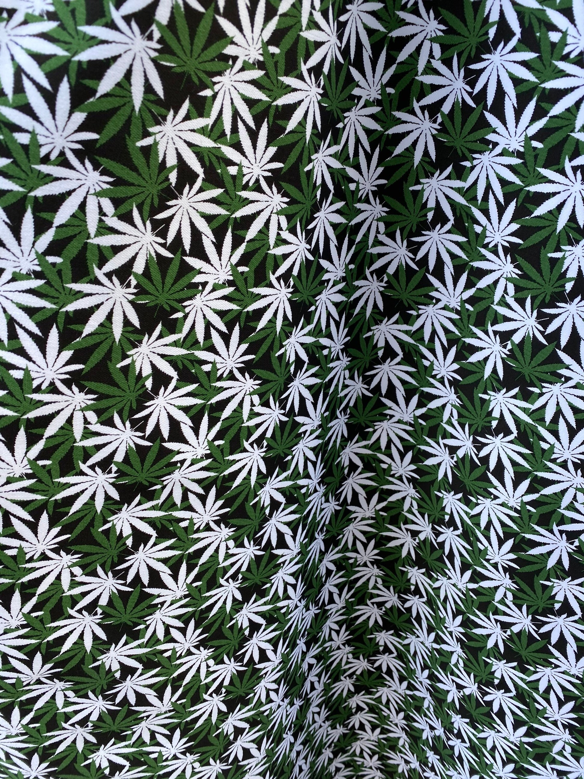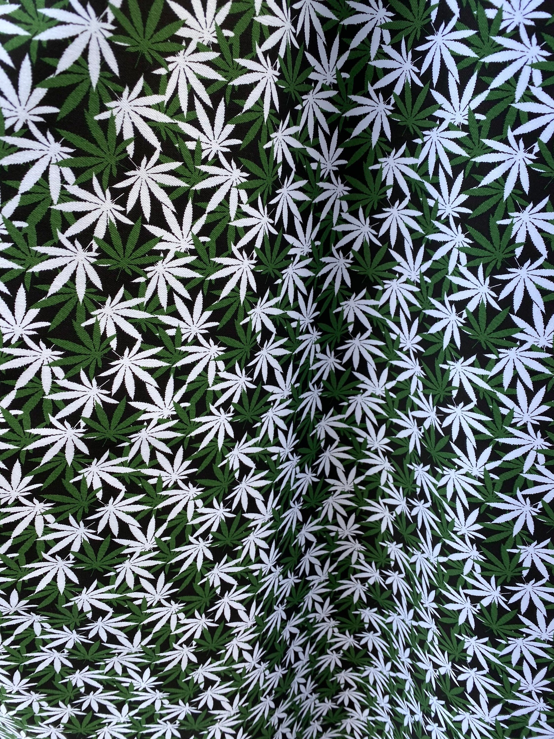New marijuana design print on poly cotton twill 2way stretch 54/55” Sold by the YD. Ships worldwide from Los Angeles California USA.