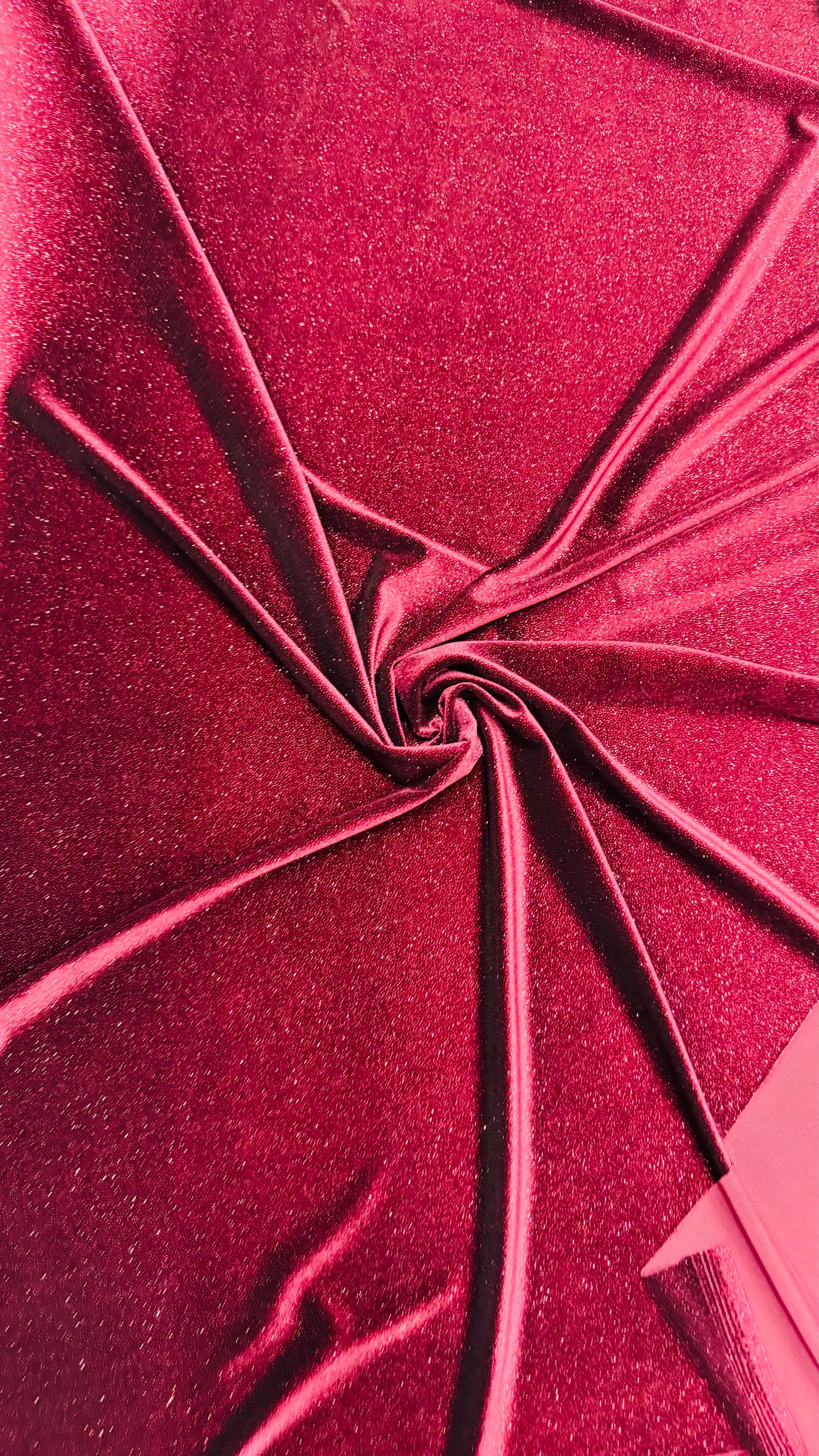 New Merlot stretch velvet wit glitter dots 4 way stretch 58/60" Sold by the YD. Ships worldwide from Los Angeles California USA. High quality fabrics by AlexLAFabrics