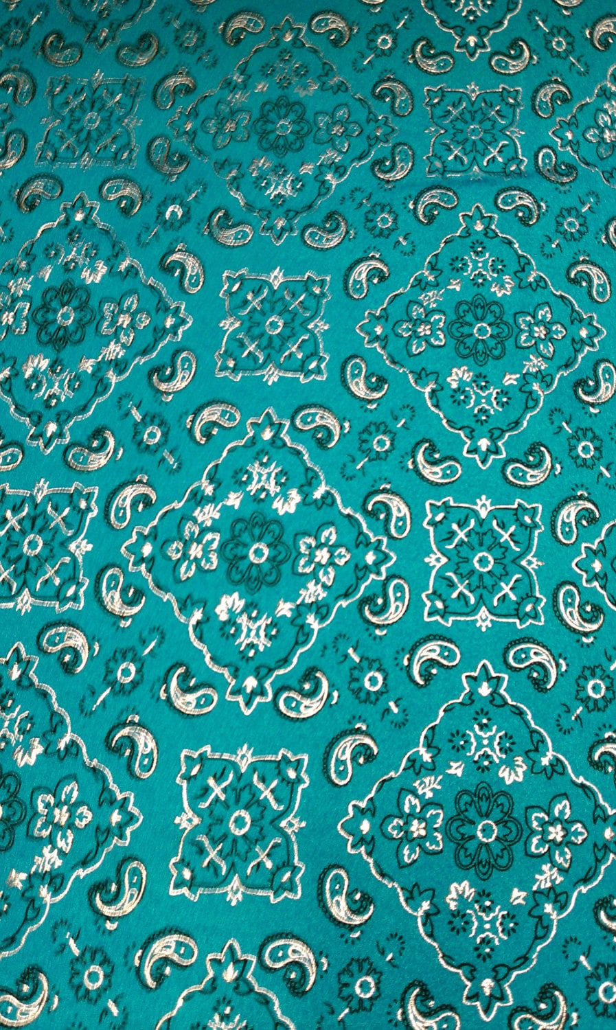 New metallic Bandanna paisley design 4 Way Stretch 58/60” Sold by the YD. Ships worldwide from Los Angeles California USA.