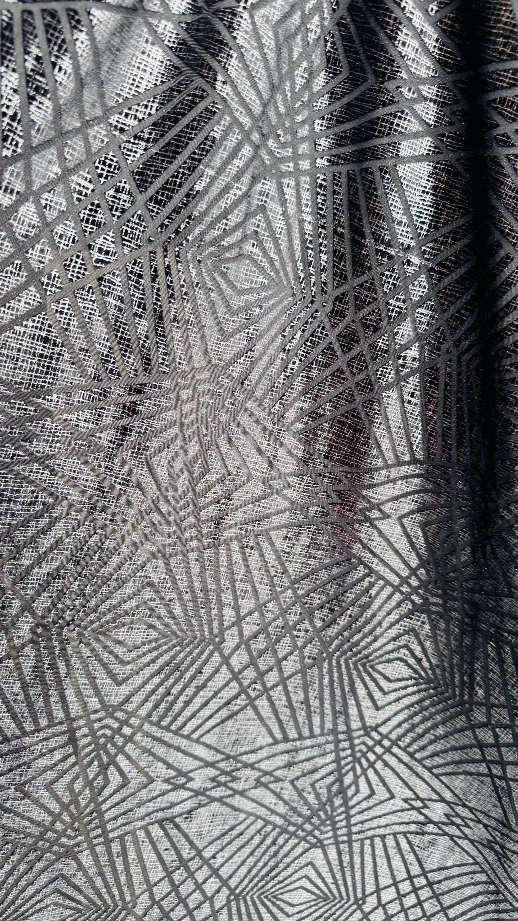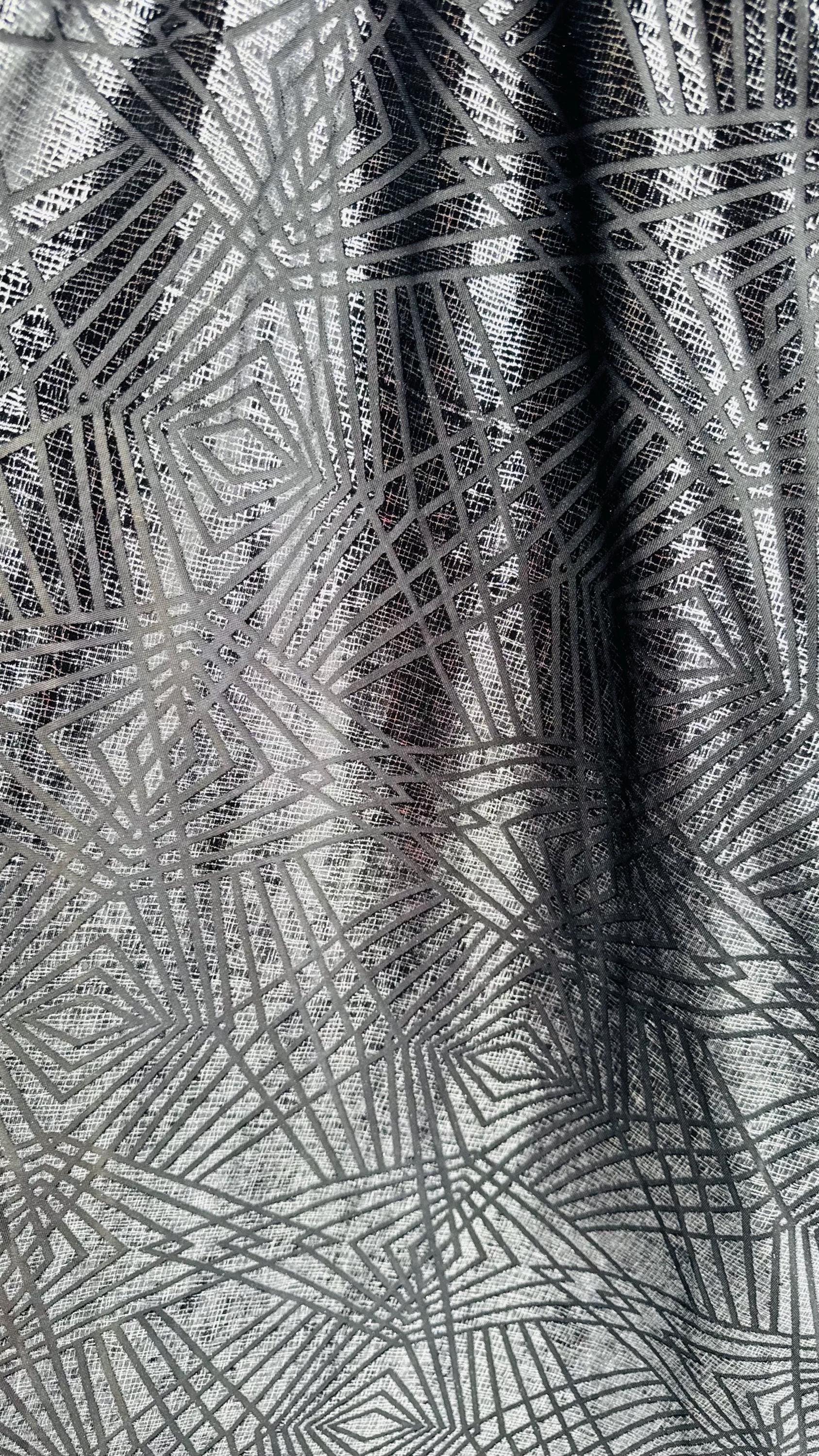 New Metallic Geometric design burnout spandex 4-way stretch Black/Silver 58/60” Sold by the YD. Ships worldwide from Los Angeles California USA. High quality fabrics by AlexLAFabrics