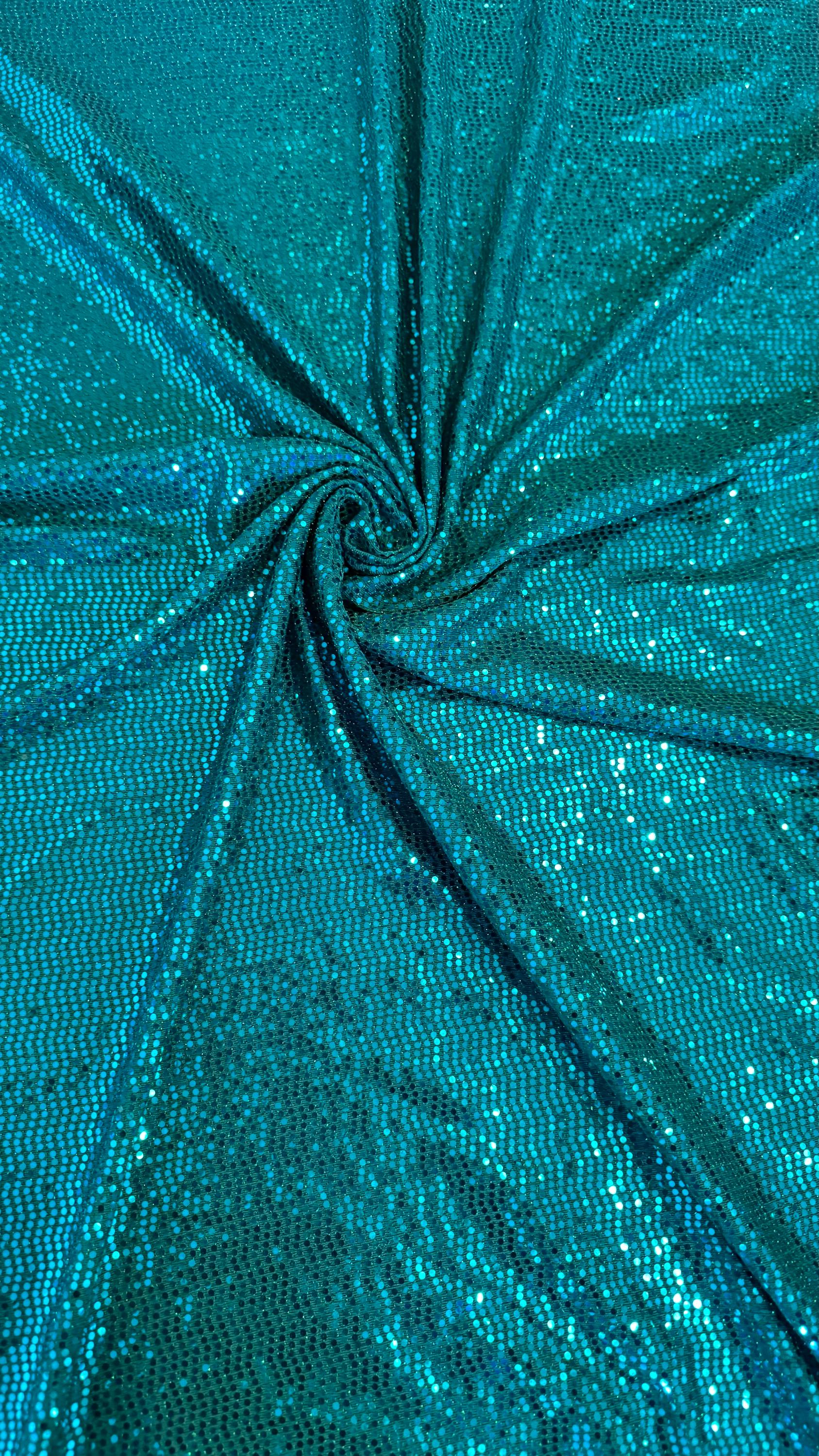 New mini hologram sequins Teal/Green on metallic spandex 4-way stretch 58/60” Sold by the YD. Ships worldwide from Los Ángeles California USA. High quality fabrics by AlexLAFabrics