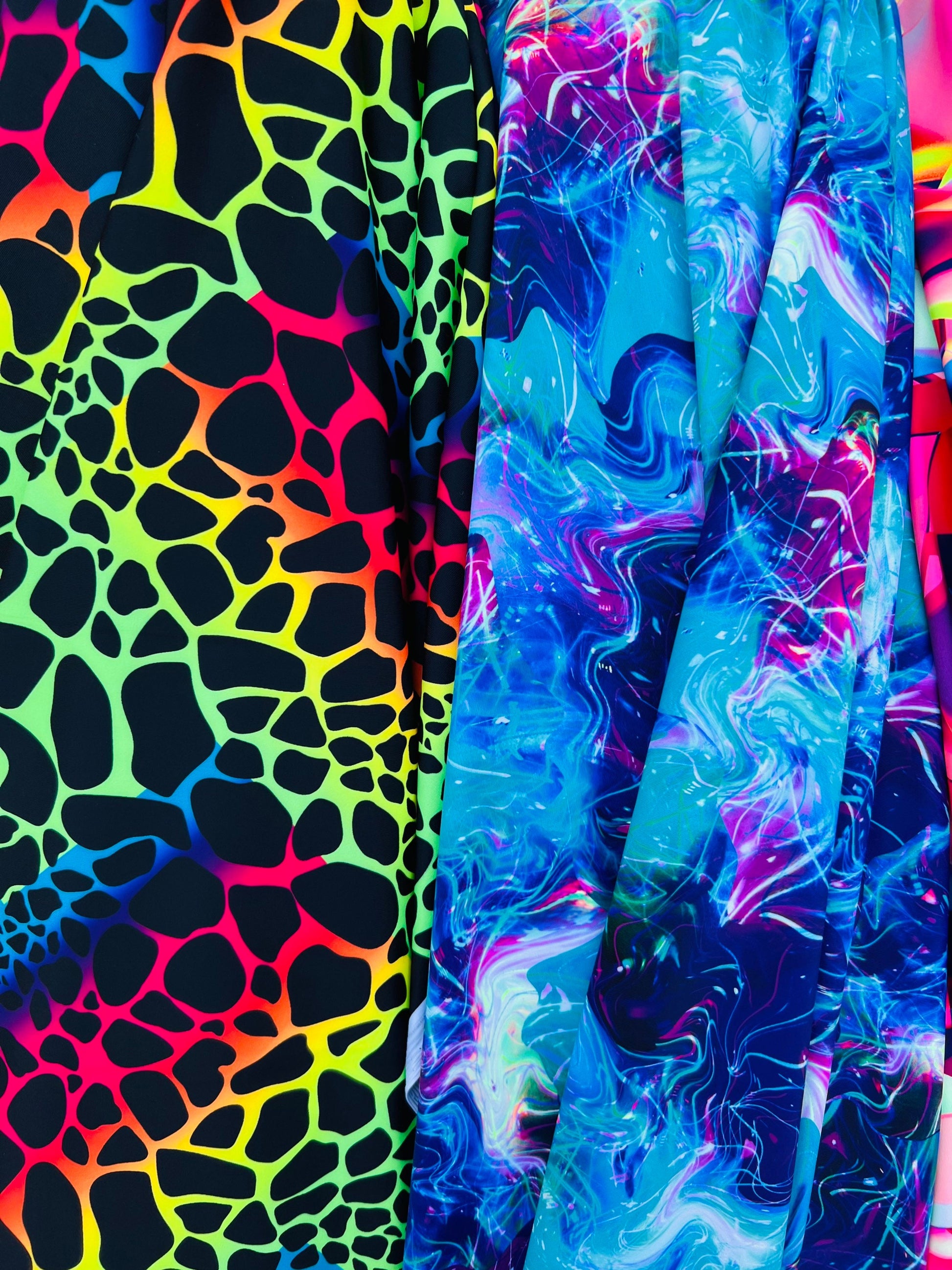 New modern designs multi prints on best quality of nylon spandex 4-way stretch 58/60” Sold by the YD. Ships worldwide from Los Angeles cali