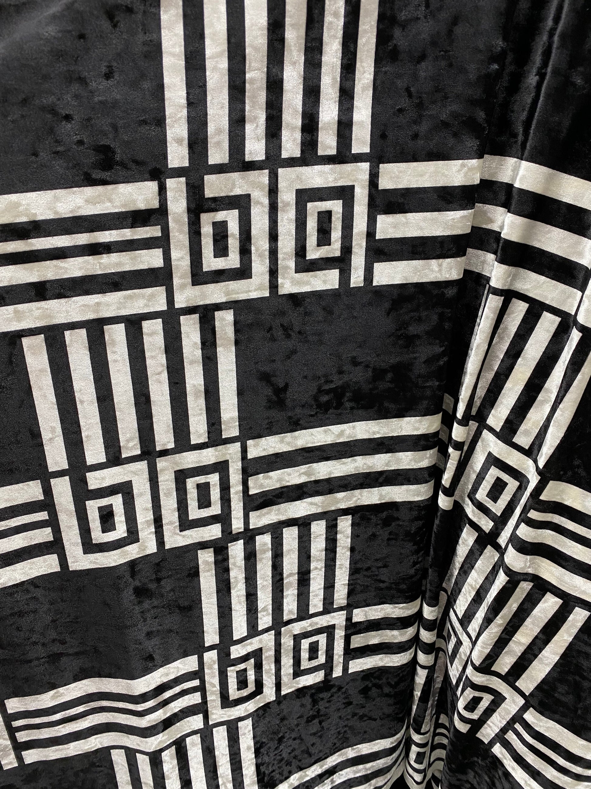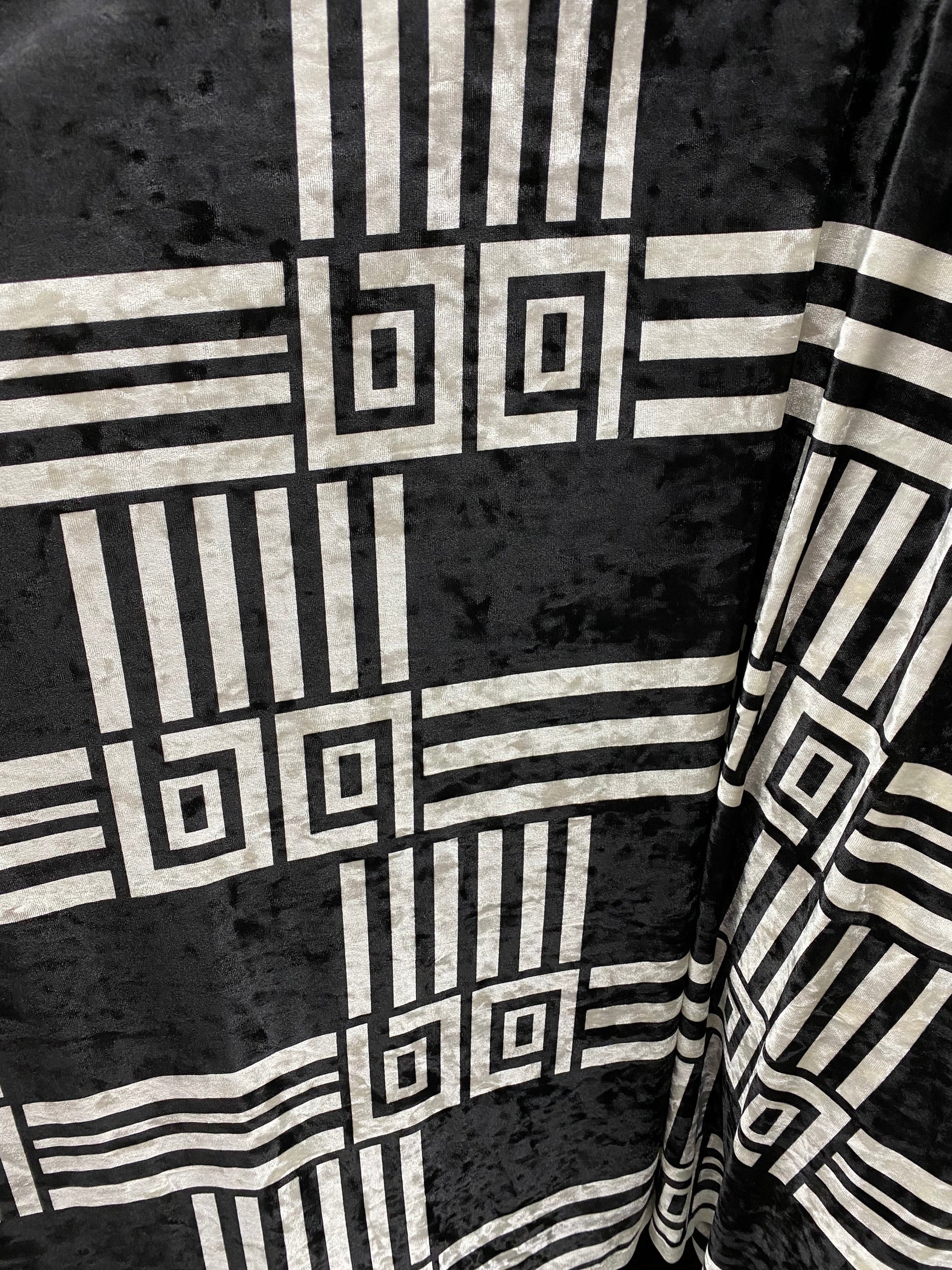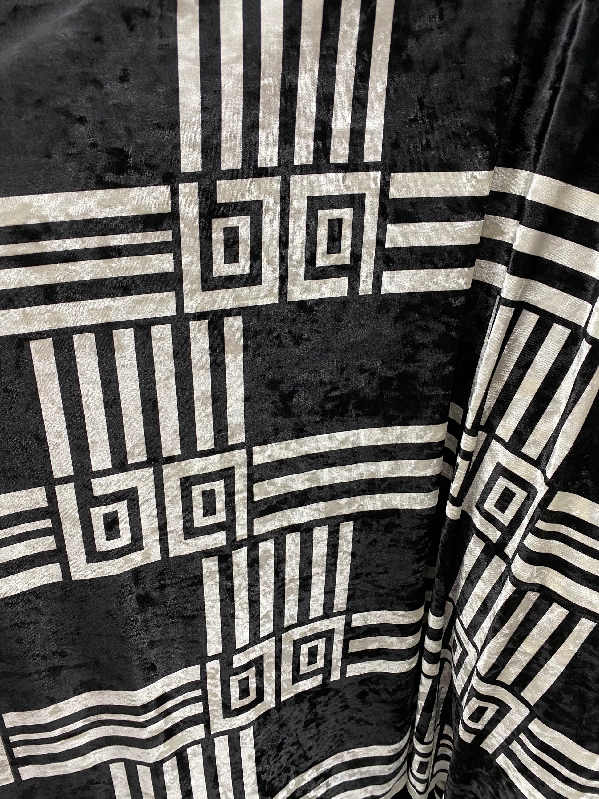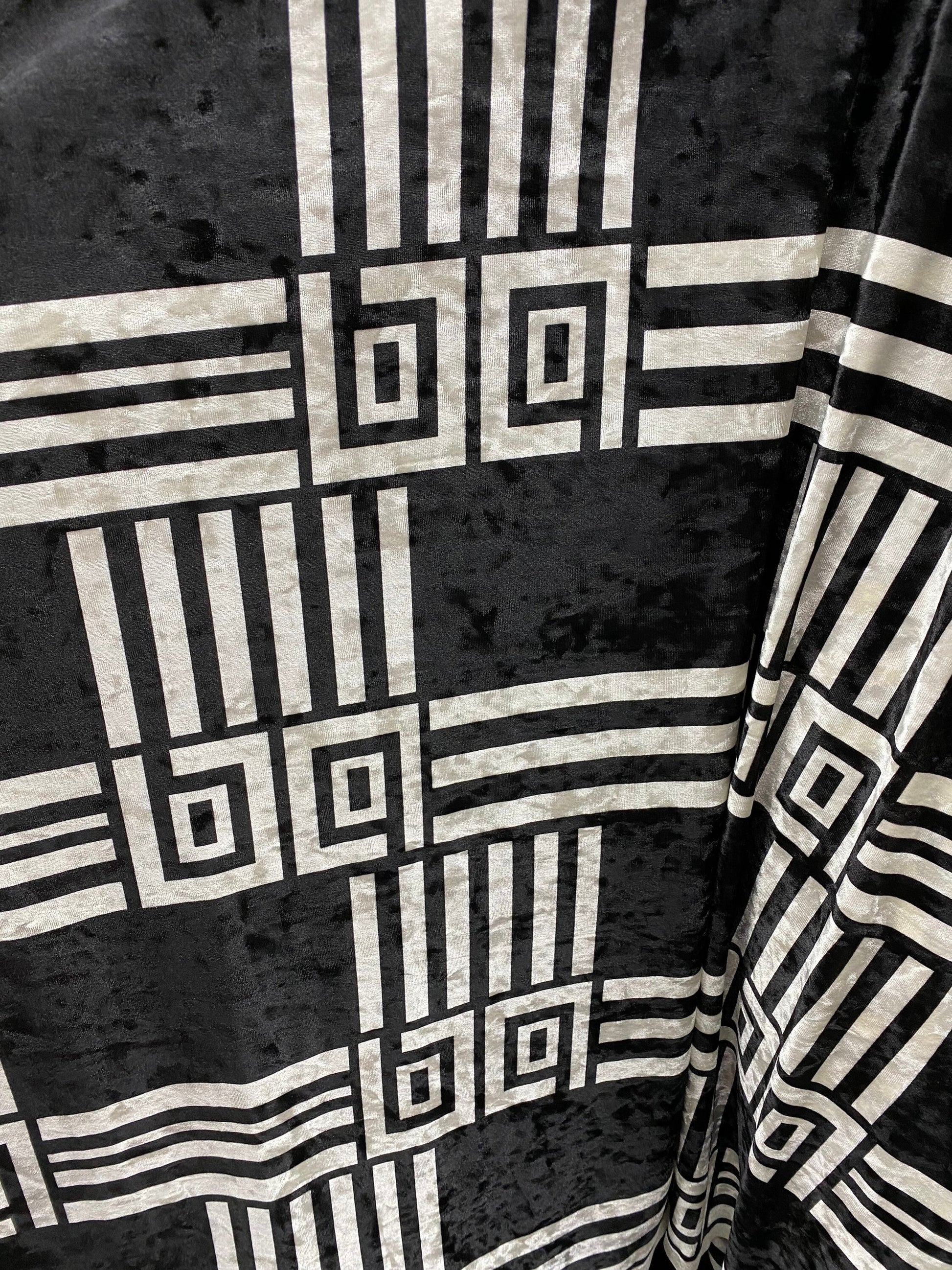 New modern geometric design print on stretch velvet 4-way stretch 58/60” Sold by the YD. Ships worldwide from Los Angeles California USA.
