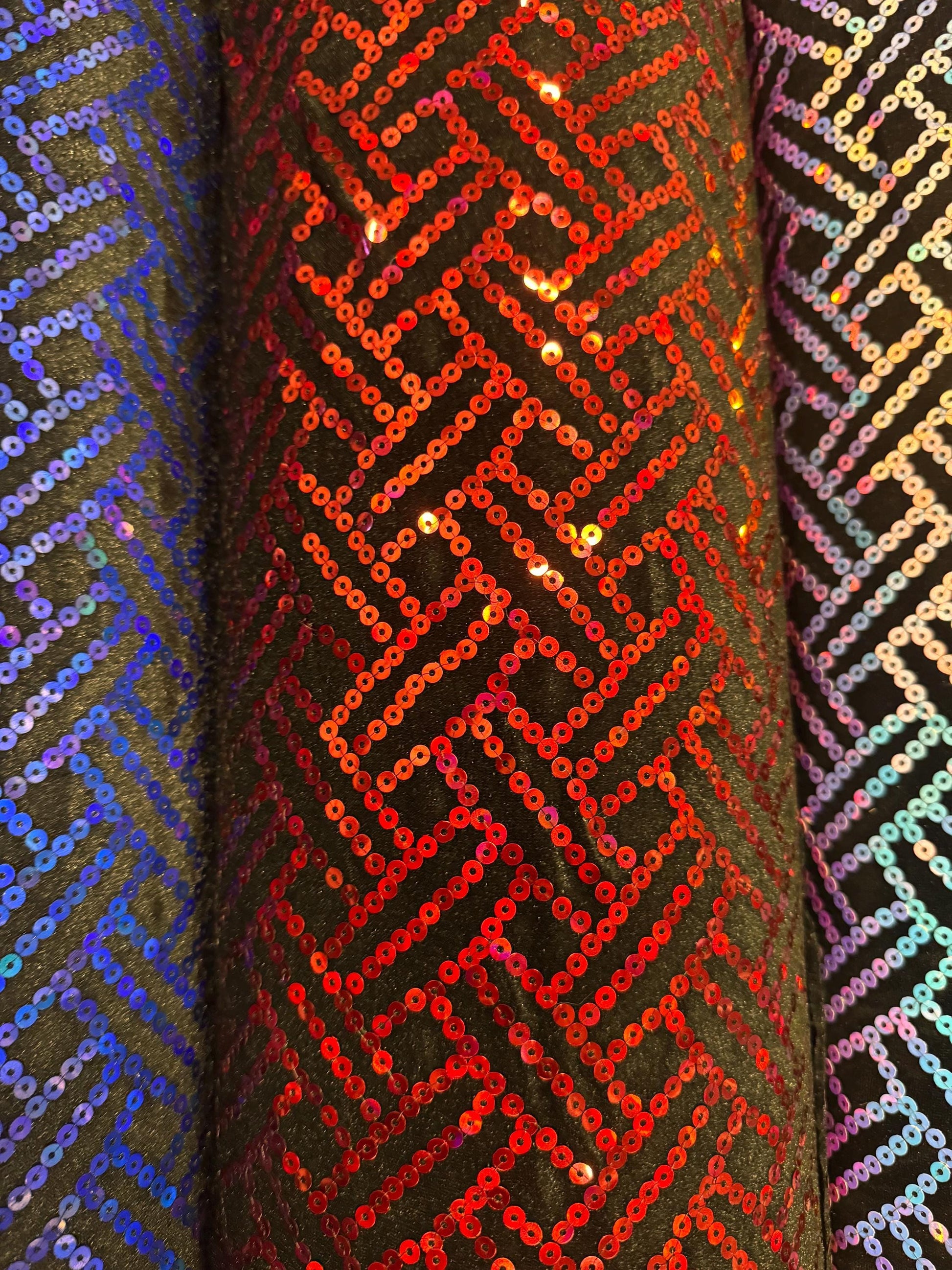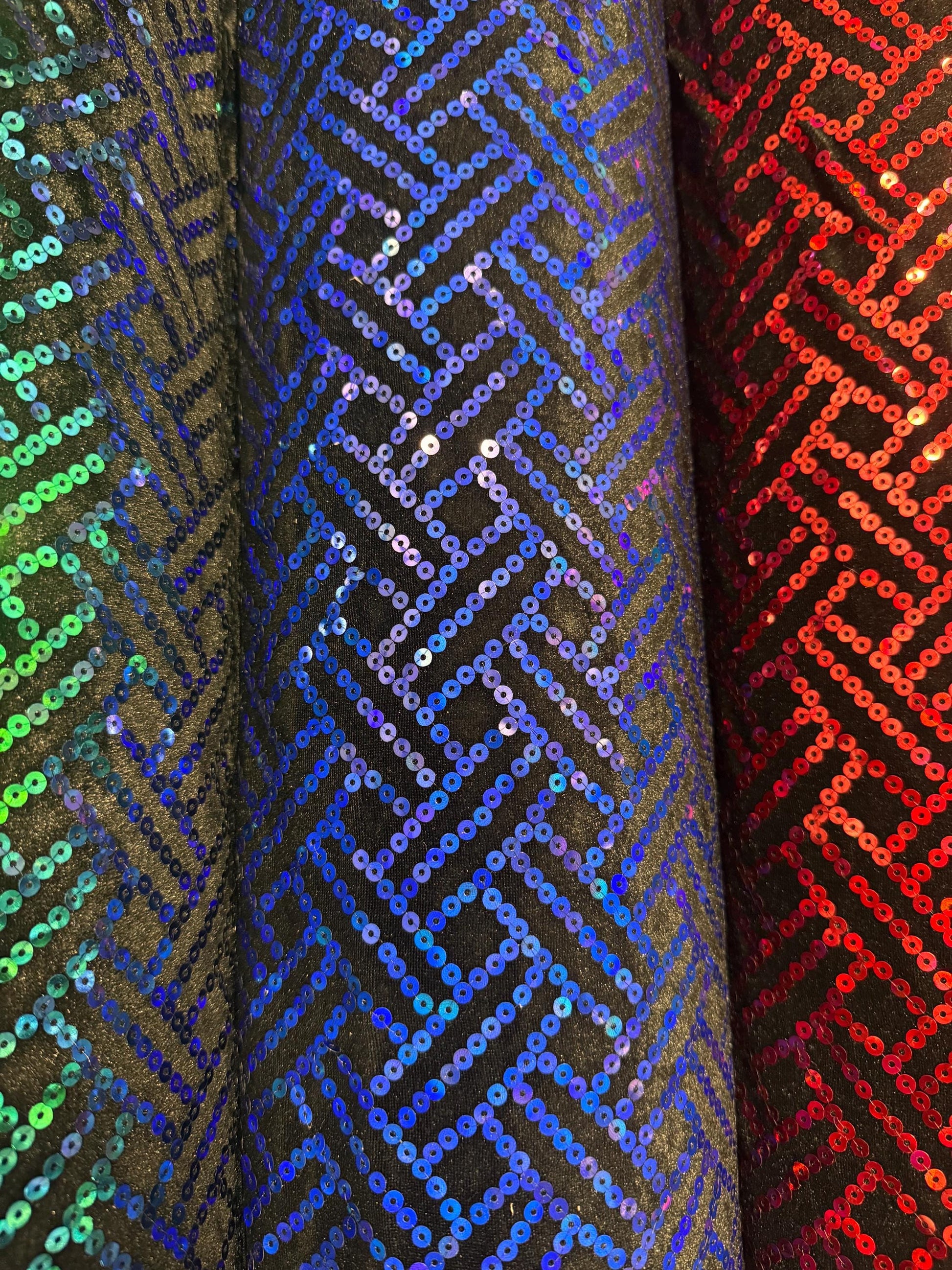 New Modern Overlap 3D Iridescent sequins on heavy stretch velvet 4way 2tone sequins 58/60" Sold by the YD. Ships worldwide from LA CA