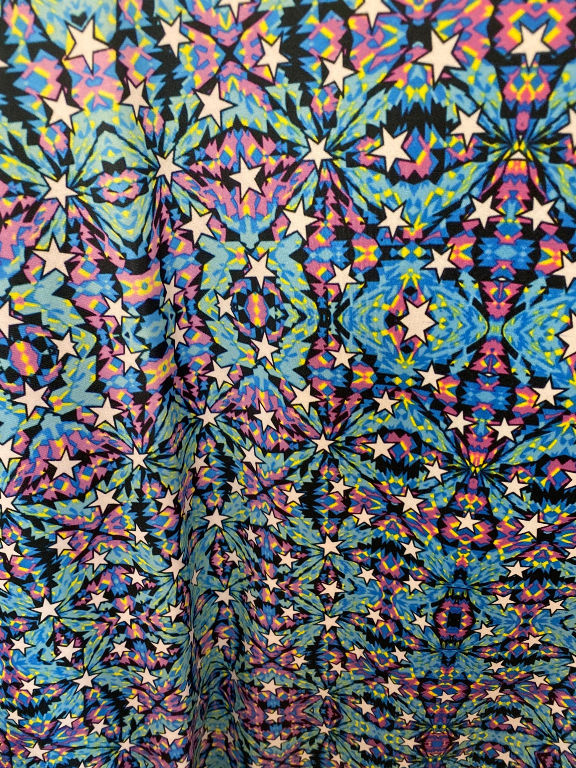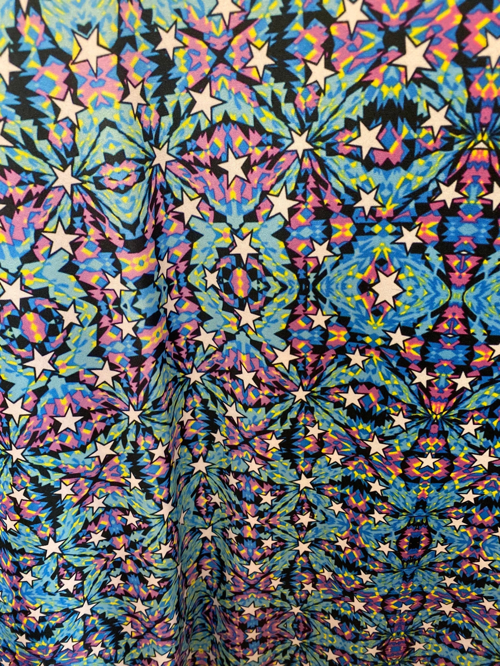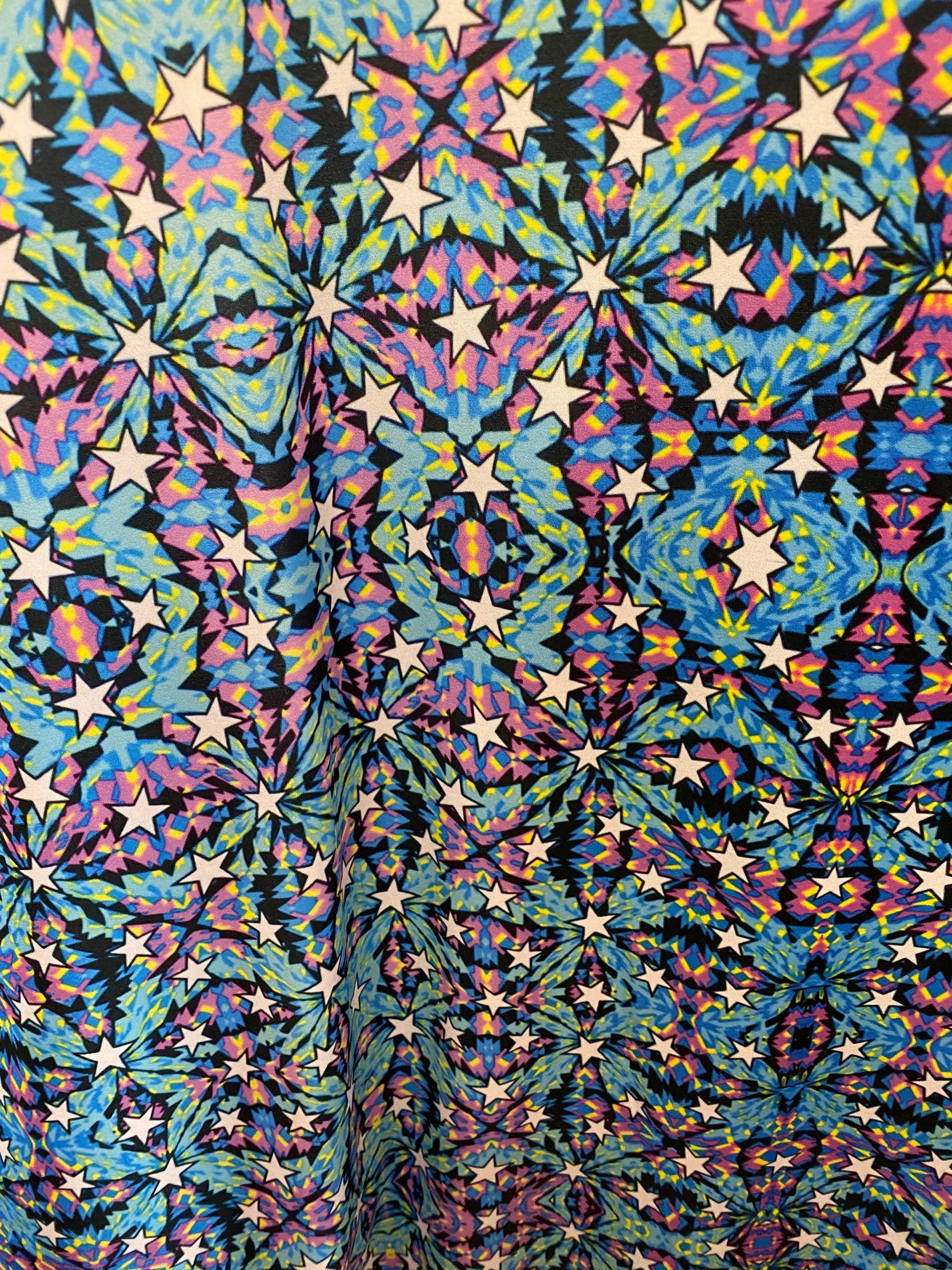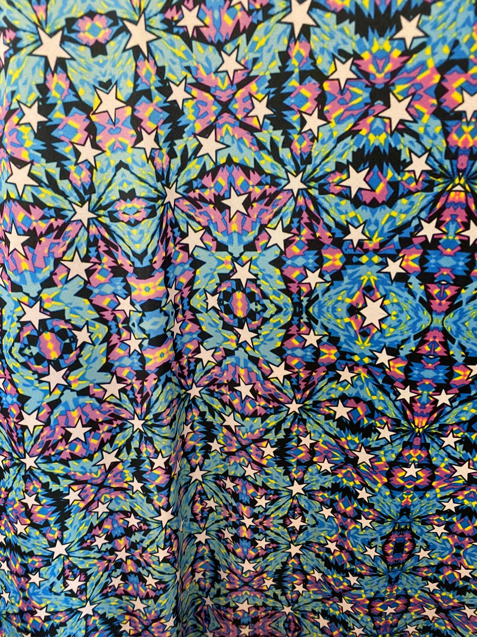 New modern stars abstract design print on great quality of nylon spandex 4-way stretch 58/60” Sold by the YD. Ships Worldwide from Los Angeles California USA.