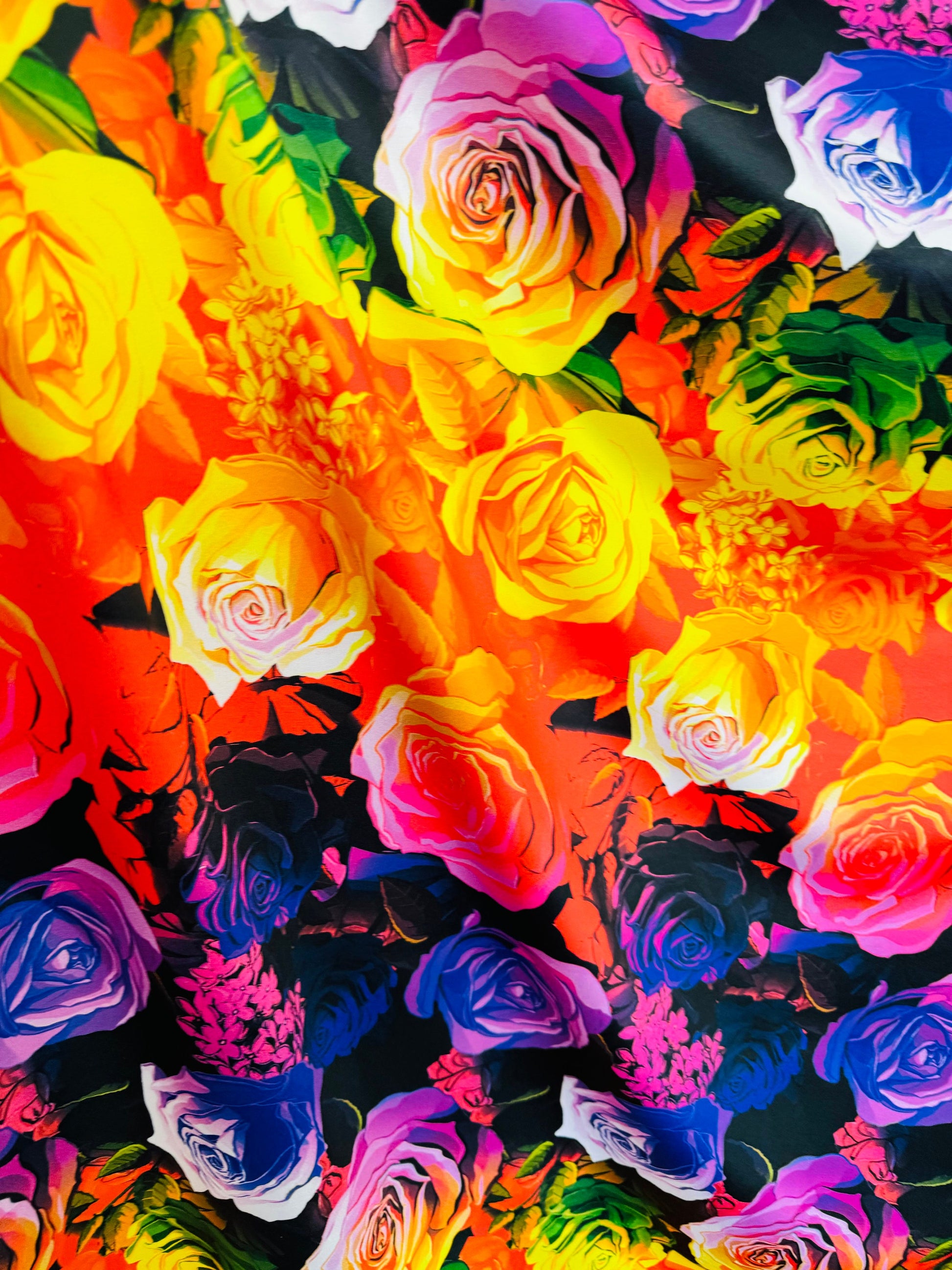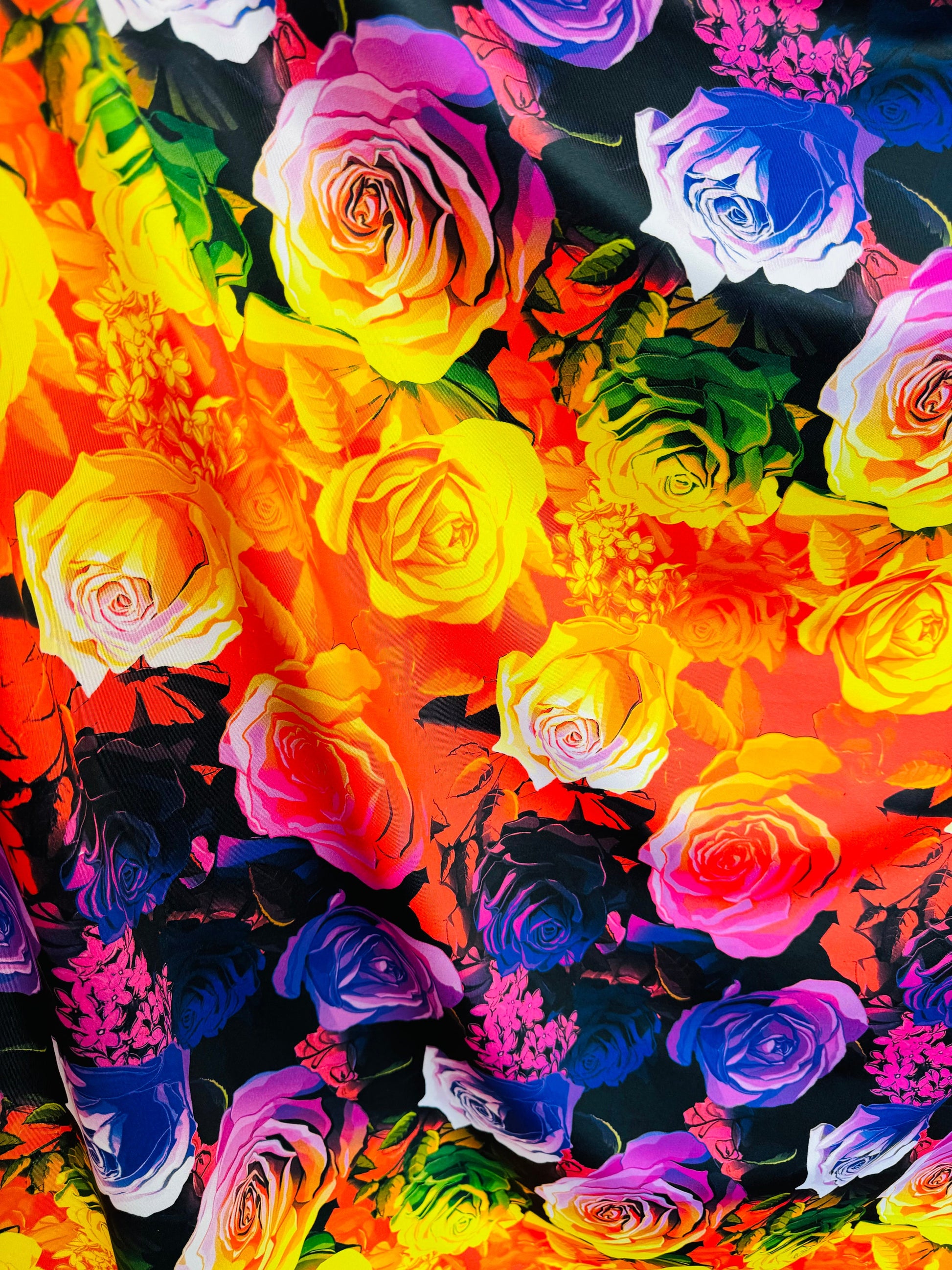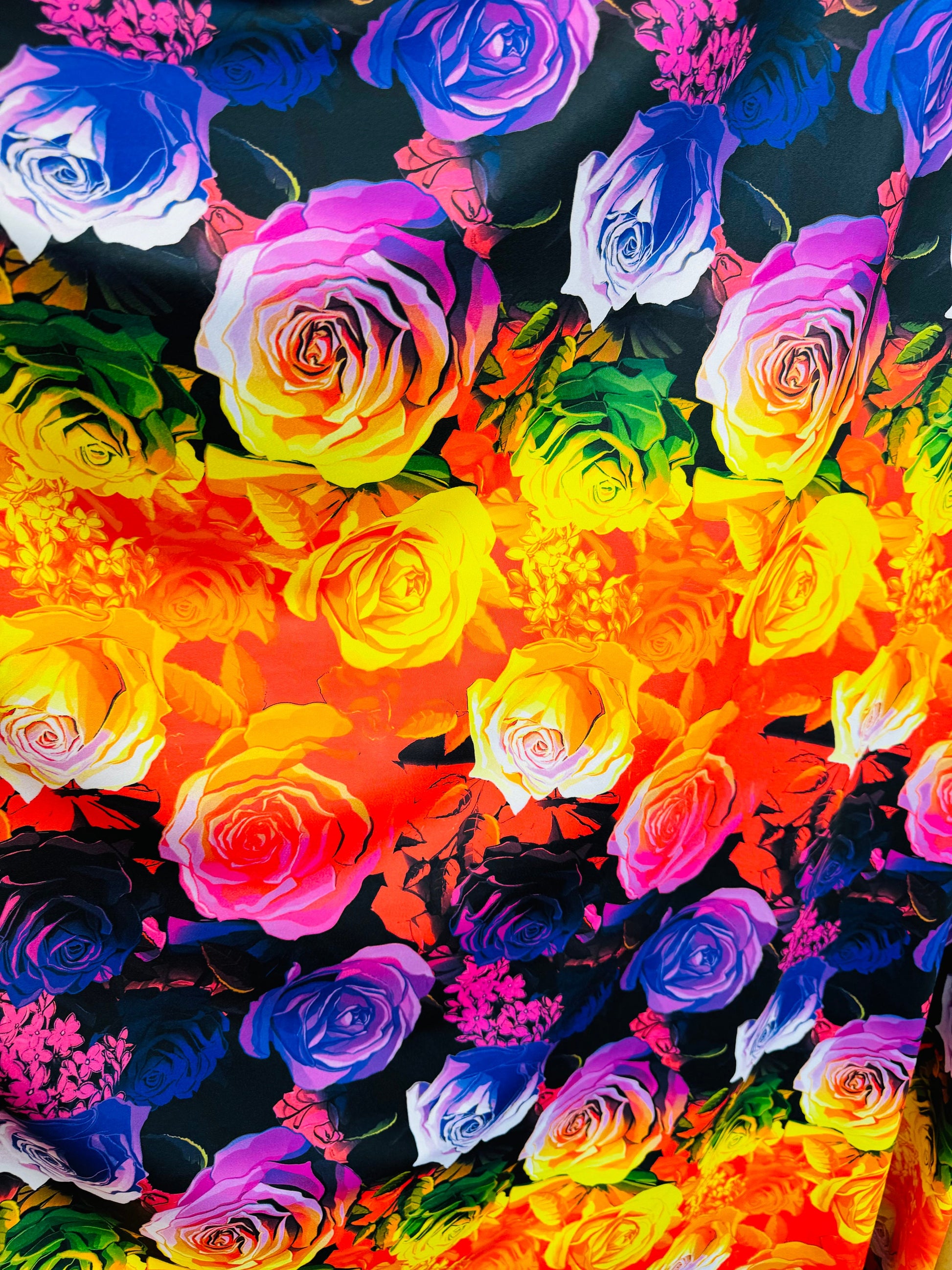 New Ombre Romantic flower design print on great quality of nylon spandex 4-way stretch 58/60” Sold by the YD. Ships worldwide from Los Angeles California USA. High quality fabrics by AlexLAFabrics