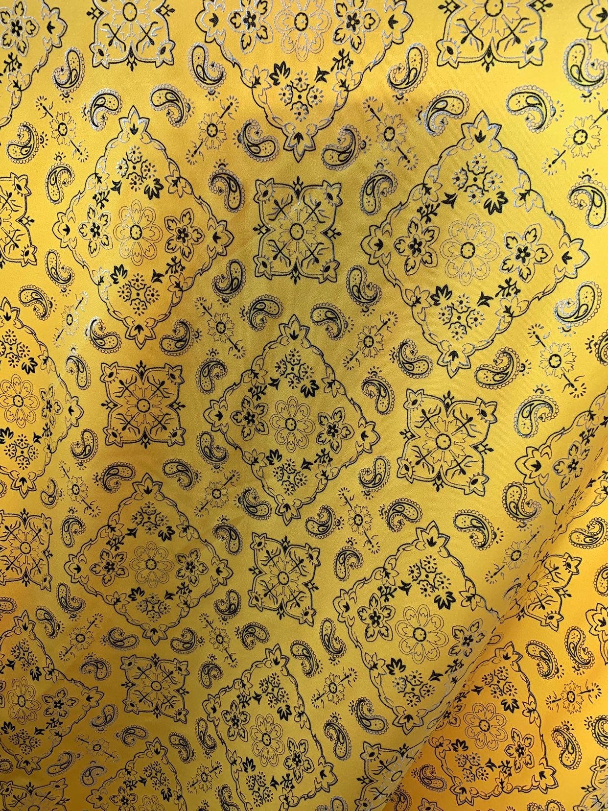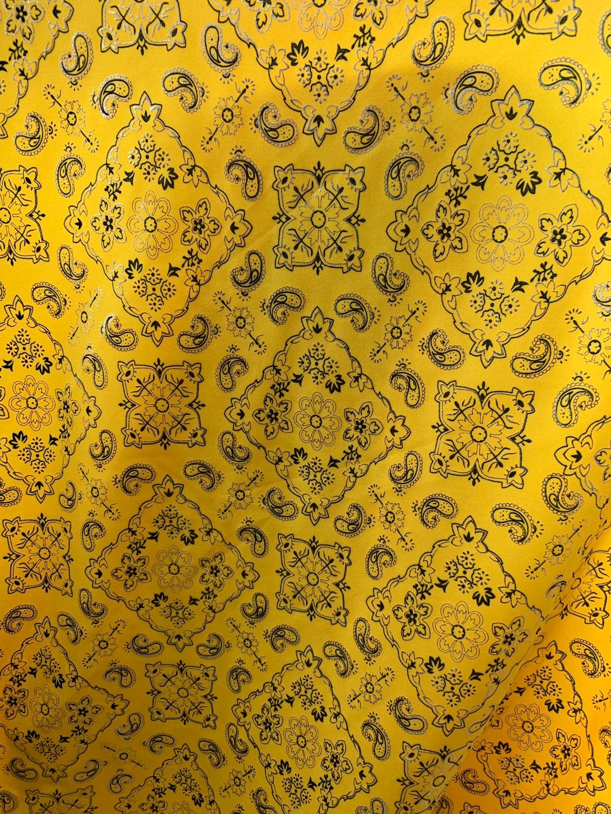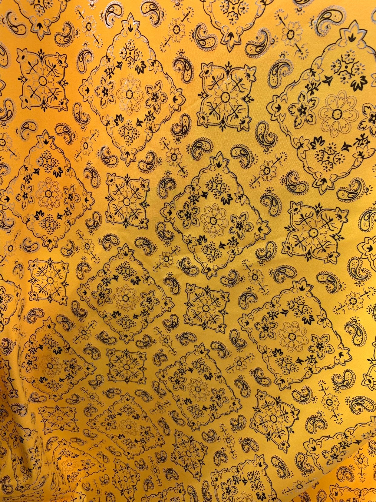 New paisley bandana metallic design print on heavy nylon spandex 4way stretch 58/60" Sold by the YD. Ships worldwide from Los Angeles California USA.