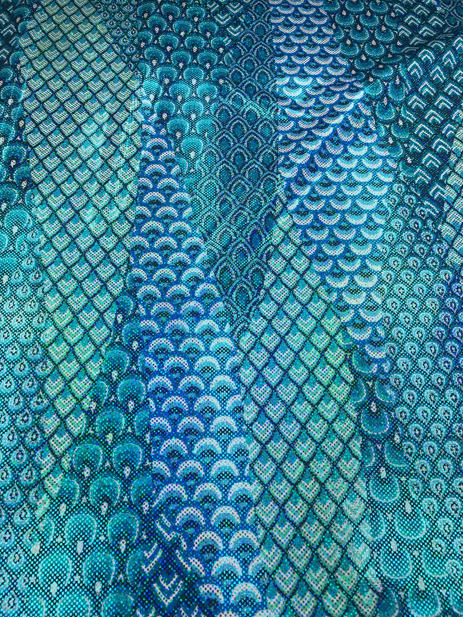 NEW peacock design nylon spandex Hologram spandex 4way Stretch 58/60" Sold bu the YD. Ships worldwide from Los Angeles California USA