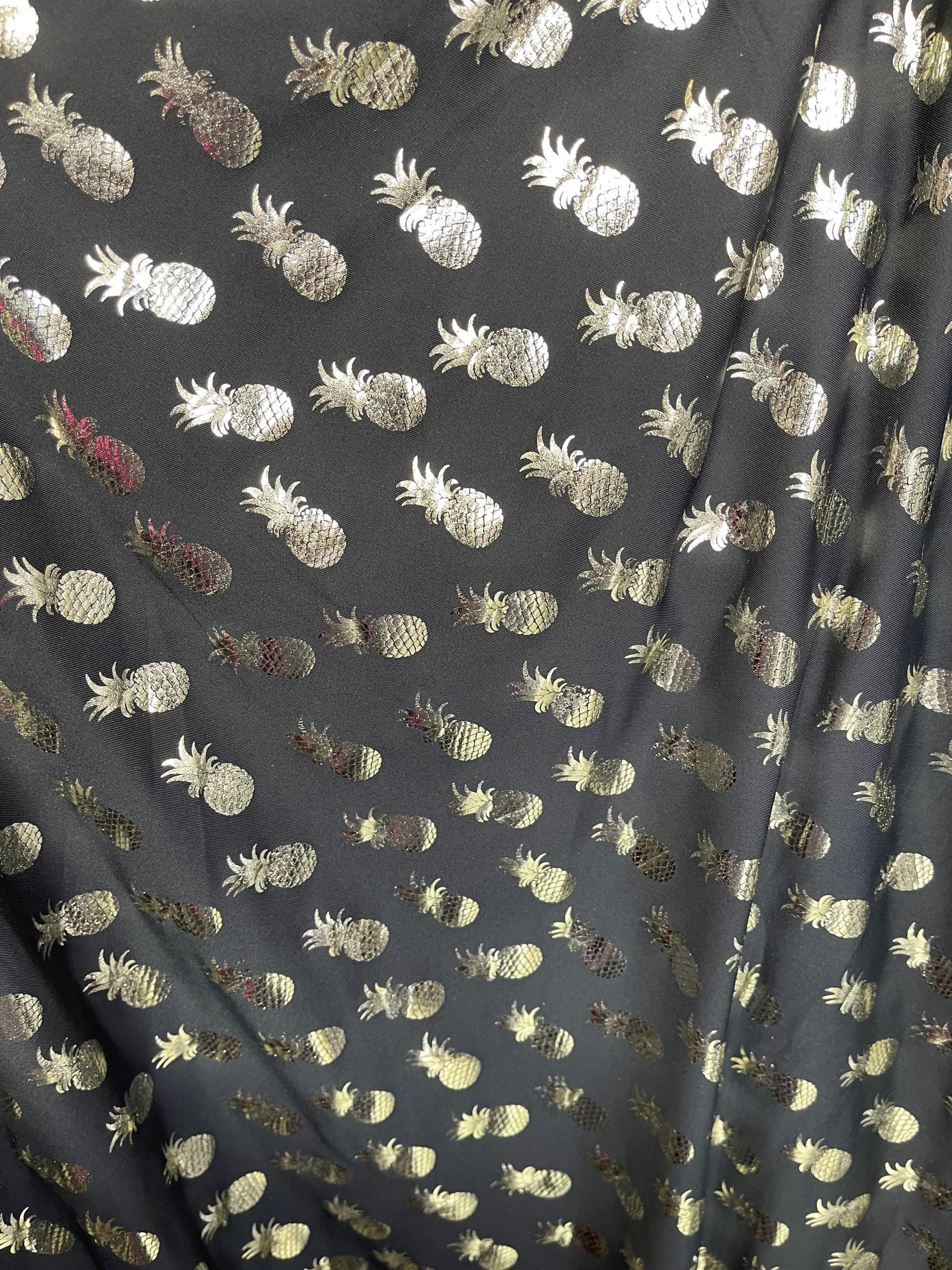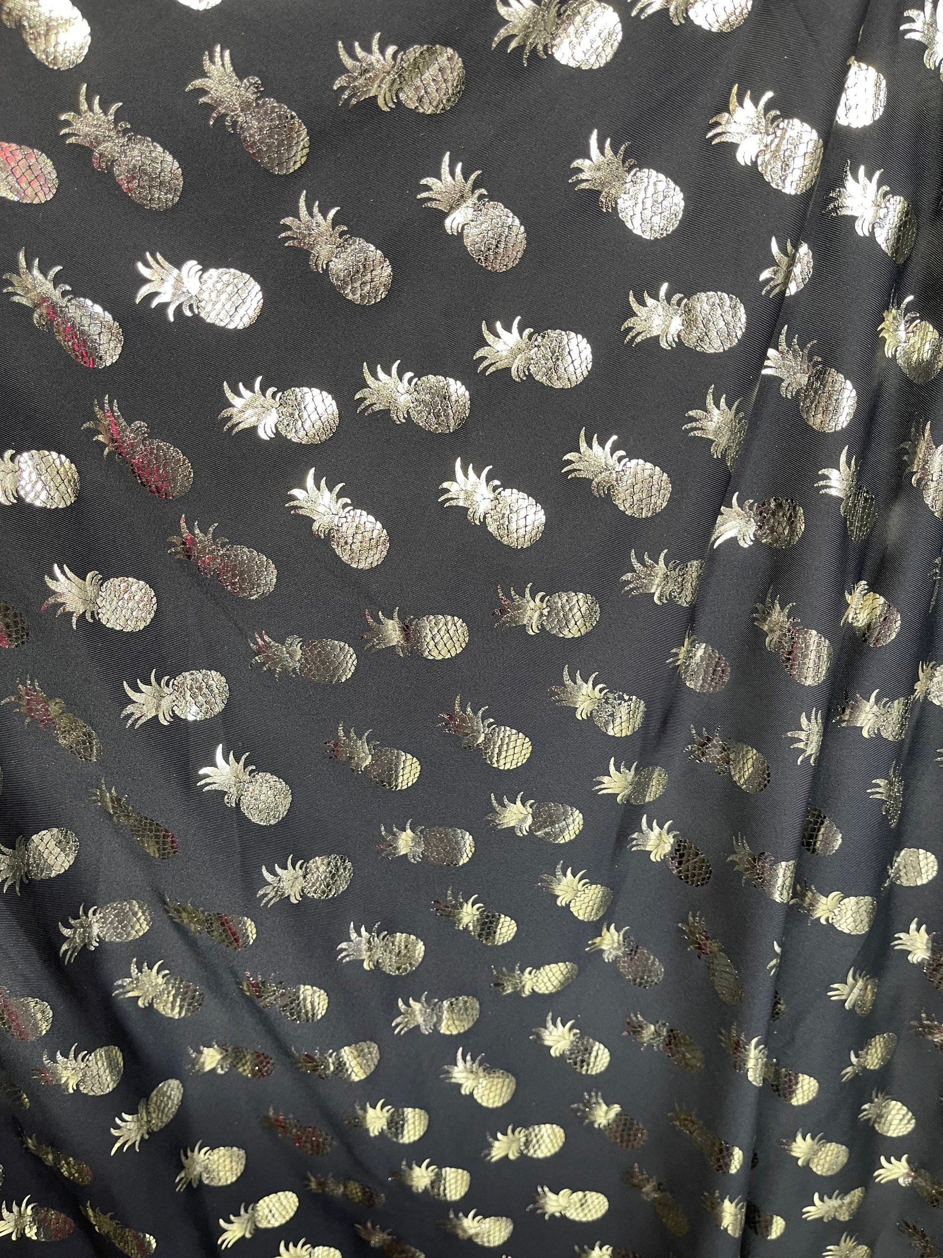 New Pineapple design metallic poly spandex 4-way stretch 58/60” Sold by the YD. Ships Worldwide from Los Angeles California USA.