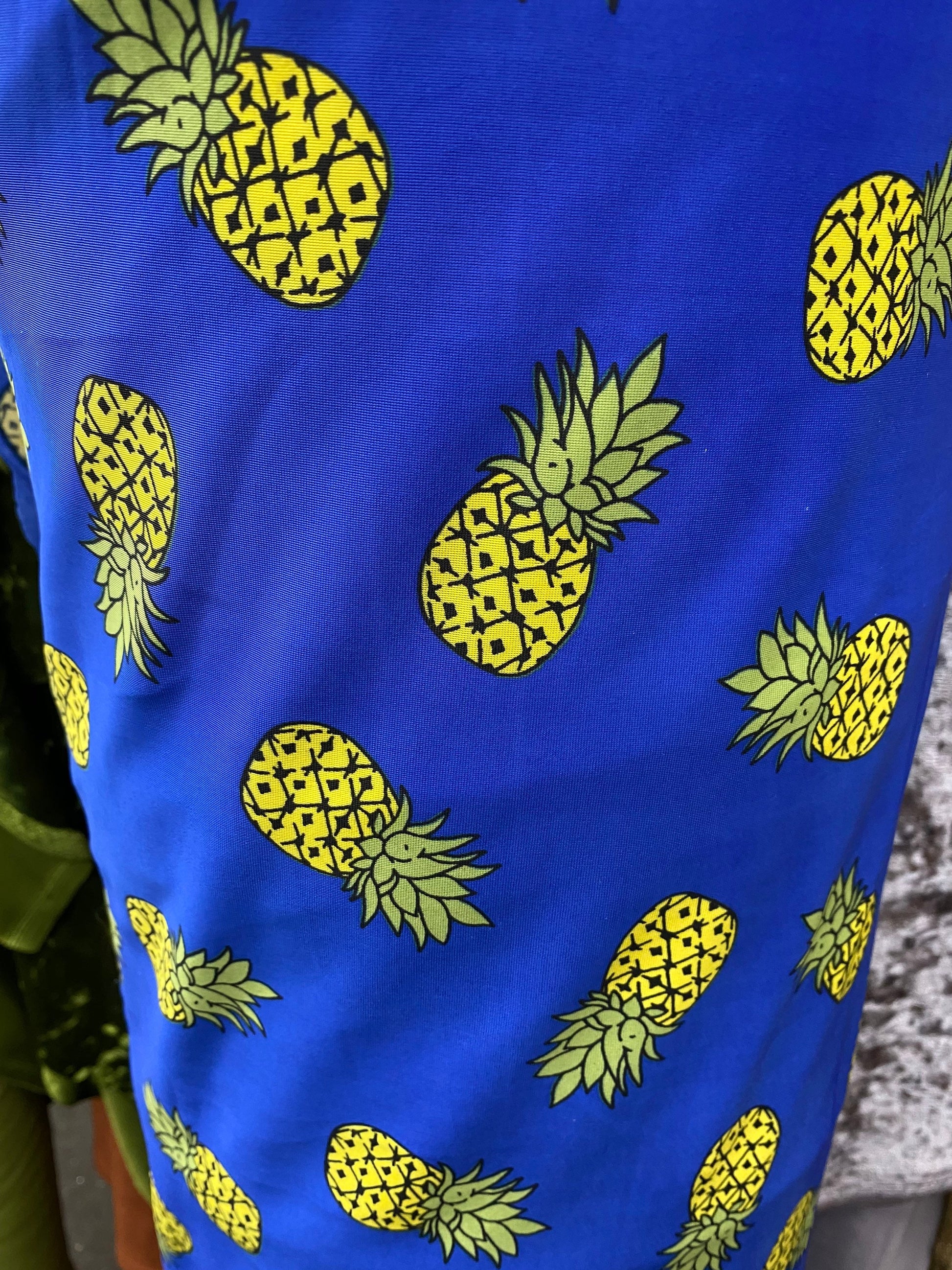 New pineapple design print on nylon spandex 4-way stretch 58/60” Sold by the YD. Ships worldwide from Los Angeles California USA.