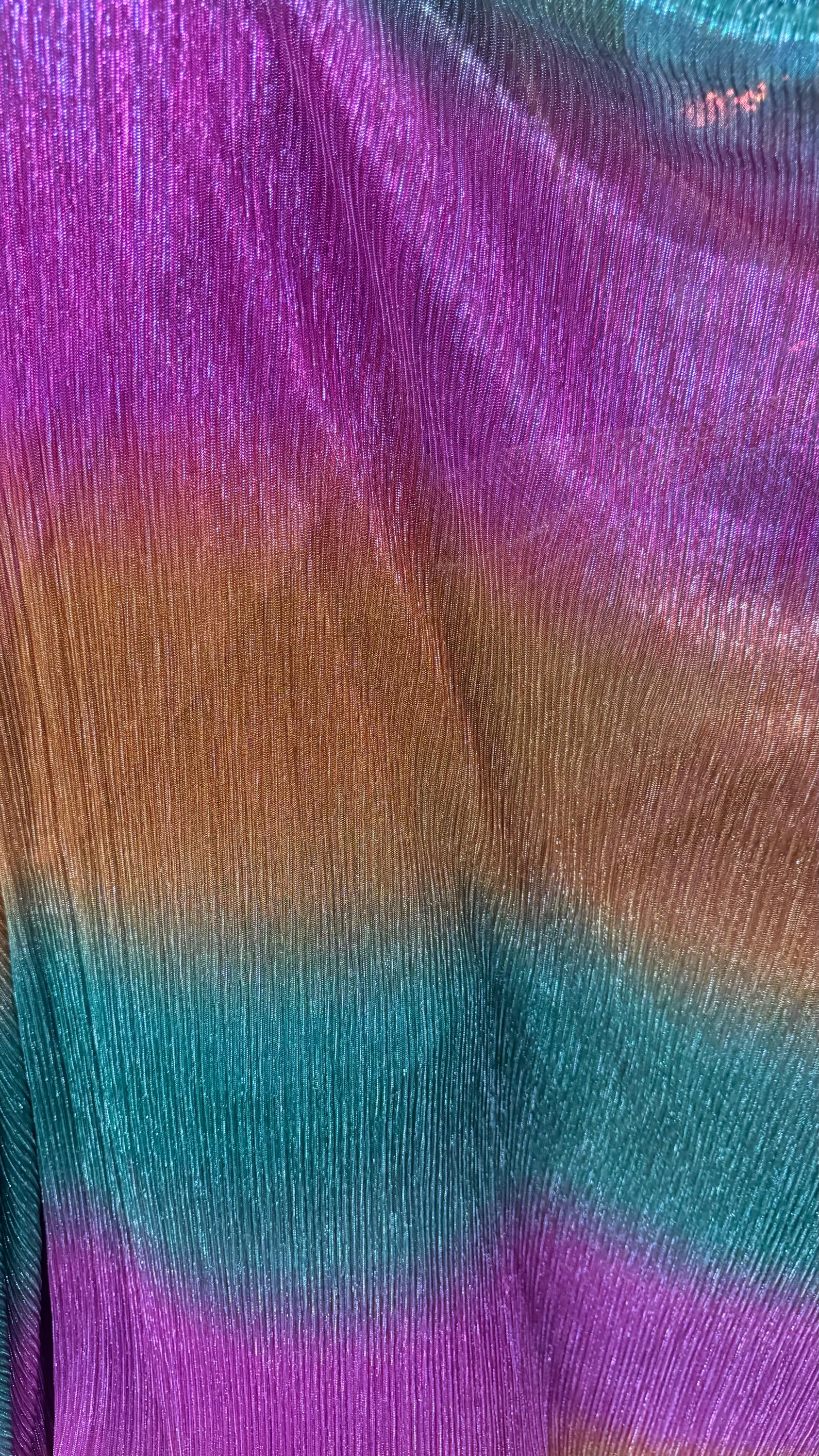 New Pleated Ombre metallic stretch mesh Multicolor 4way stretch 58/60" Sold by the YD. Ships worldwide from Los Angeles California USA.
