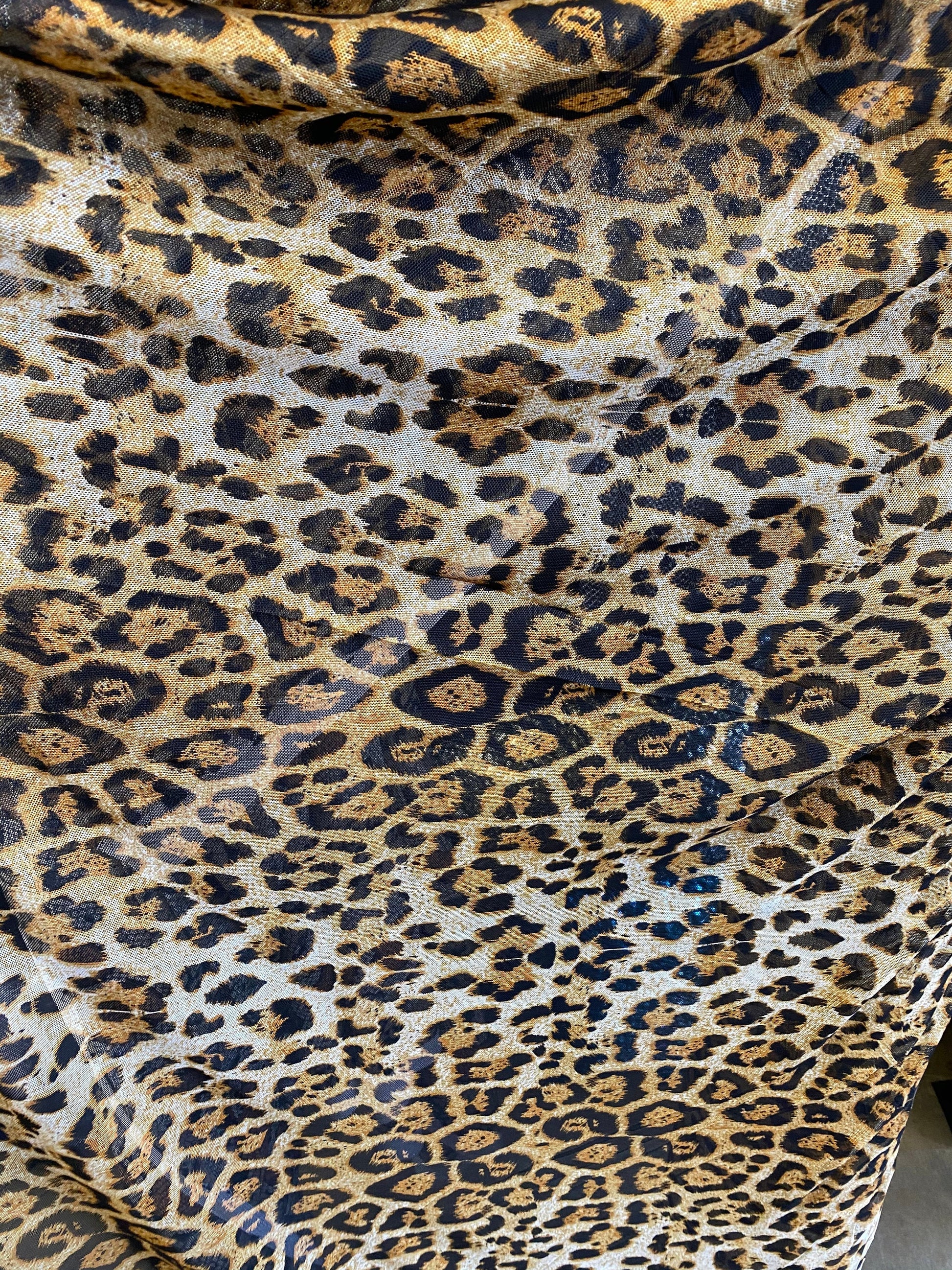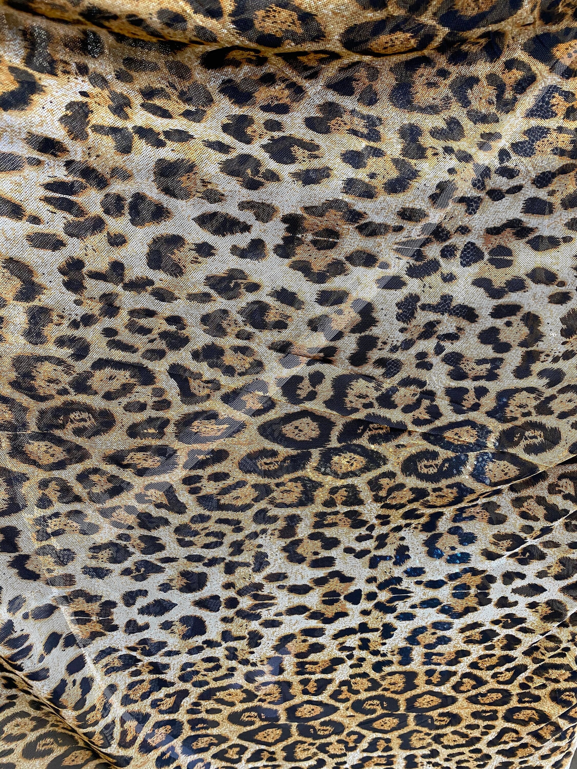 New power mesh animal print leopard design 4-way Stretch 58/60” Sold by the YD. Ships worldwide from Los Angeles California USA.