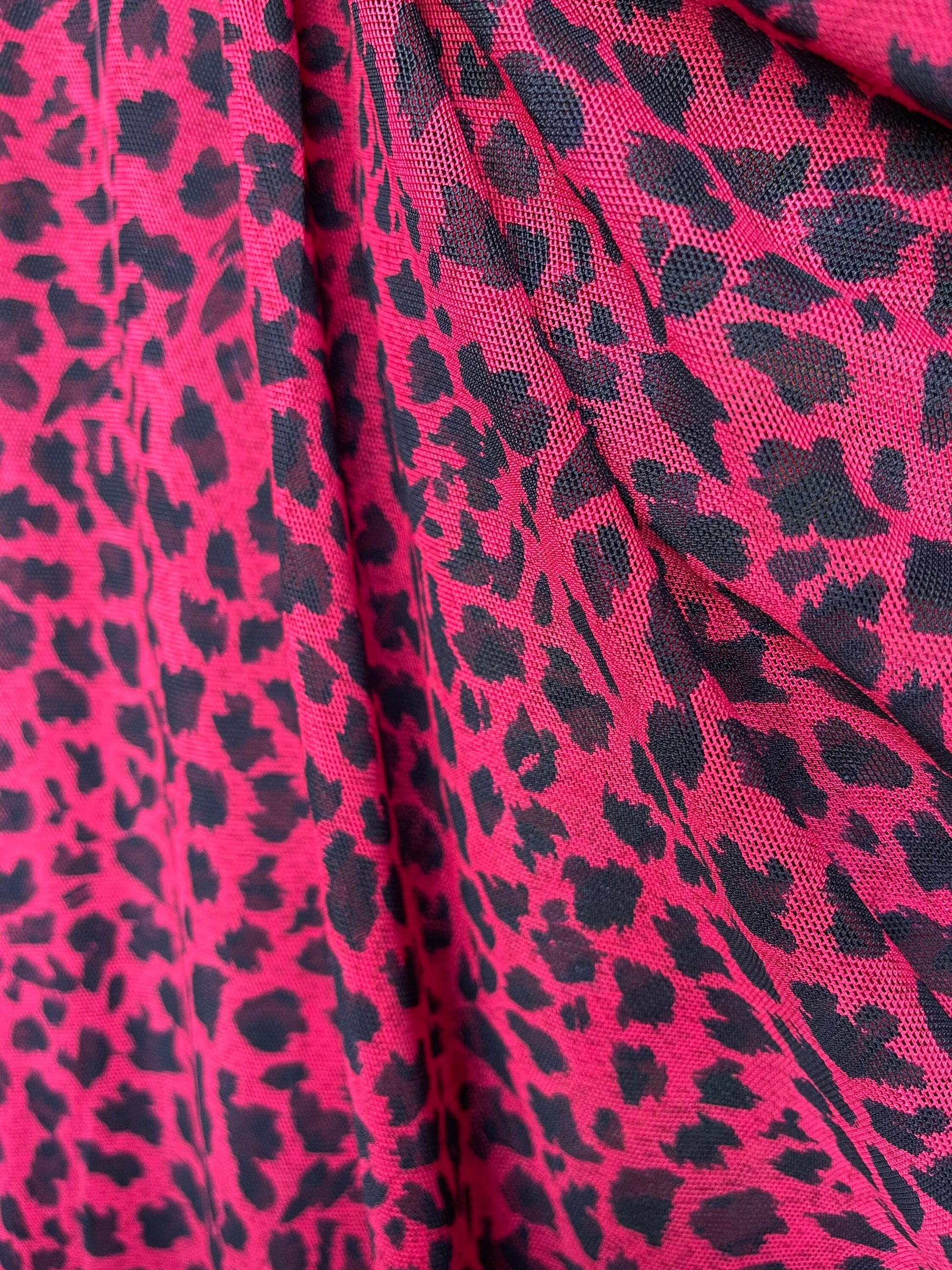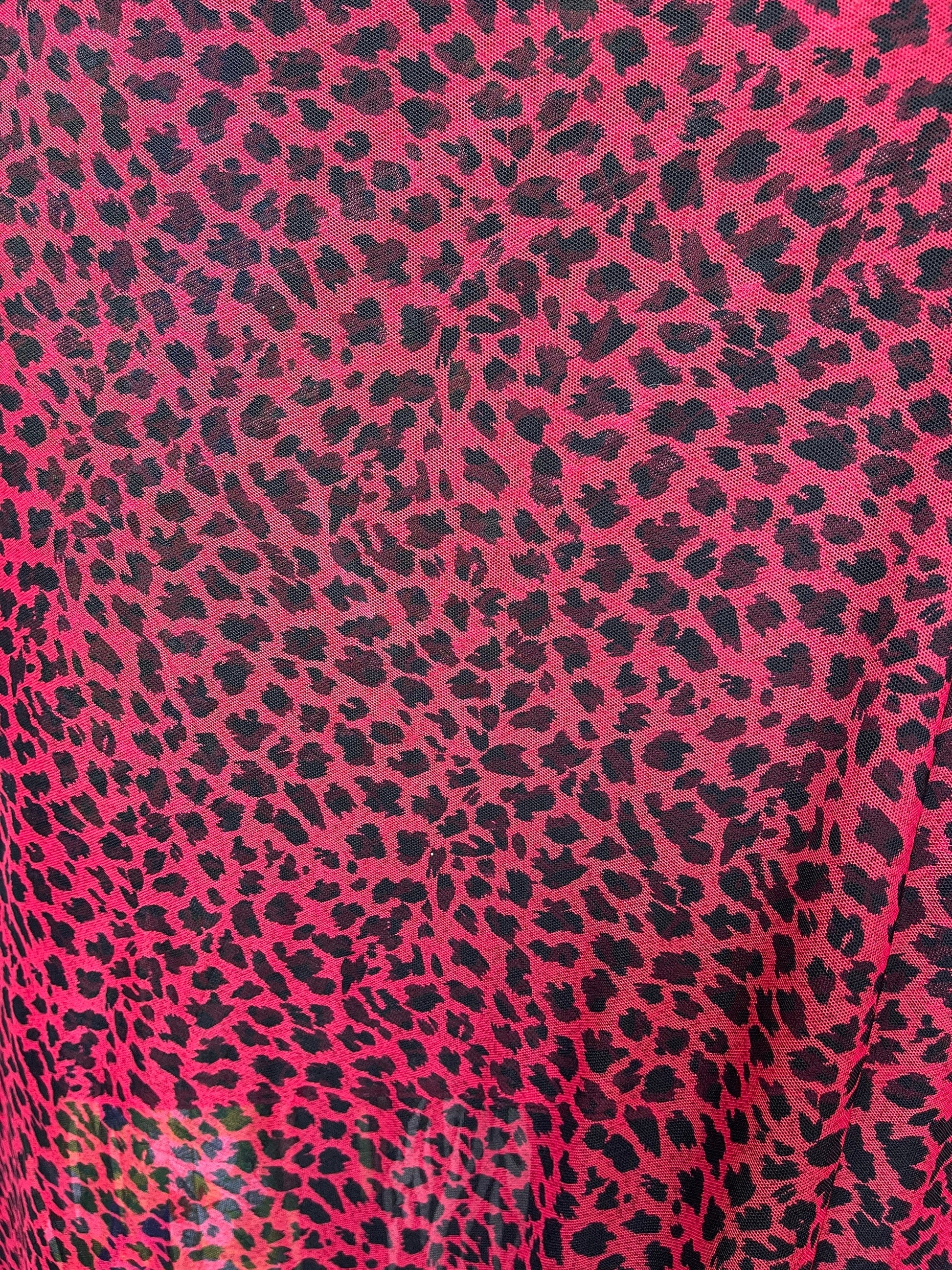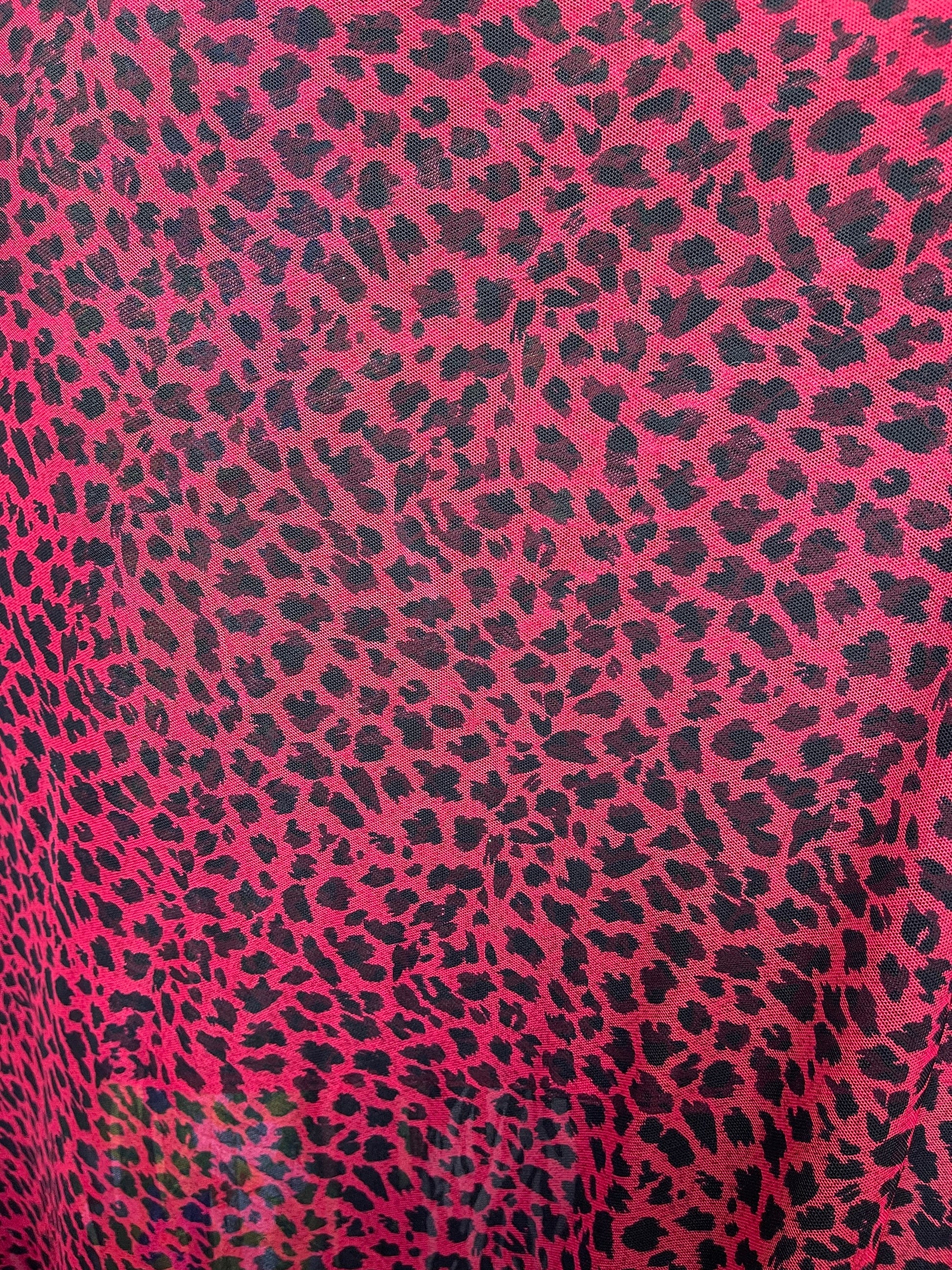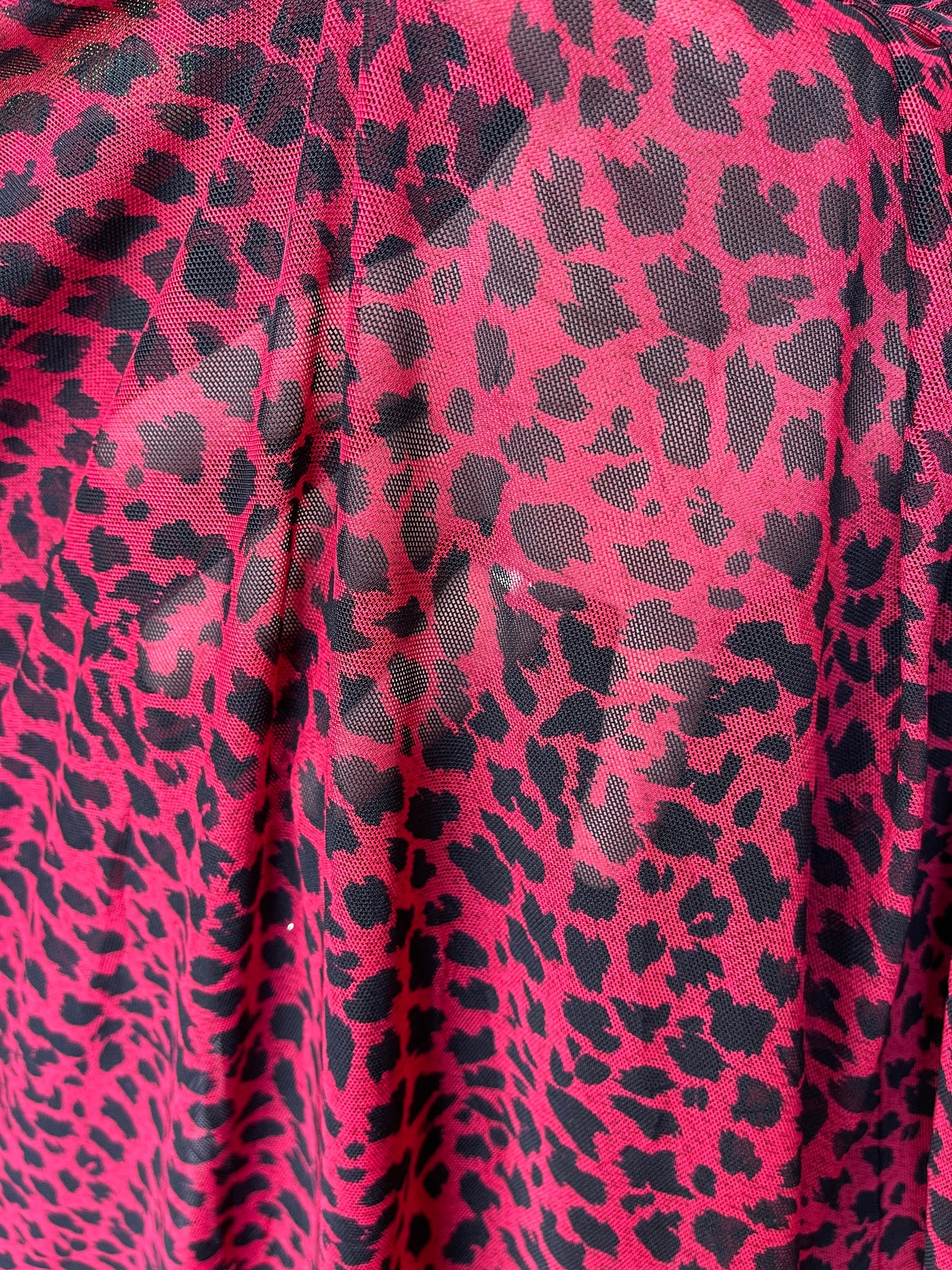 New power mesh animal printCheetah design red/black 4-way stretch 58/60” Sold by the YD. Ships worldwide from Los Angeles California USA.