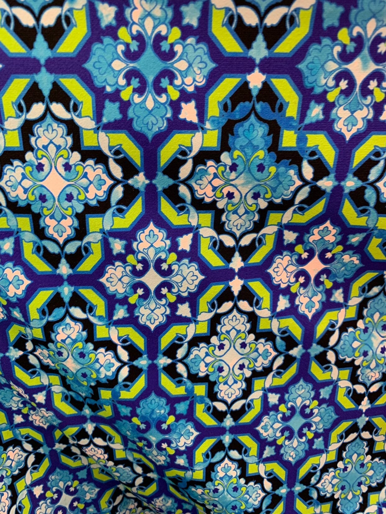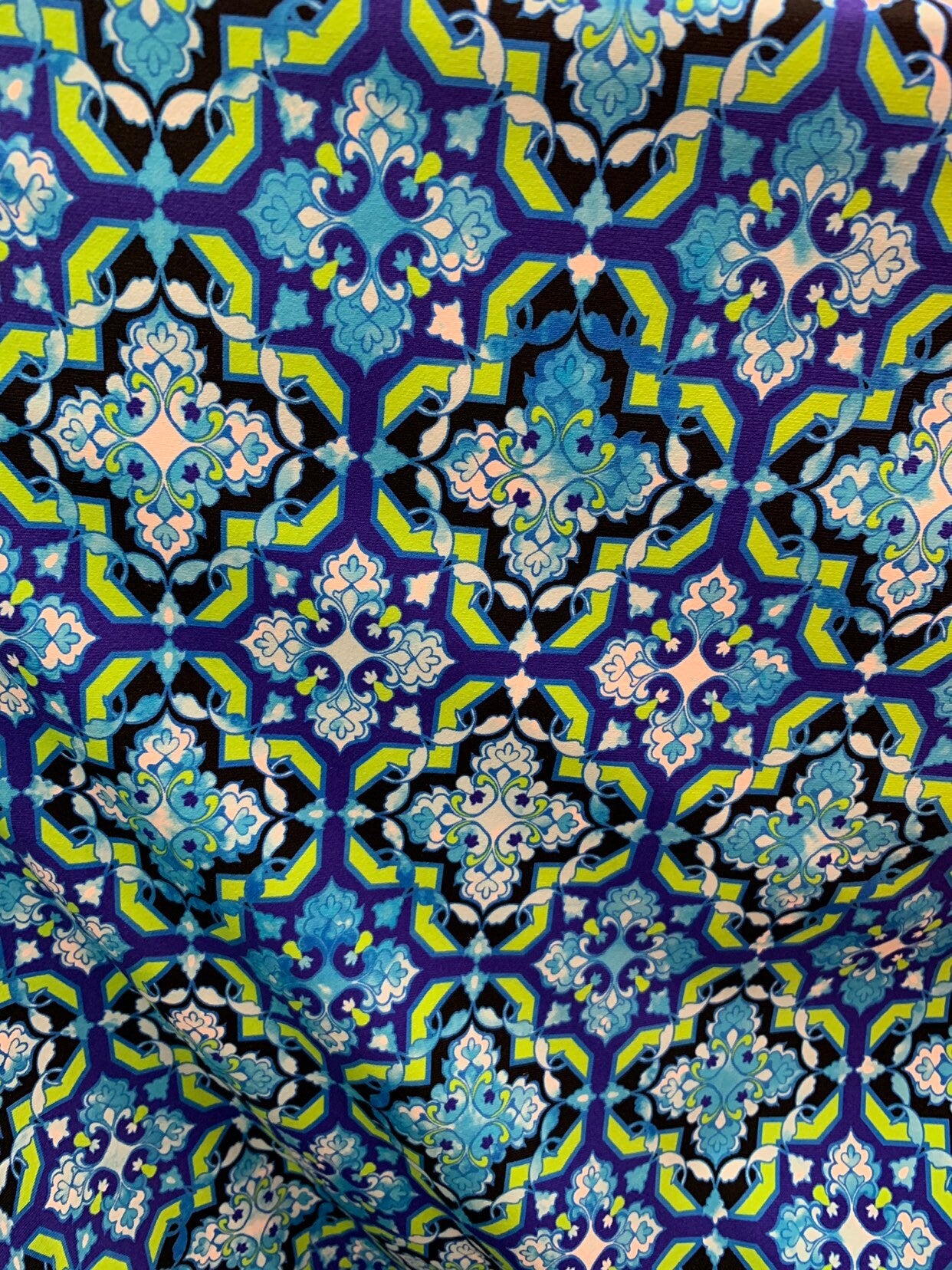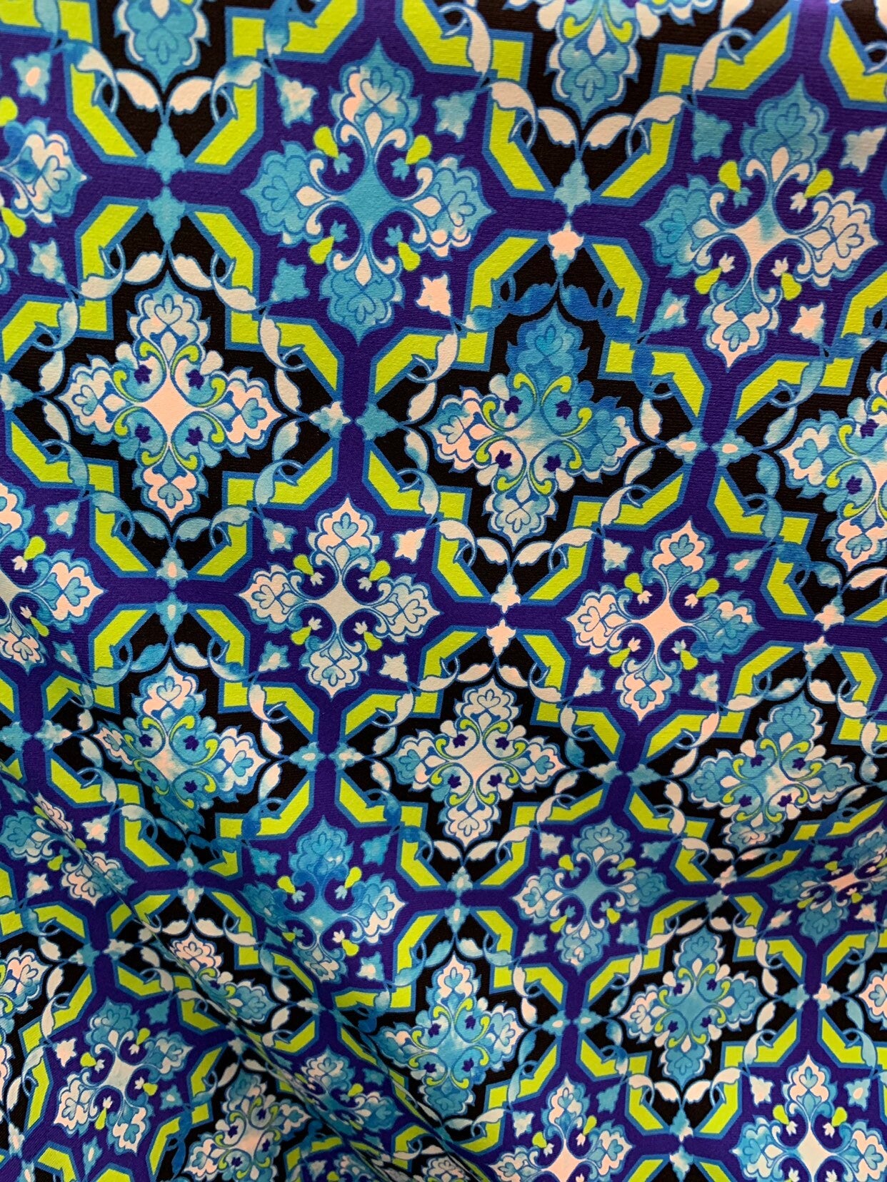 New print Isabella design heavy nylon spandex 4way stretch 58/60" Sold by the YD. Ships worldwide from Los Angeles California USA.