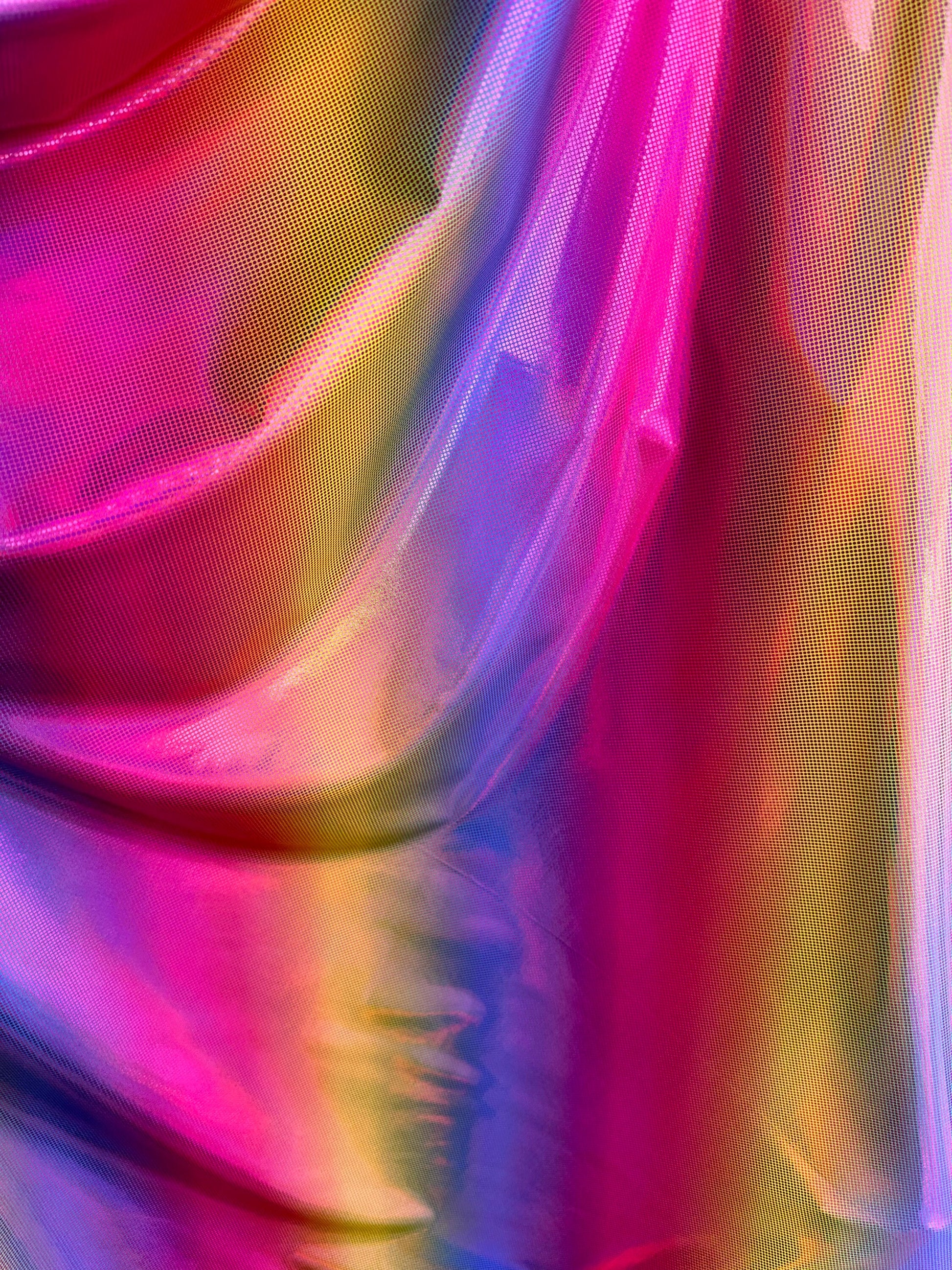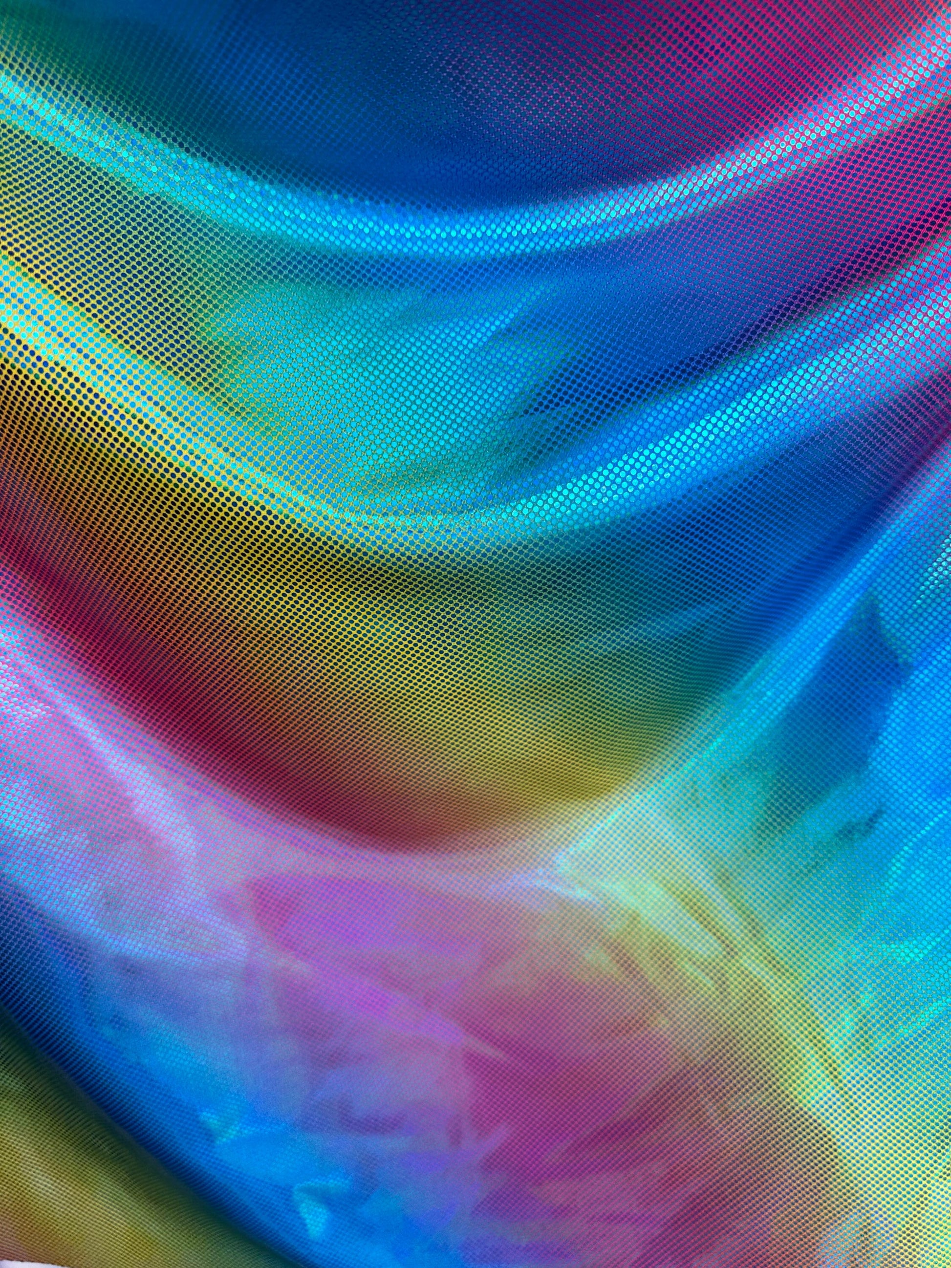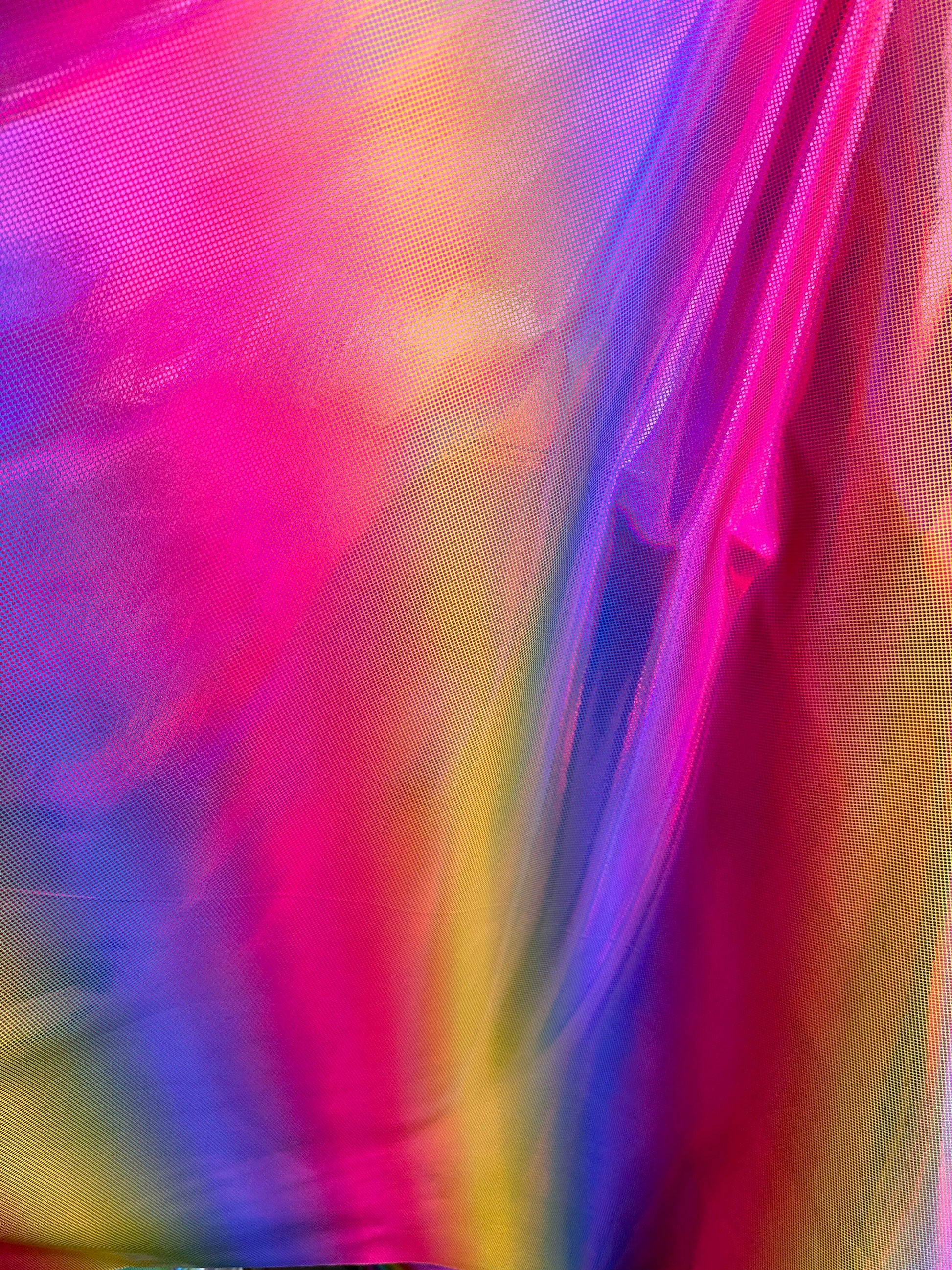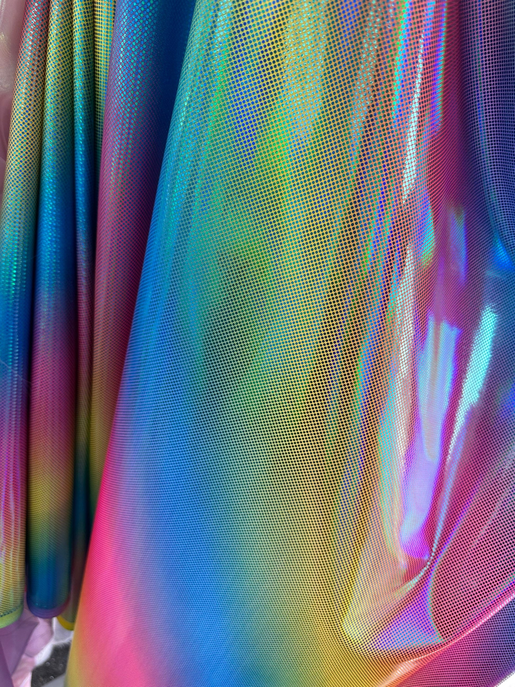New Rainbow design iridescence metallic nylon spandex 4-way stretch hologram high quality of spandex fabric 58/60” Sold by the YD. Ships worldwide from Los Angeles California USA