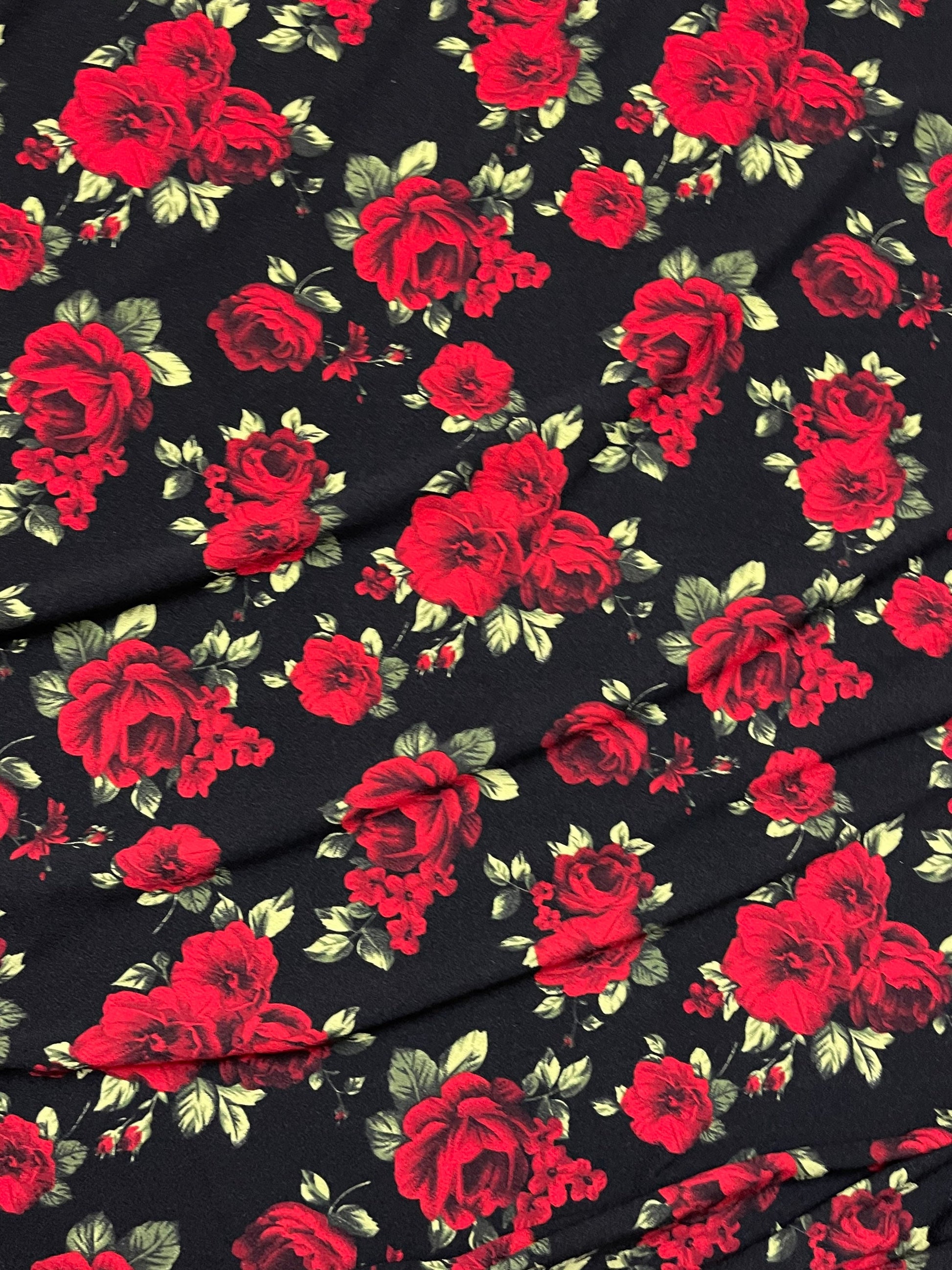 New Red Roses design print on poly spandex 4-way stretch 58/60” Sold by the YD. Ships worldwide from Los Angeles California USA.