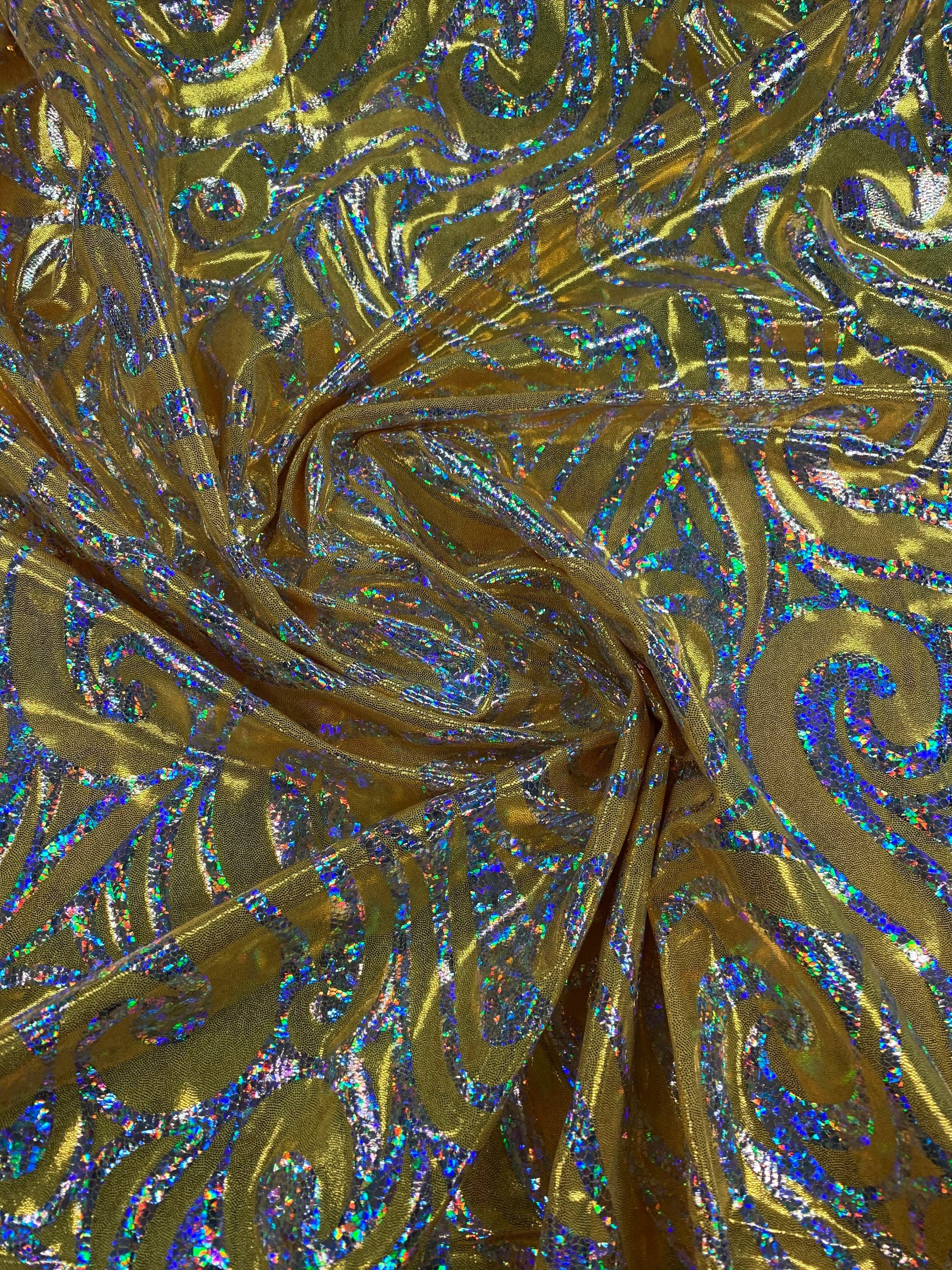 New Rolex design metallic hologram nylon spandex 4way stretch 58/60" Sold by the YD. Ships worldwide from Los Angeles California USA.