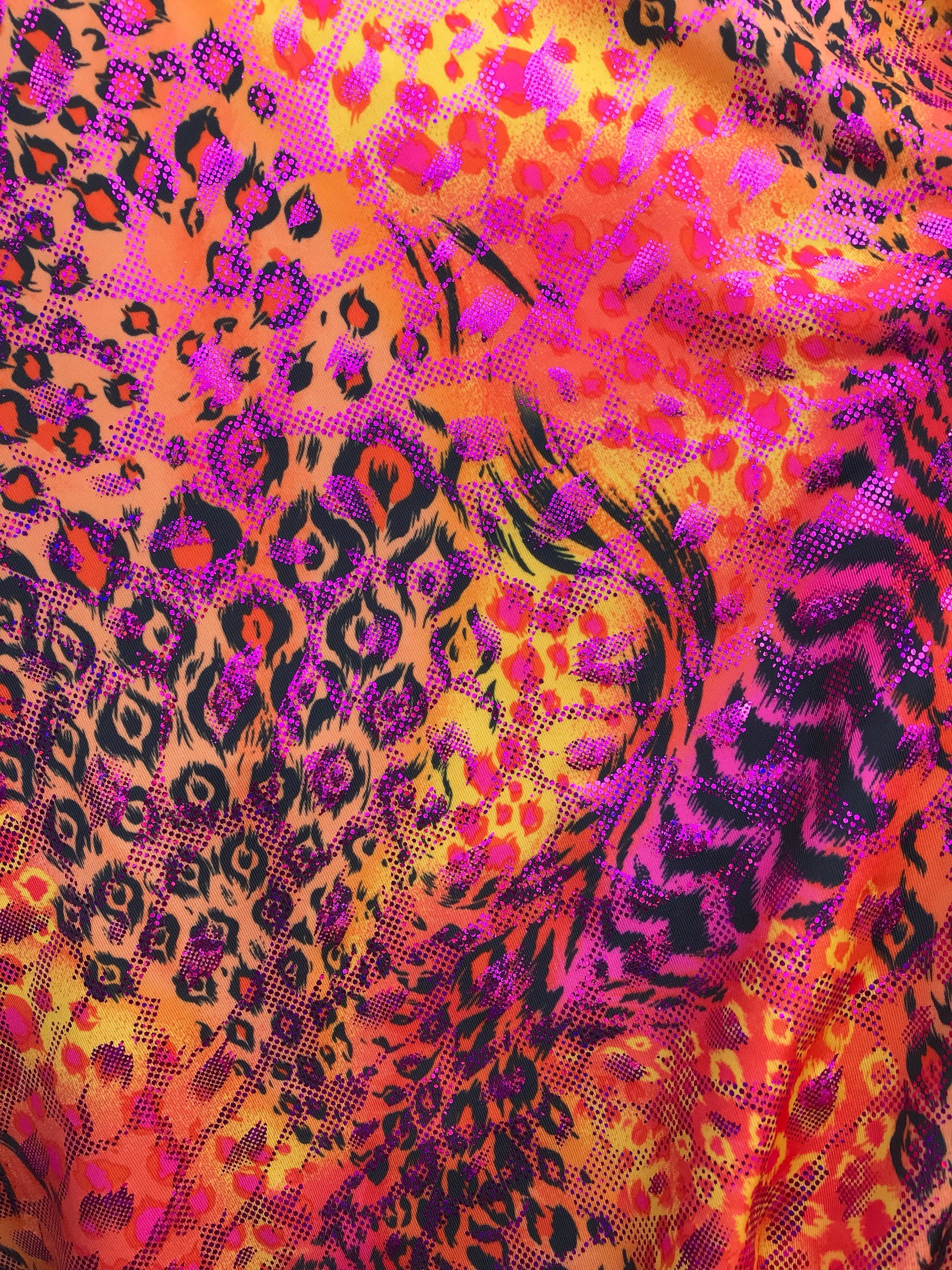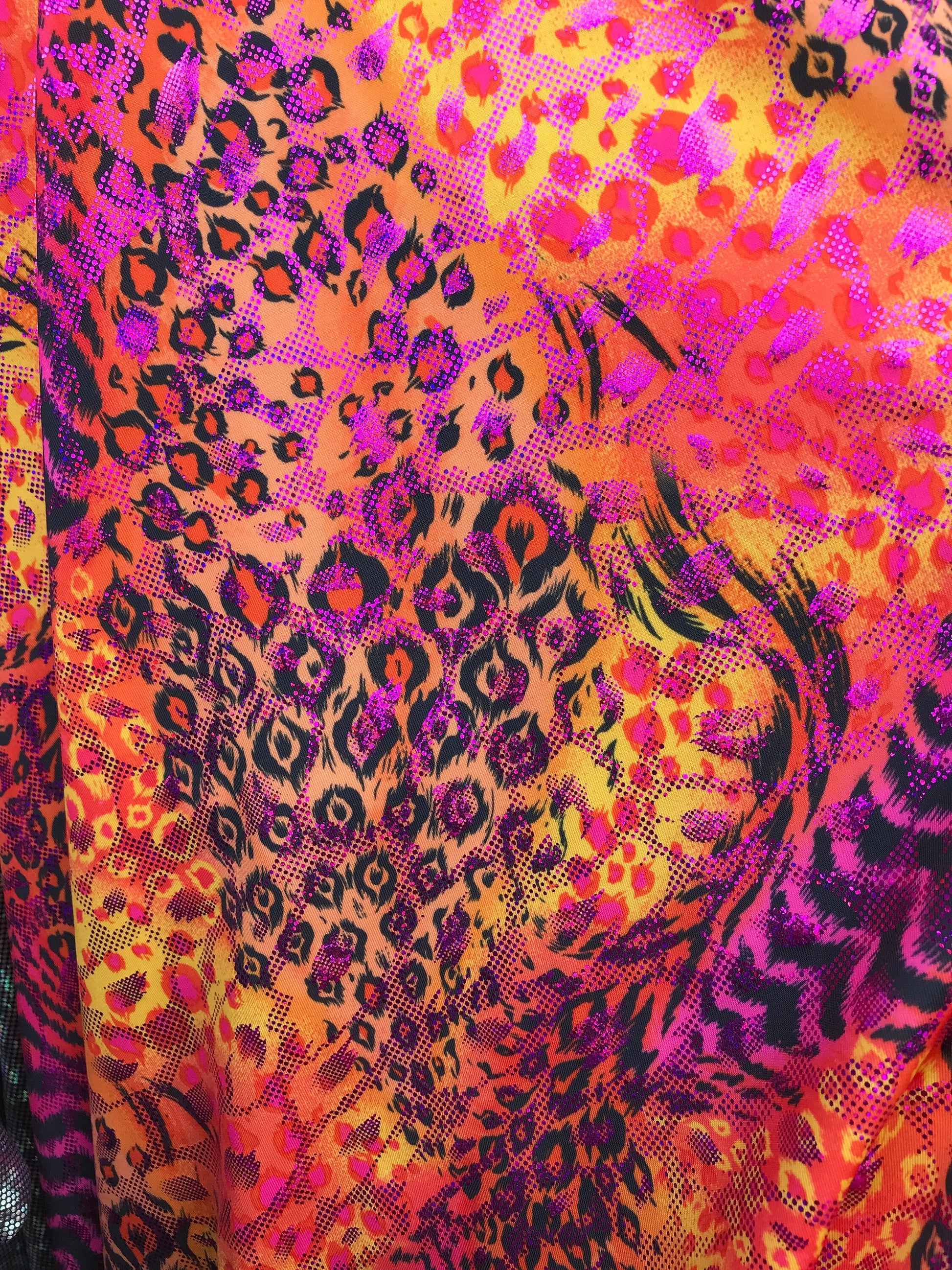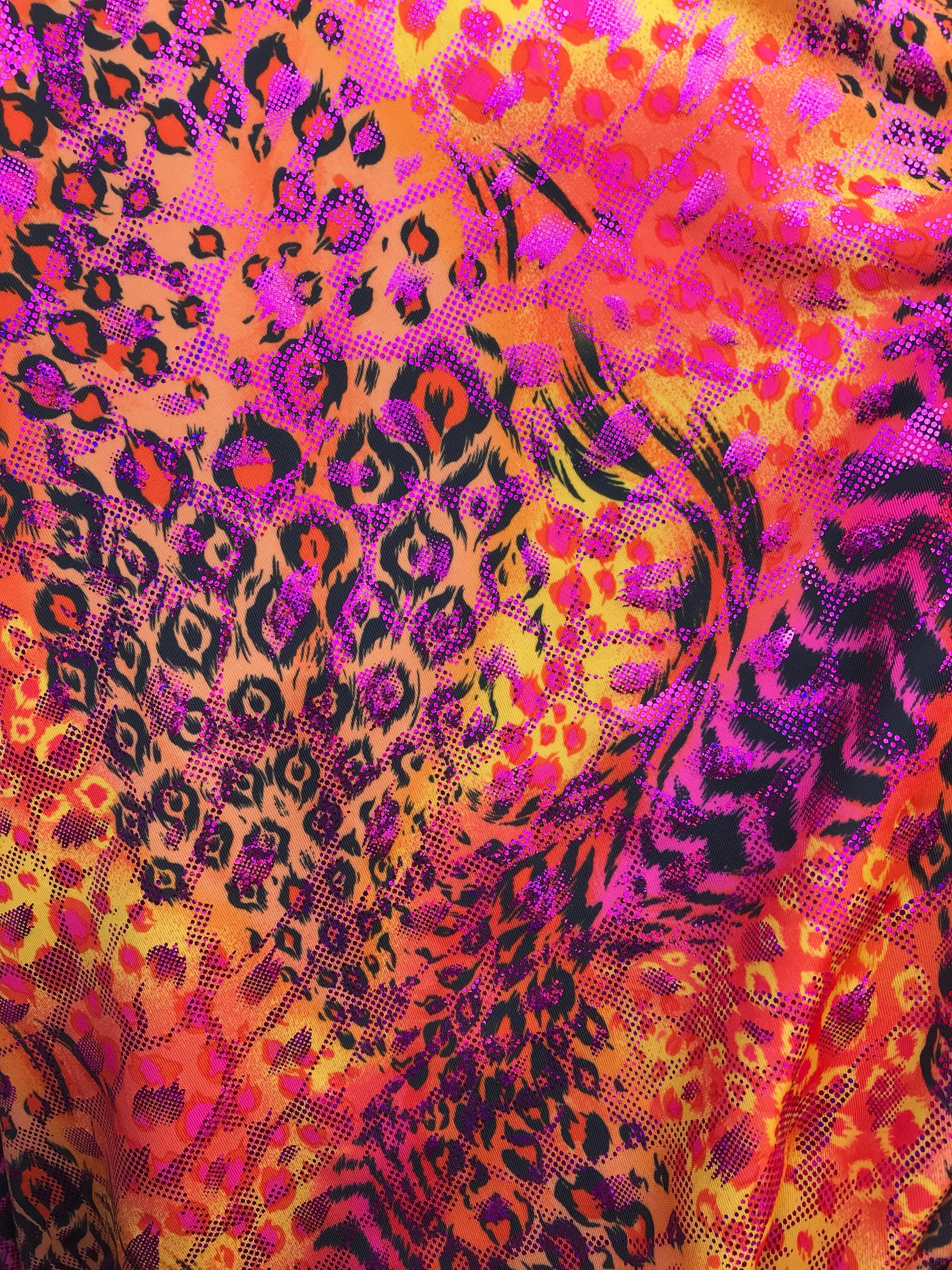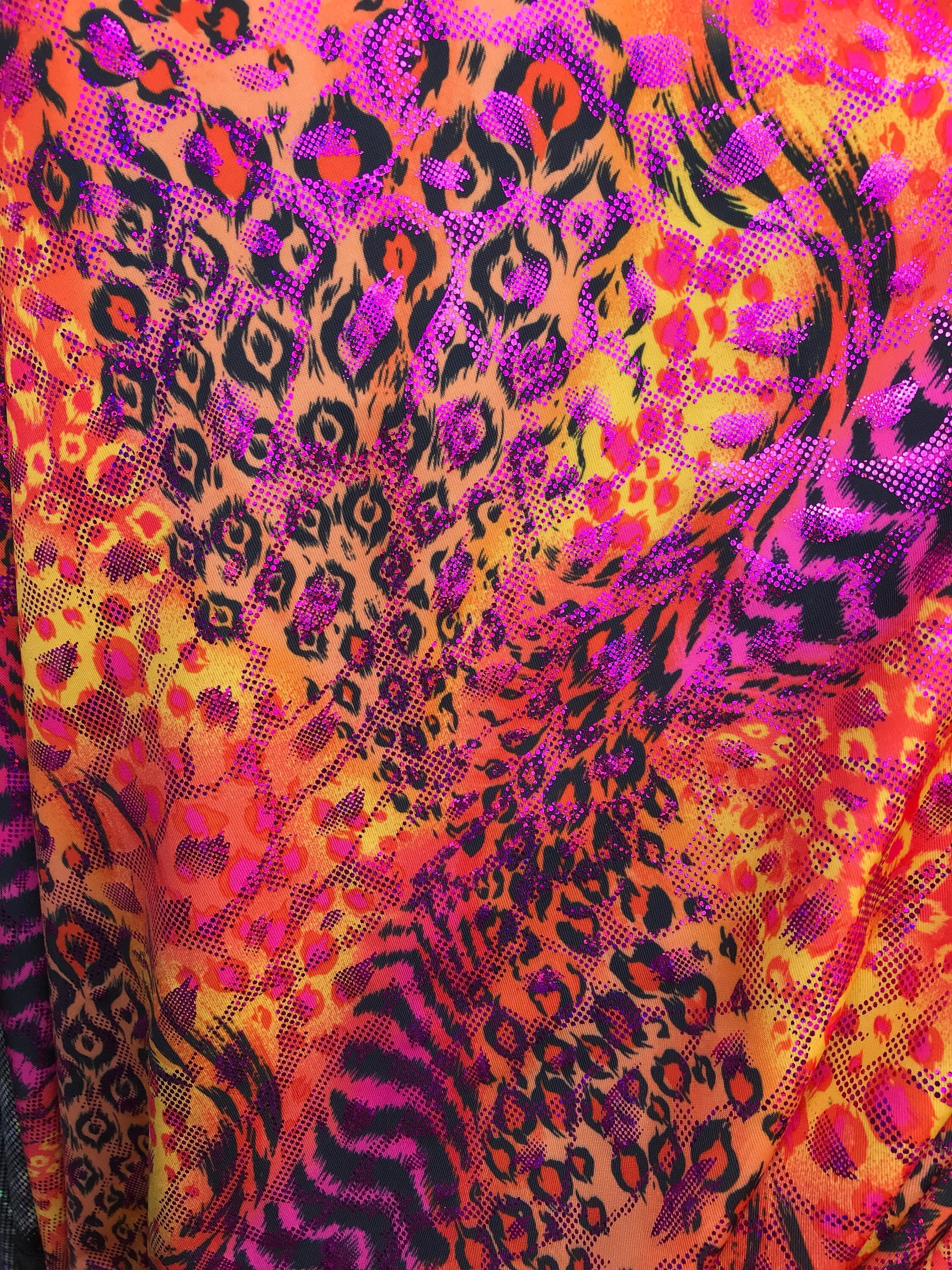 New Safari design multicolor metallic nylon spandex 4way stretch 58/60" Sold by the yd. Ships worldwide from Los Angeles California USA.