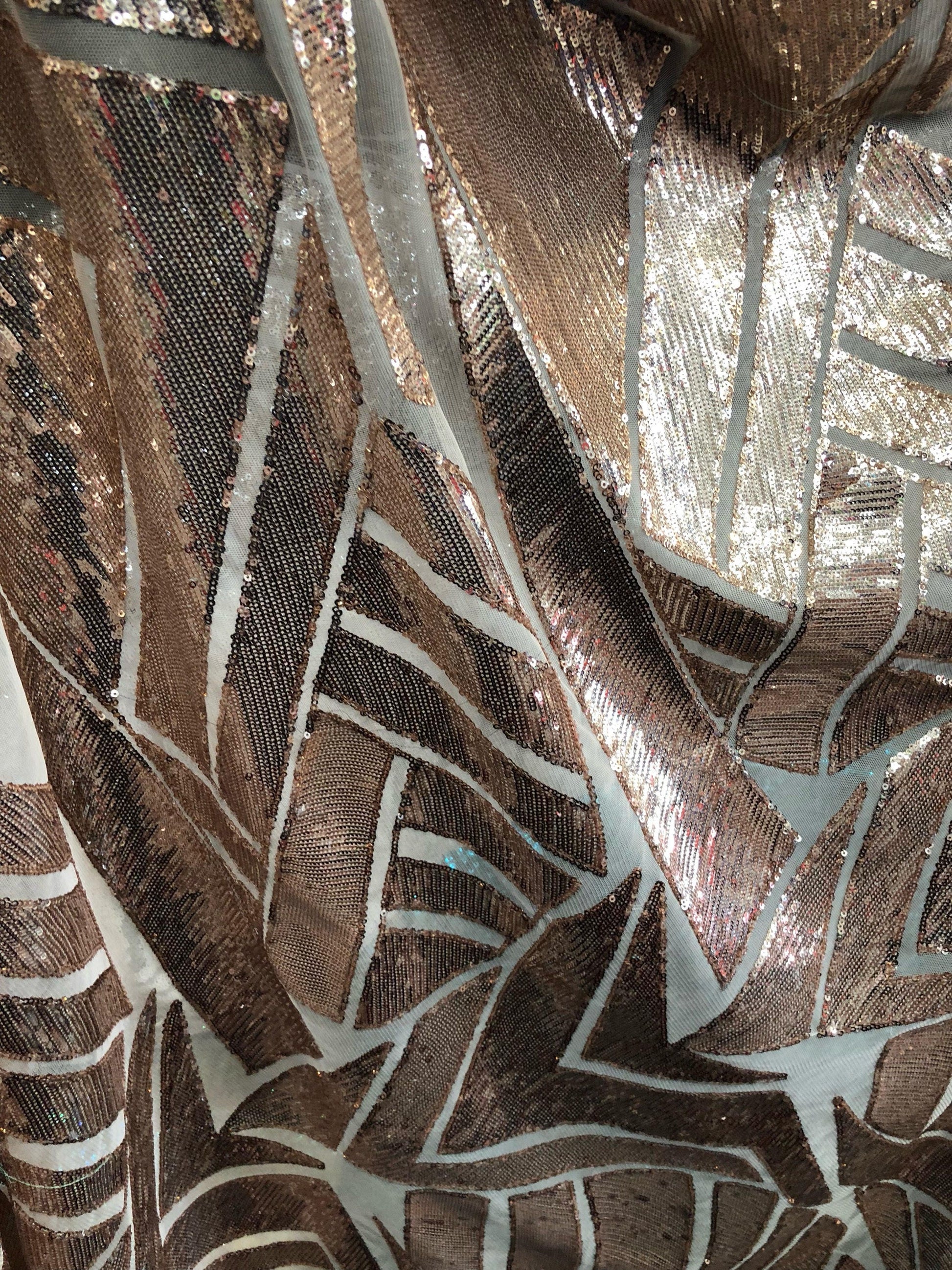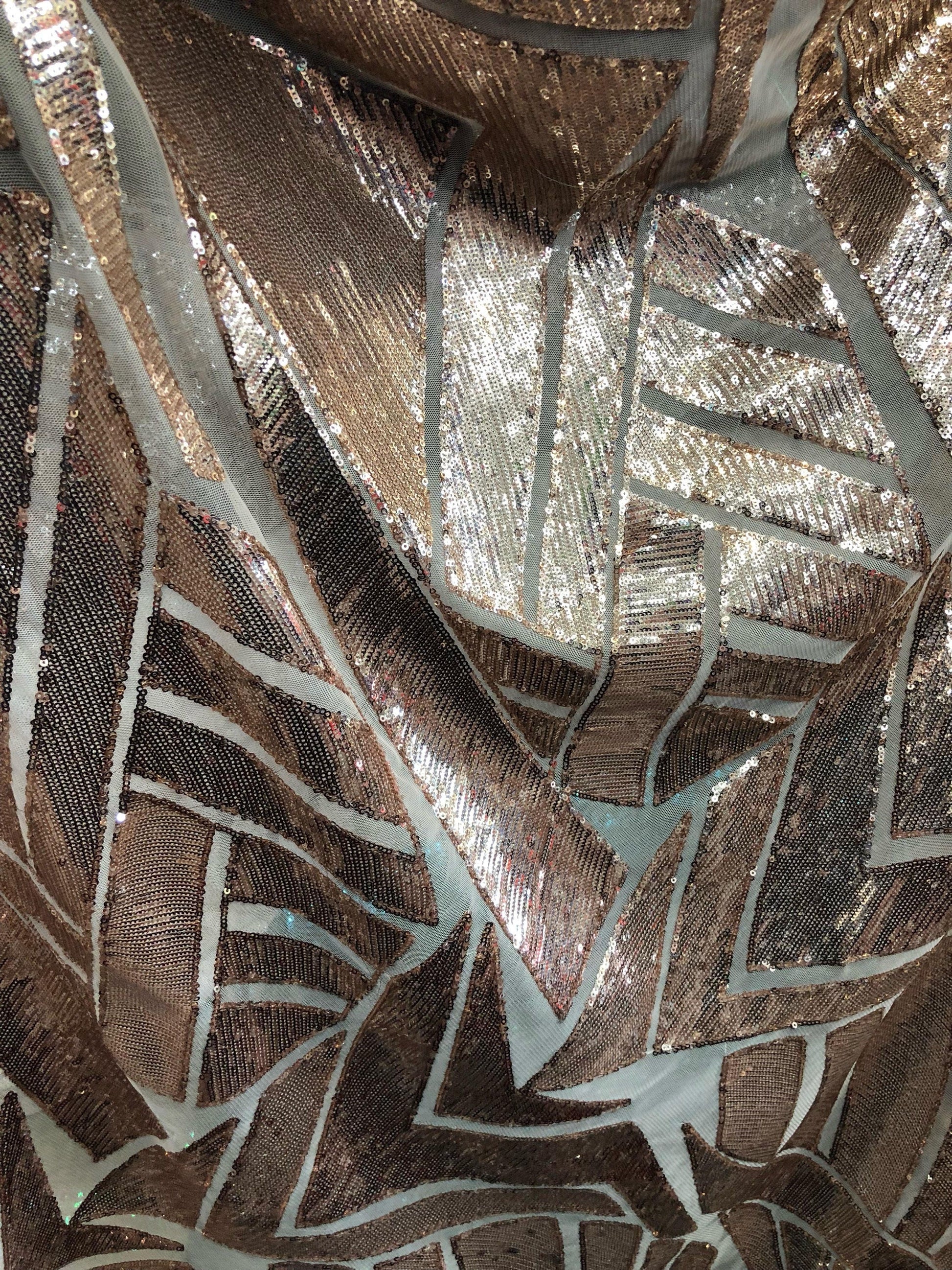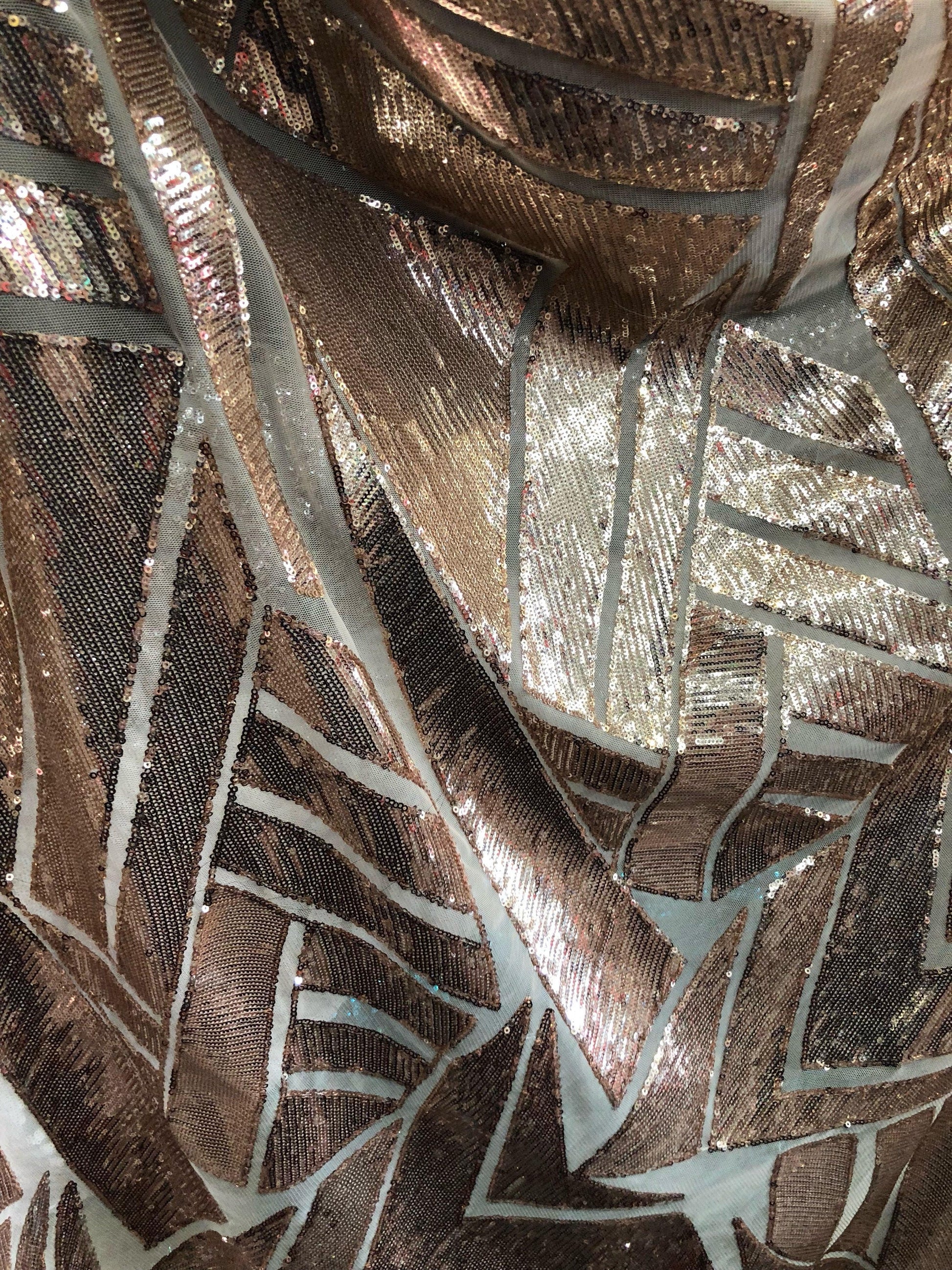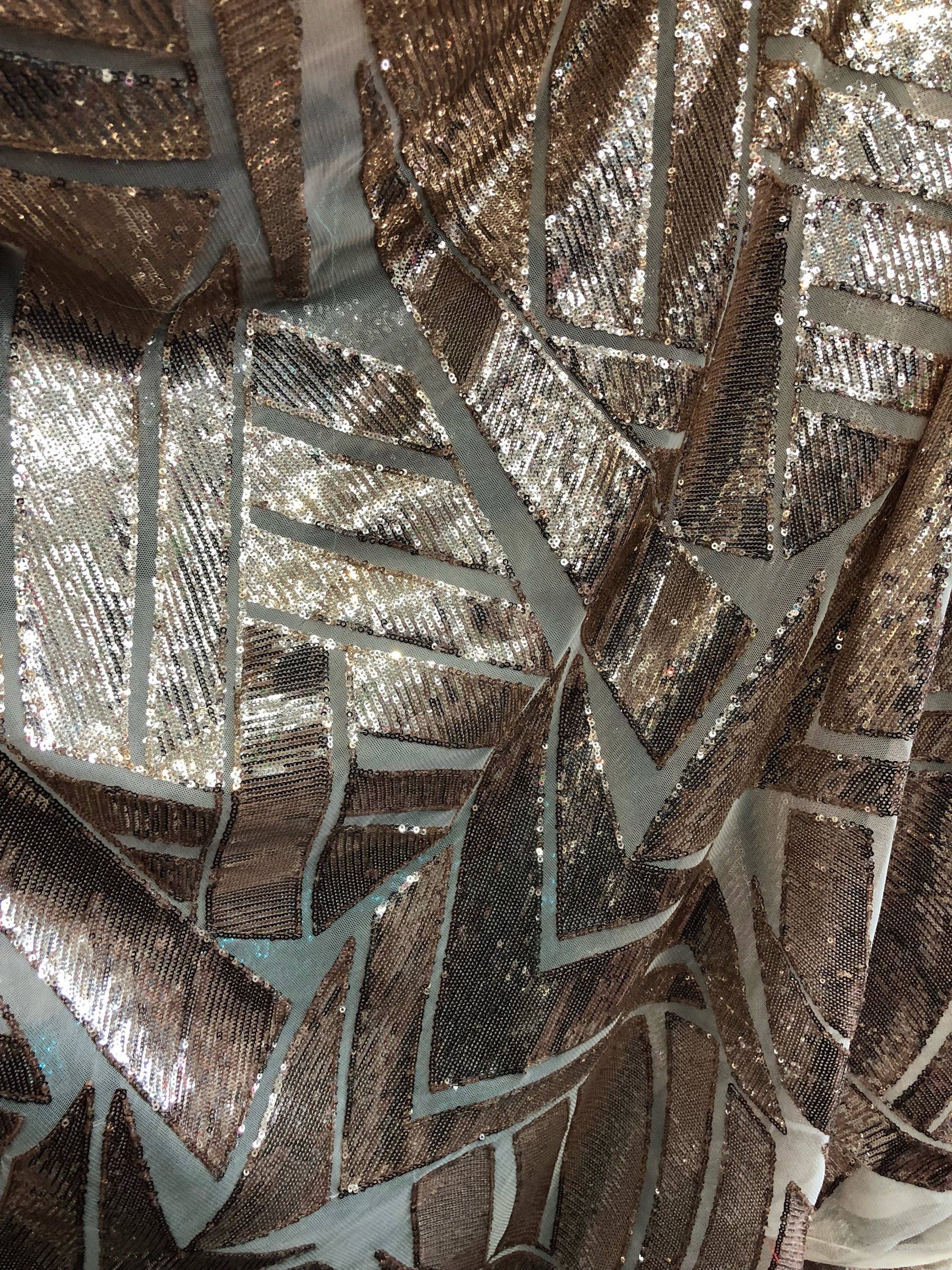 New sequins geometric design on stretch mesh 2 way stretch 58/60" Sold by the YD. Ships worldwide from Los Angeles California USA