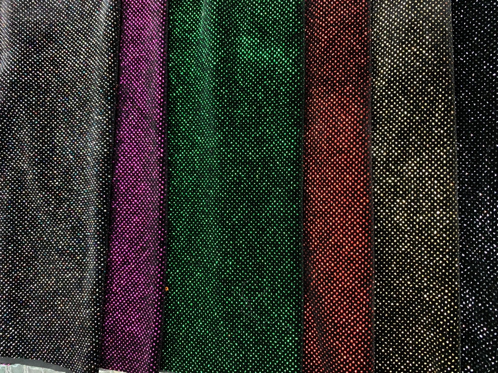 New sparkling stretch velvet best quality with shining glitter all over 4way stretch 58/60" Sold by the YD. Ships worldwide from Los Angeles California USA.