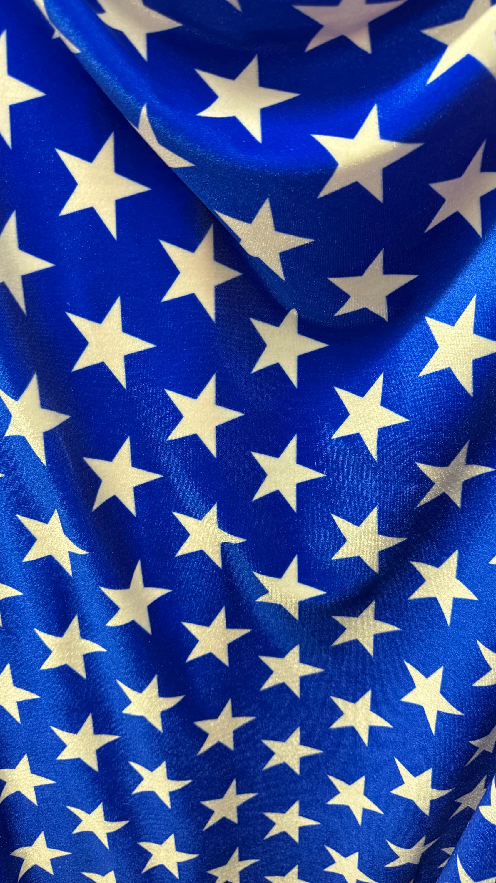 New Stars Freedom design print on nylon spandex with foggy foil all over and Stretch velvet heavy quality 4way 58/60" Sold by the YD. Ships worldwide from Los Angeles California USA. High quality fabrics by AlexLAFabrics