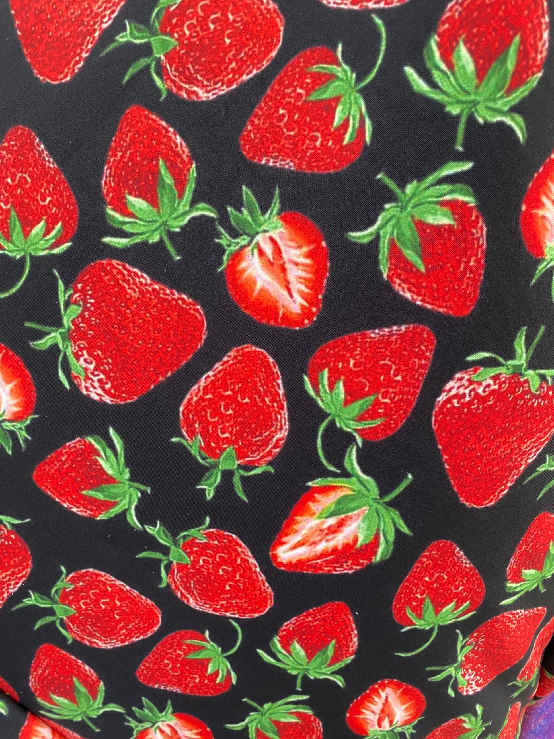 New strawberry design print on great quality of nylon spandex 4-way stretch 58/60” Sold by the YD. Ships Worldwide from Los Angeles cali