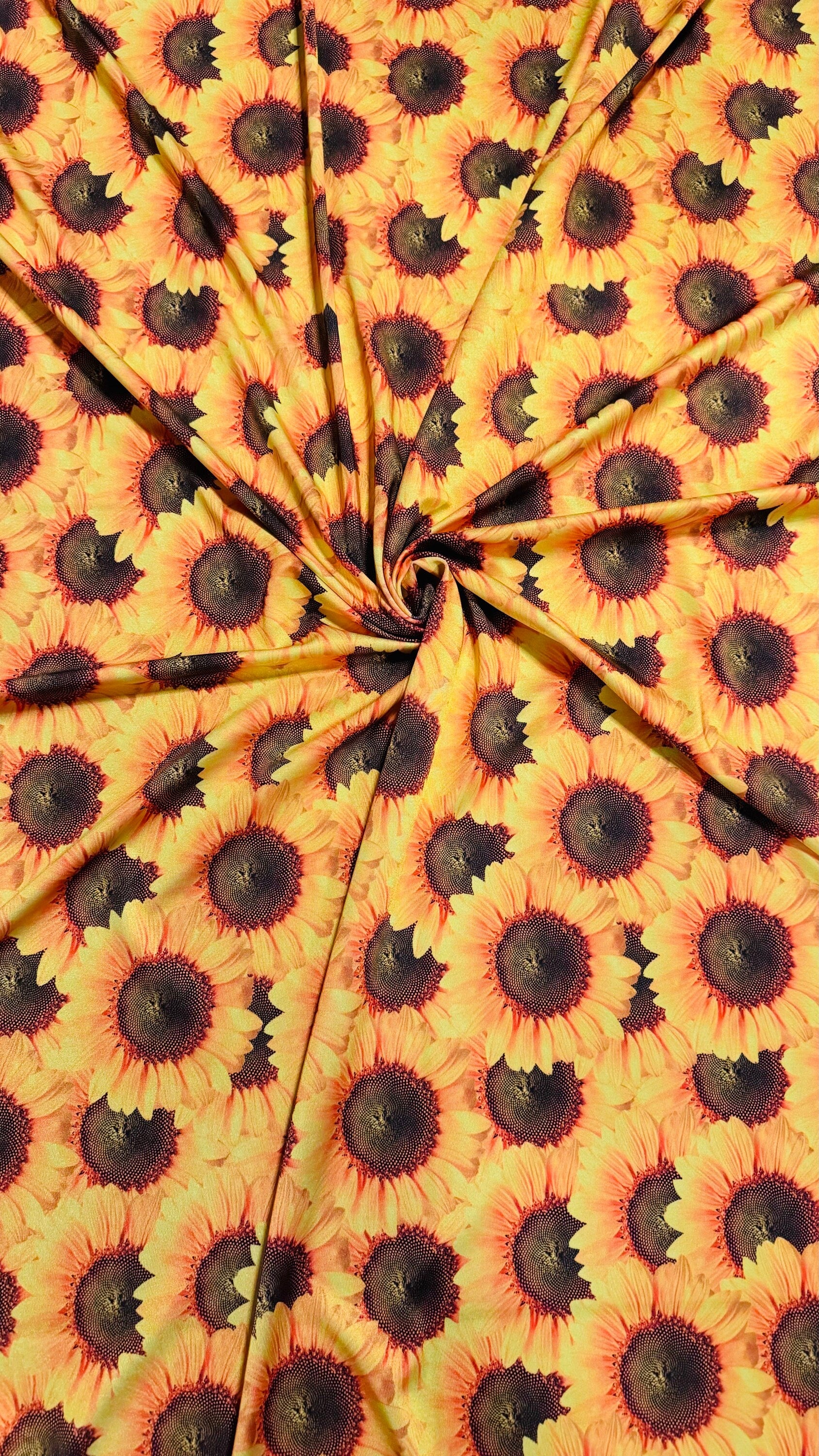 New Sunflower design print on best quality of nylon spandex 4-way stretch 58/60” Sold by the YD. Ships worldwide from Los Angeles California USA. High quality fabrics by AlexLAFabrics