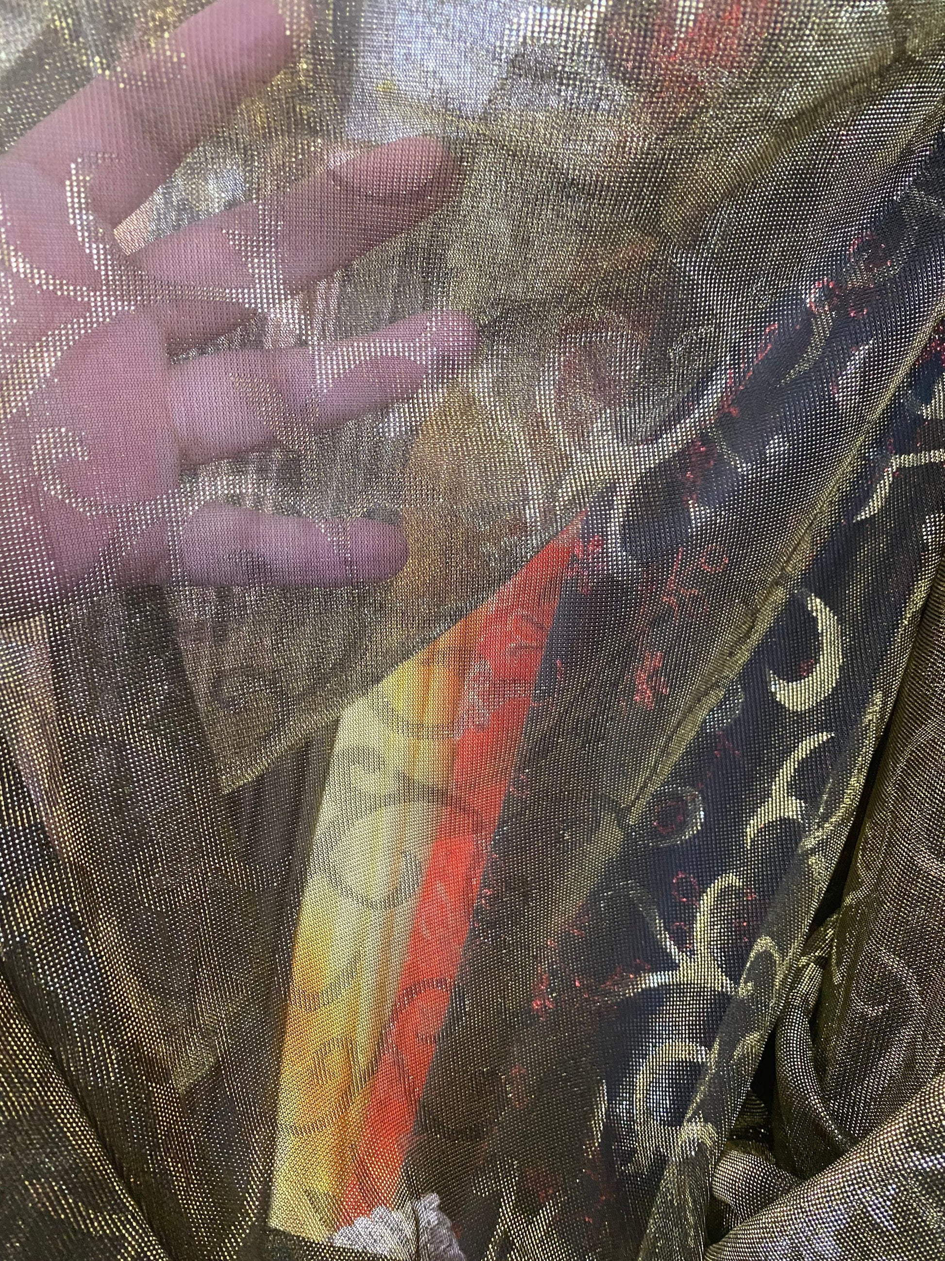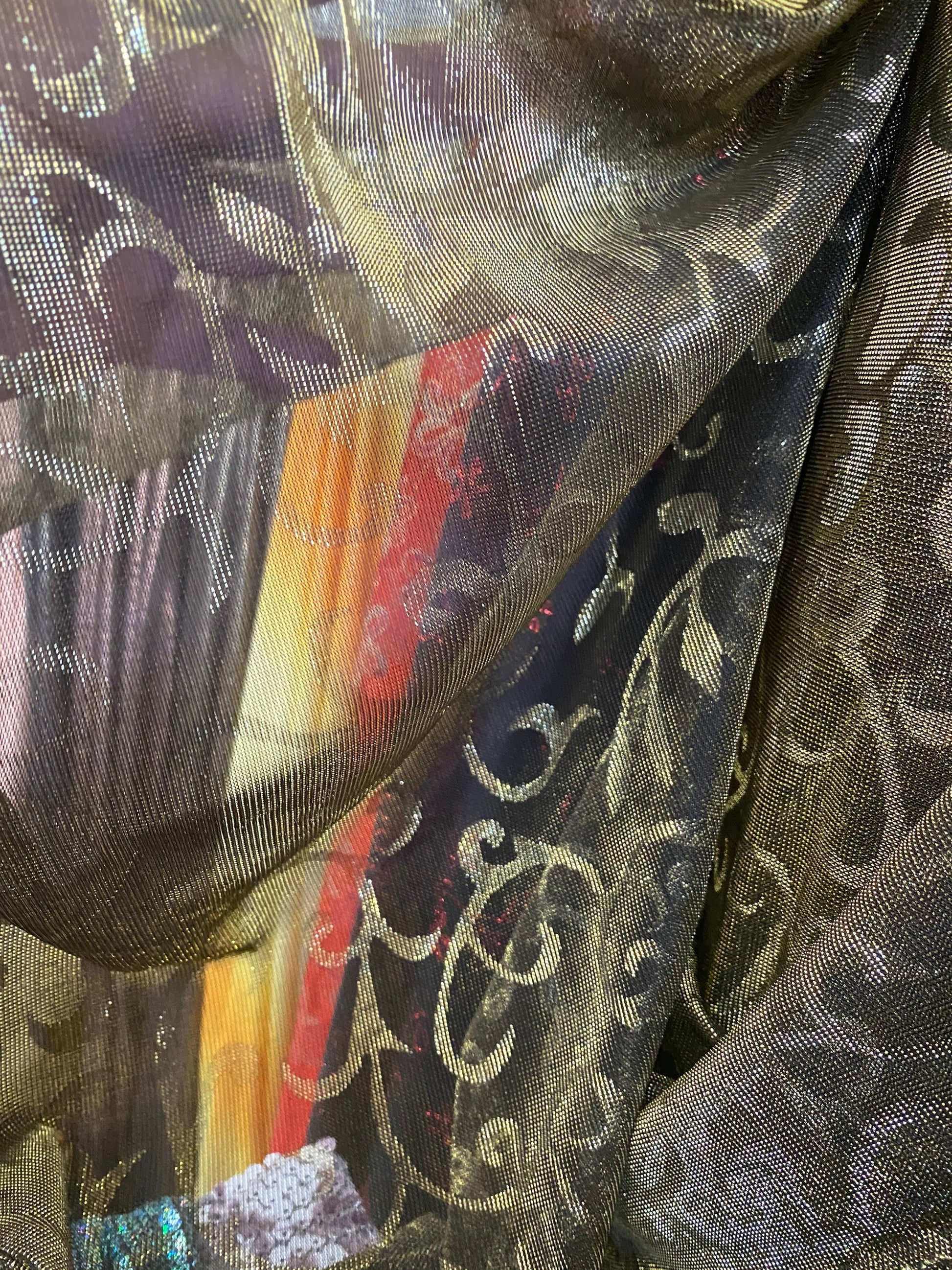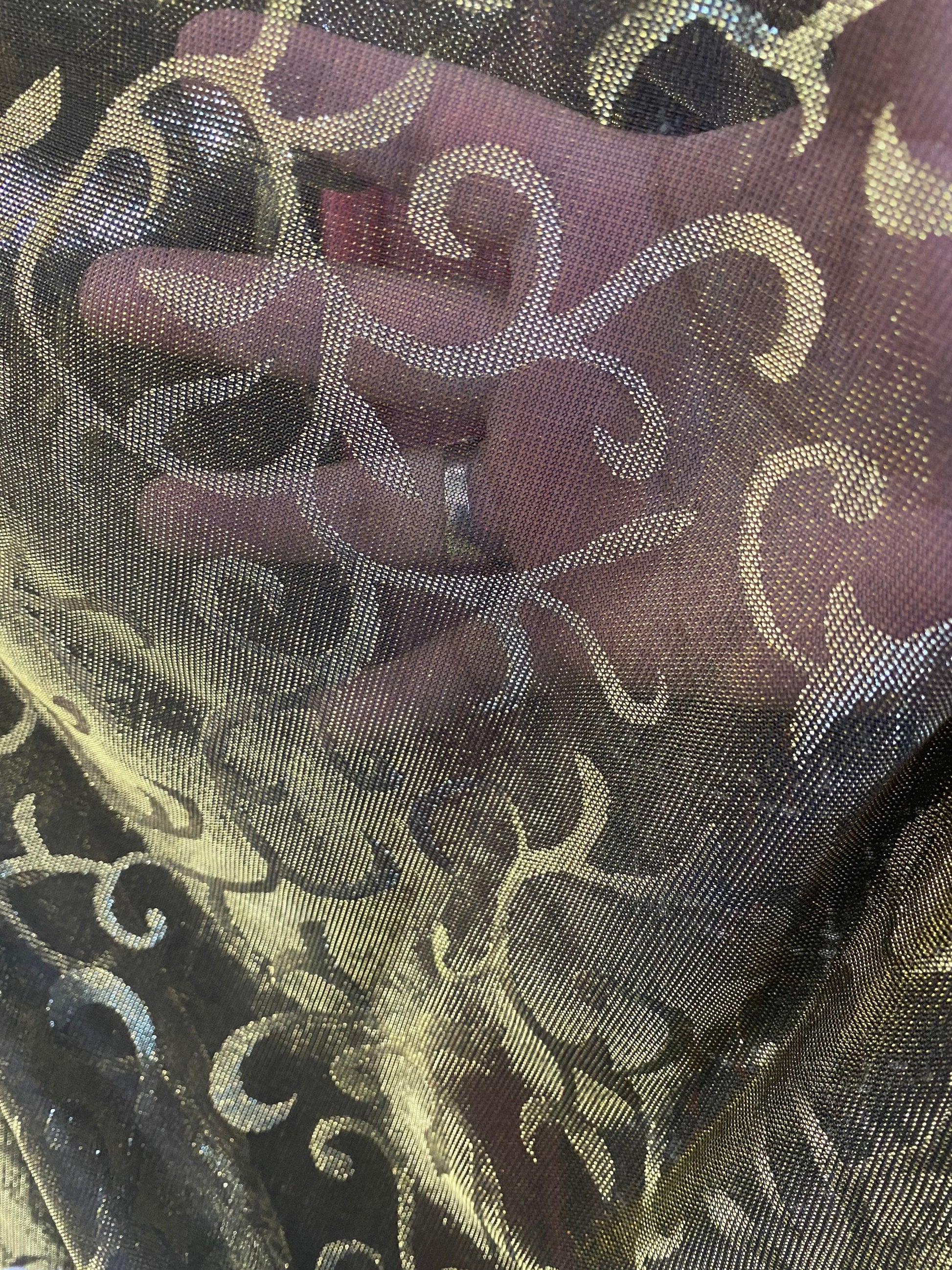 New Swirl design metallic mesh two tone gold 4-way stretch 58/60” Sold by the YD. Ships worldwide from Los Angeles California USA.