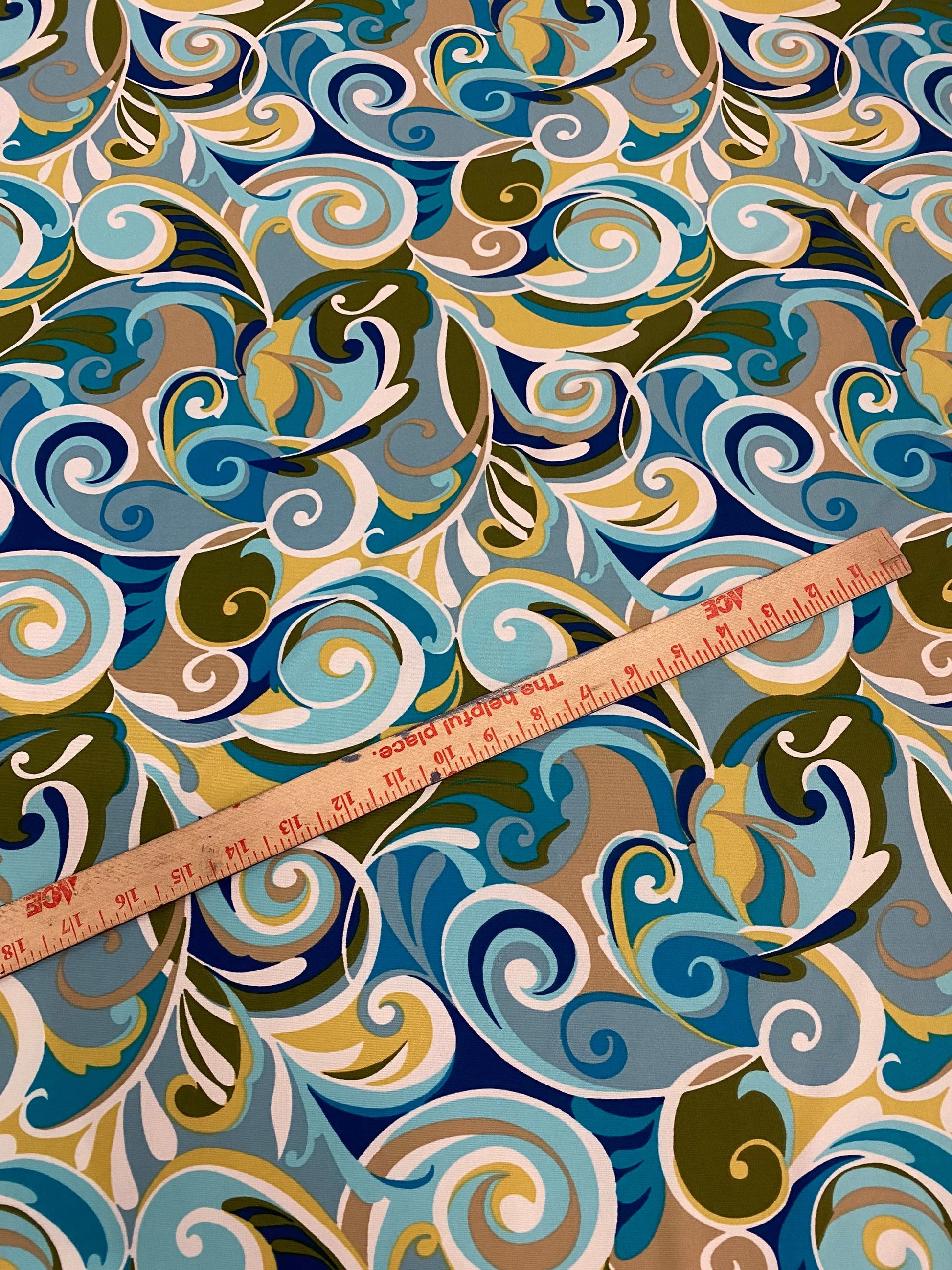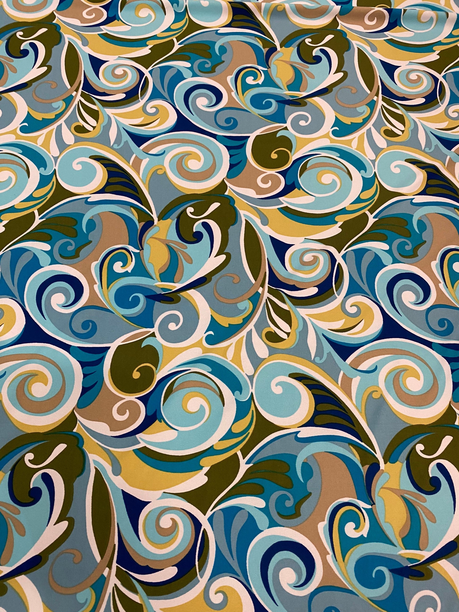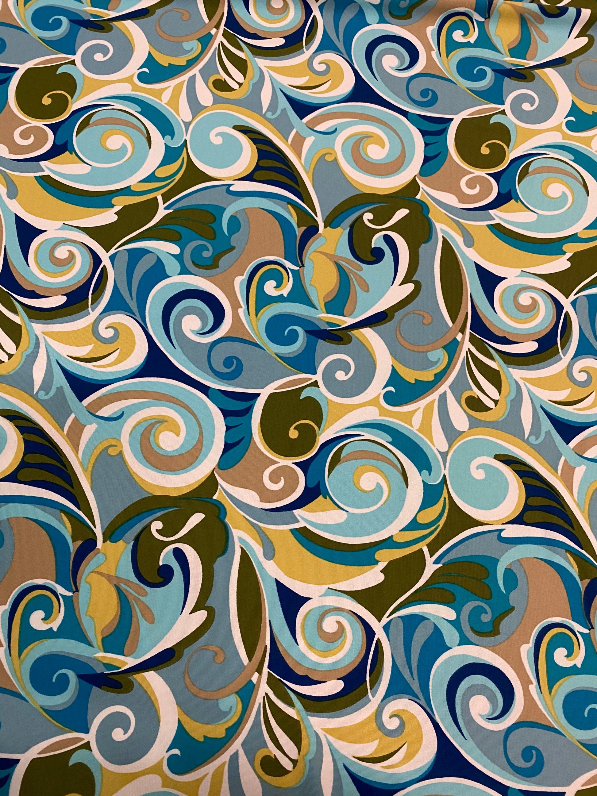 New swirl design multicolor print on poly spandex 4-way stretch 58/60” Sold by the YD. Ships Worldwide from Los Angeles California USA.