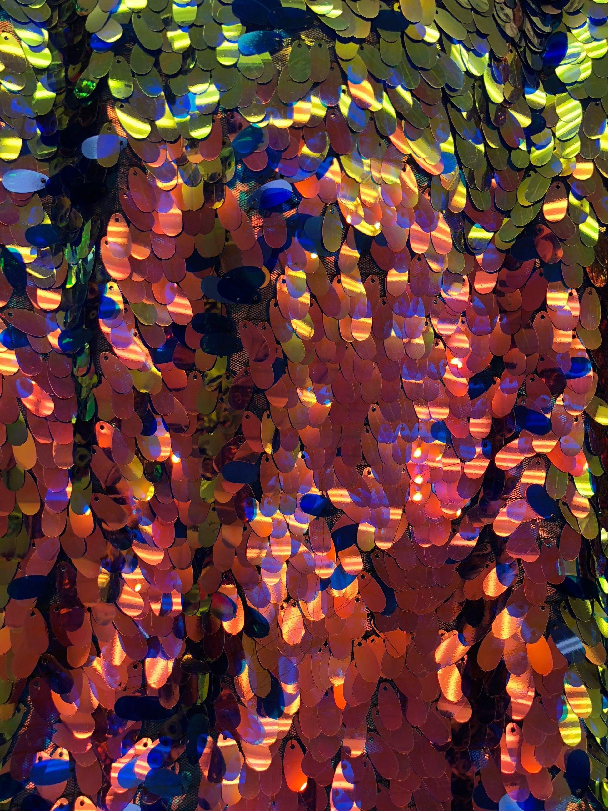 New Teardrops sequins medium size on mesh 2way stretch 58/60" Sold by the YD. Ships worldwide from Los Angeles California USA