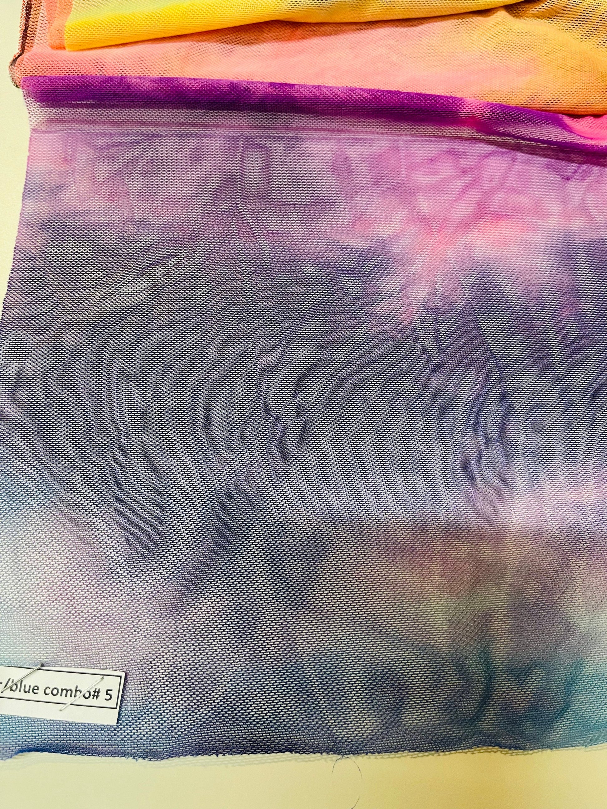 New Tie Dye power mesh nylon mesh 4-way stretch 58/60” Sold by the YD. Ships Worldwide from Los Angeles California USA.
