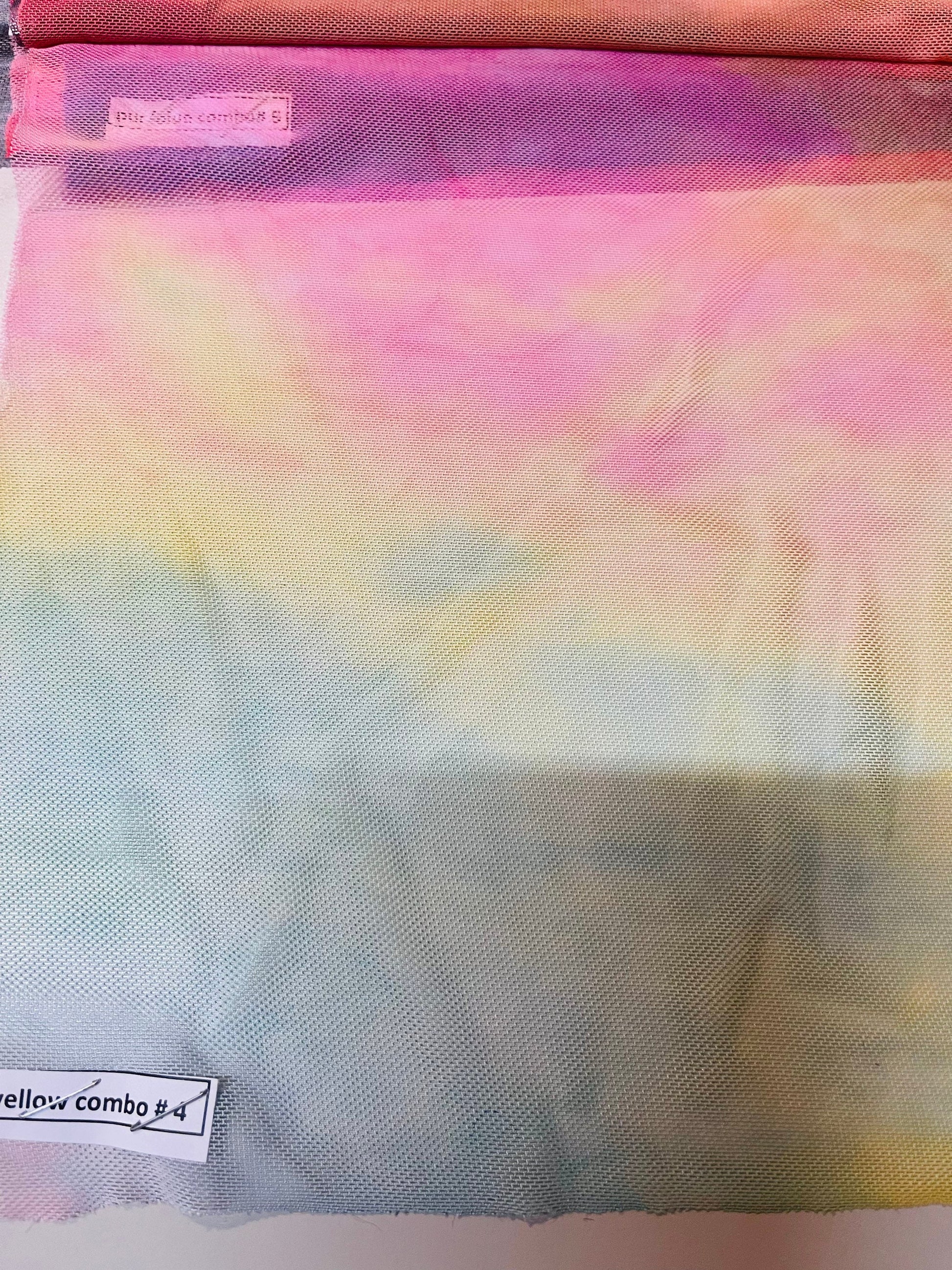 New Tie Dye power mesh multicolor nylon mesh 4-way stretch 58/60” Sold by the YD. Ships Worldwide from Los Angeles California USA.