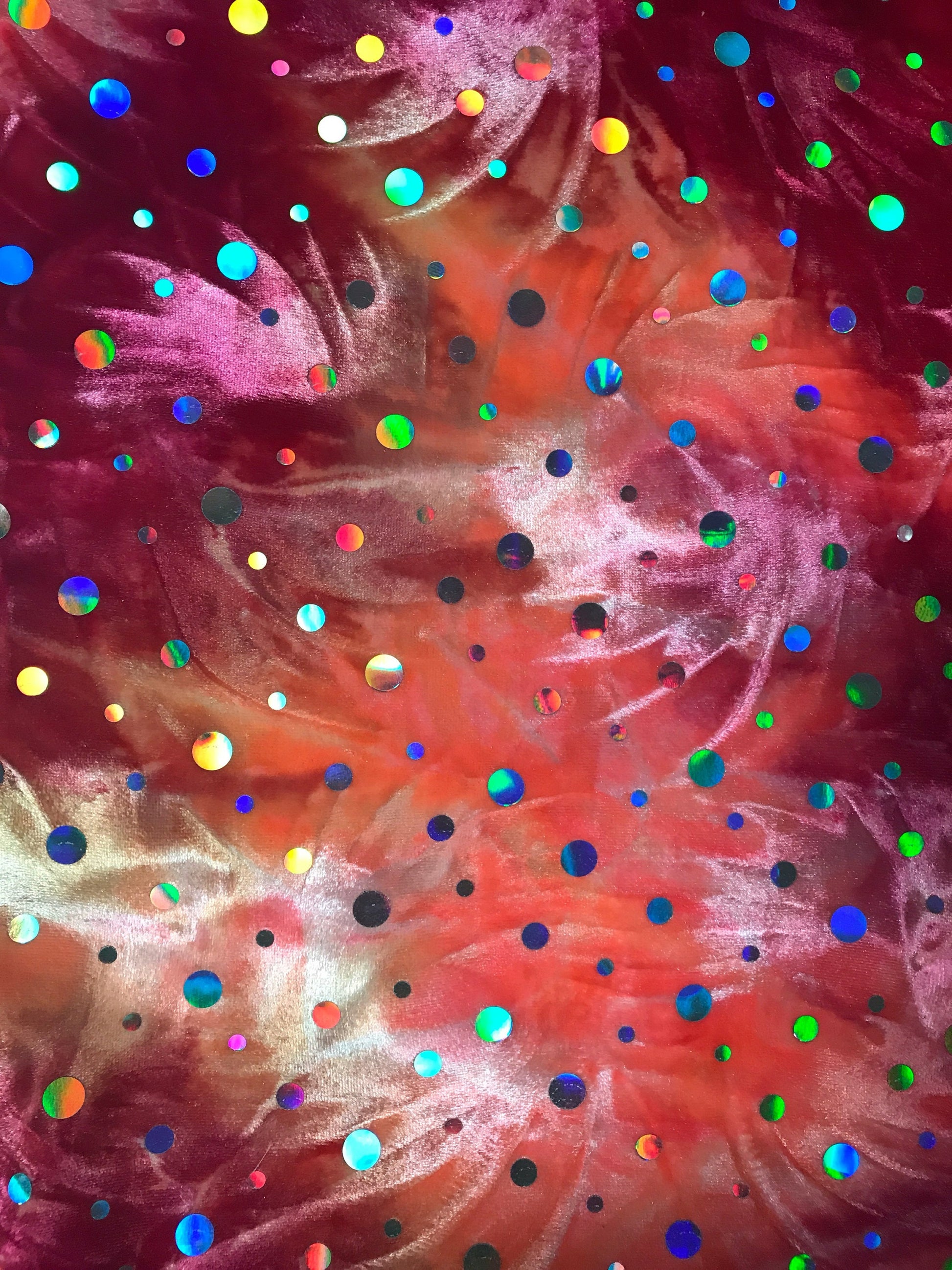New tie dye velvet with iridescent sequins 2way stretch 420 gsm 58/60" Sold by the YD. Ships worldwide from Los Angeles California USA