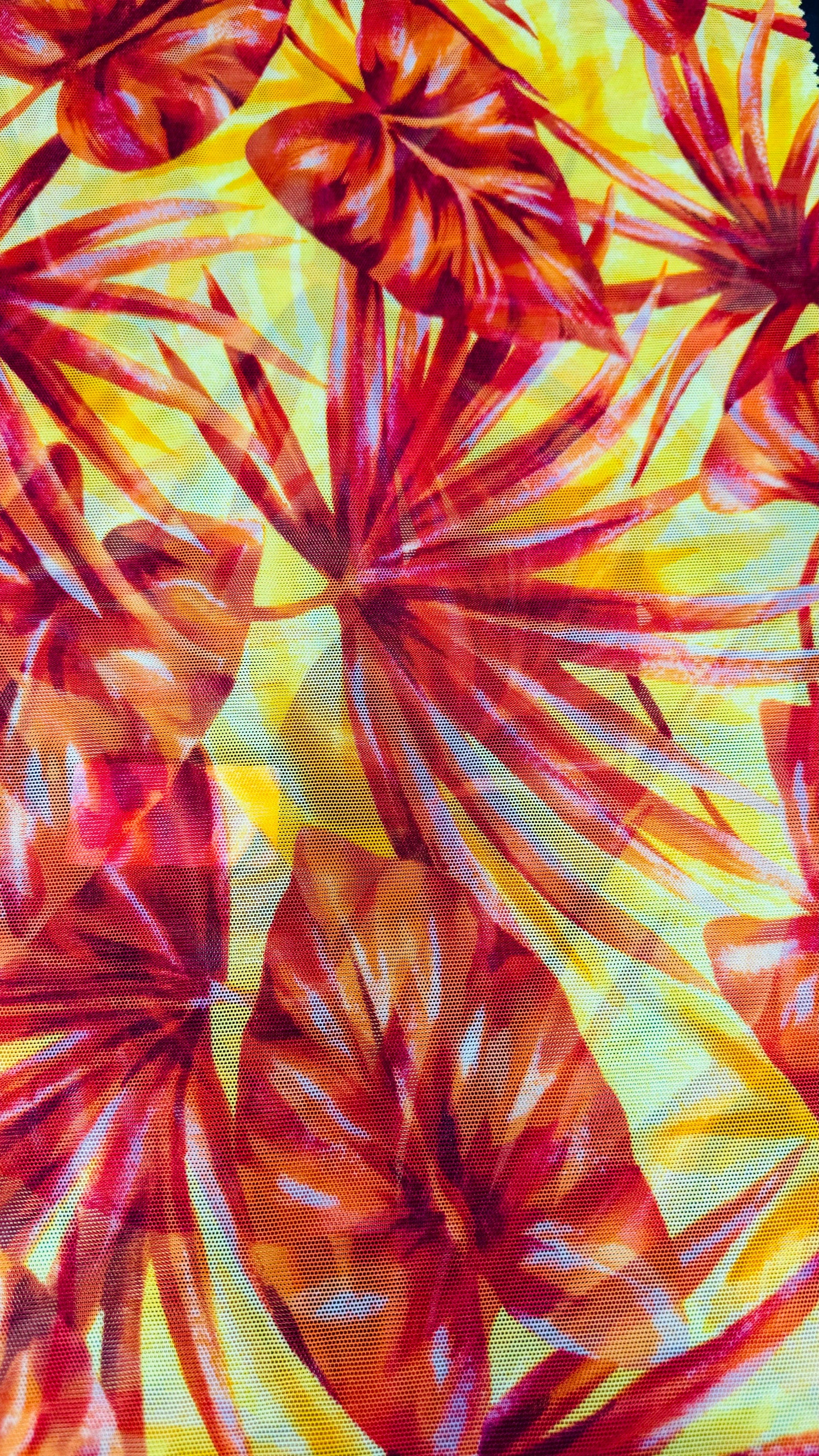 New Tropical design print on power mesh nylon spandex 4-way stretch 58/60” Sold by the YD. Ships worldwide from Los Angeles California USA. High quality fabrics by AlexLAFabrics