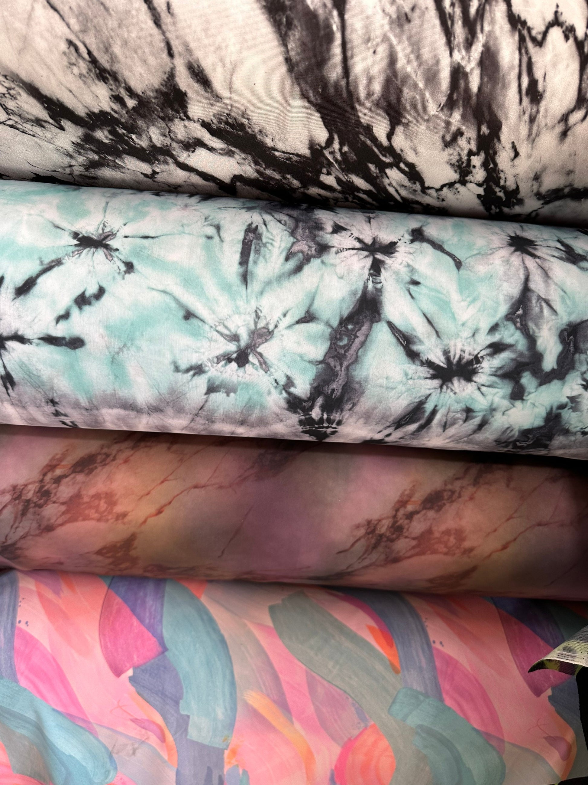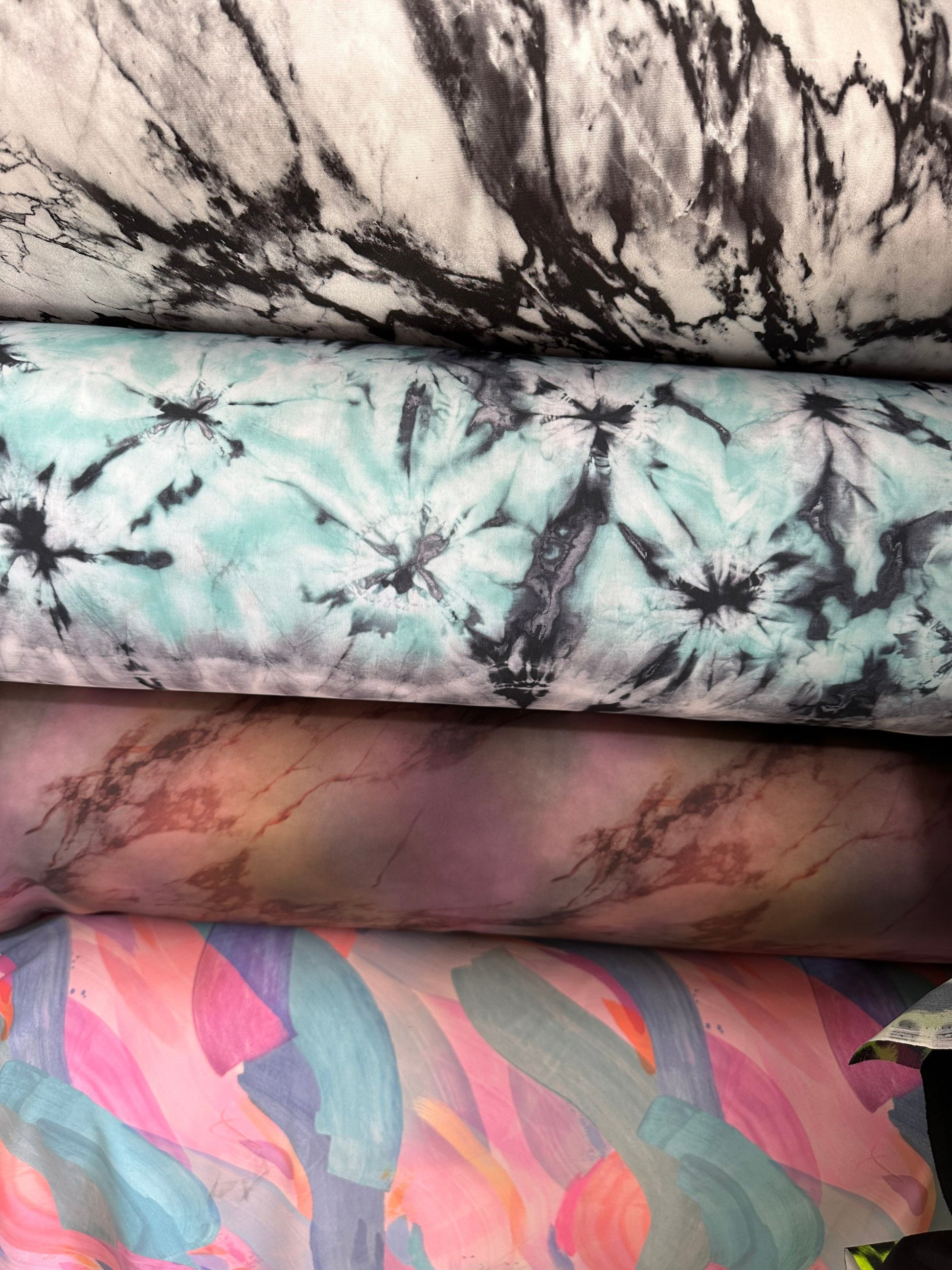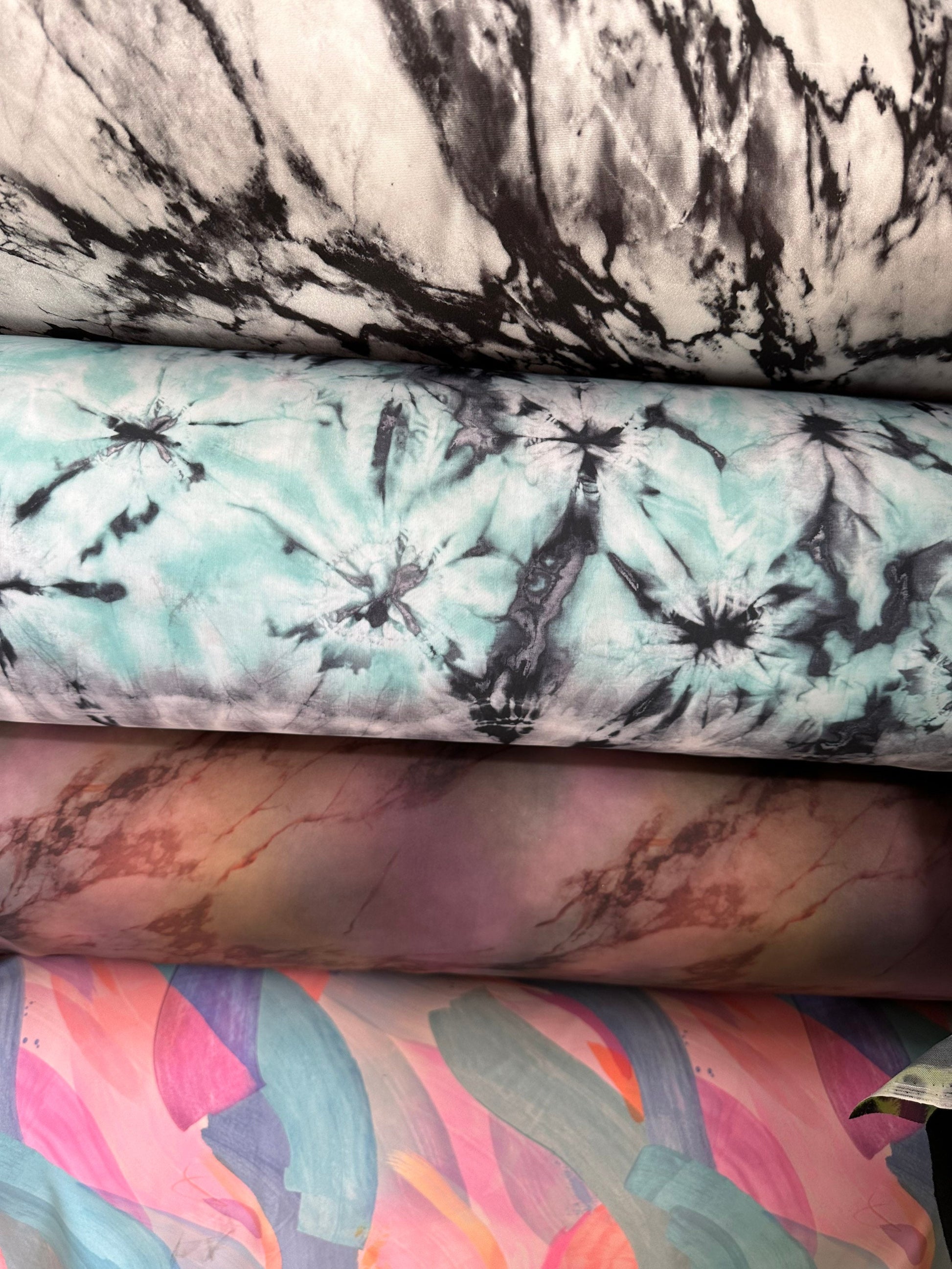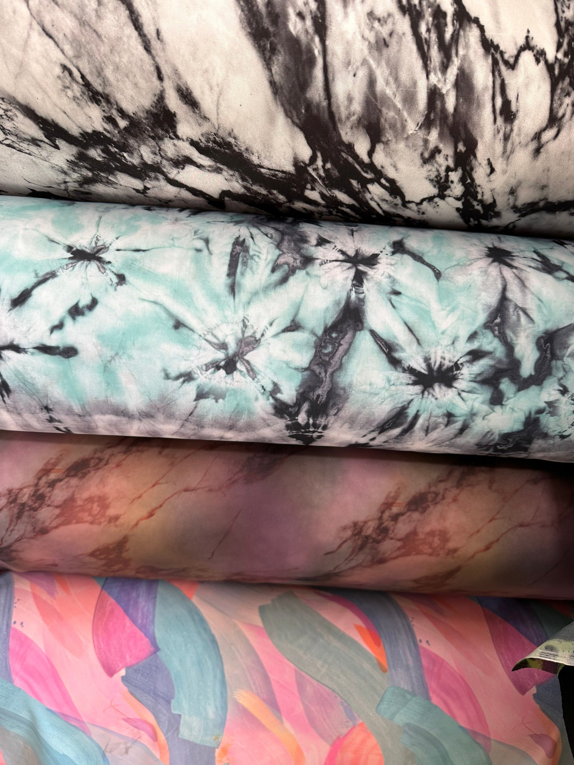 New various abstract designs print on great quality of nylon spandex 4-way stretch 58/60” Sold by the YD. Ships worldwide from Los Angeles California USA