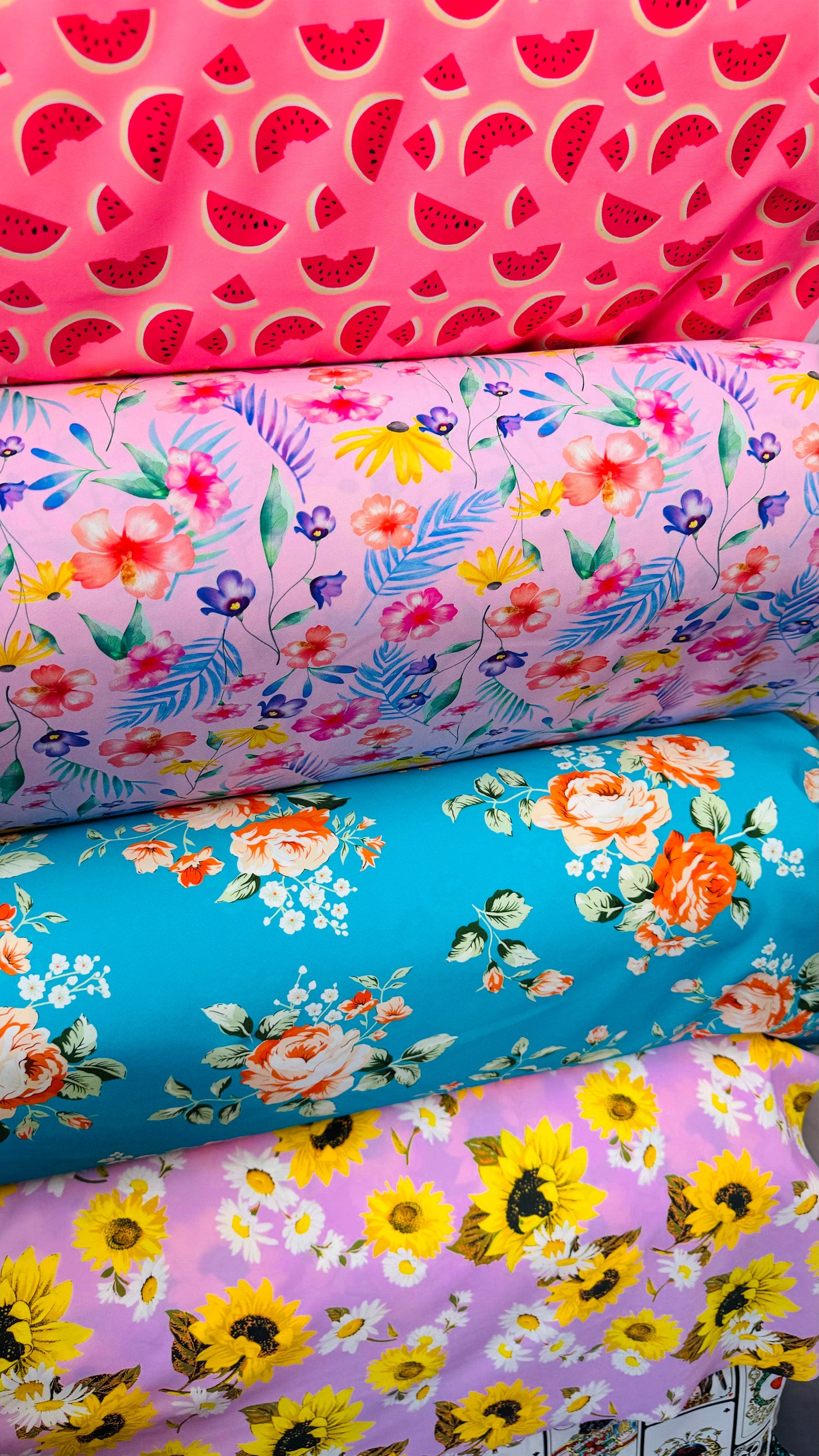 New various designs print on great quality of nylon spandex 4-way stretch 58/60” High quality fabrics by AlexLAFabrics