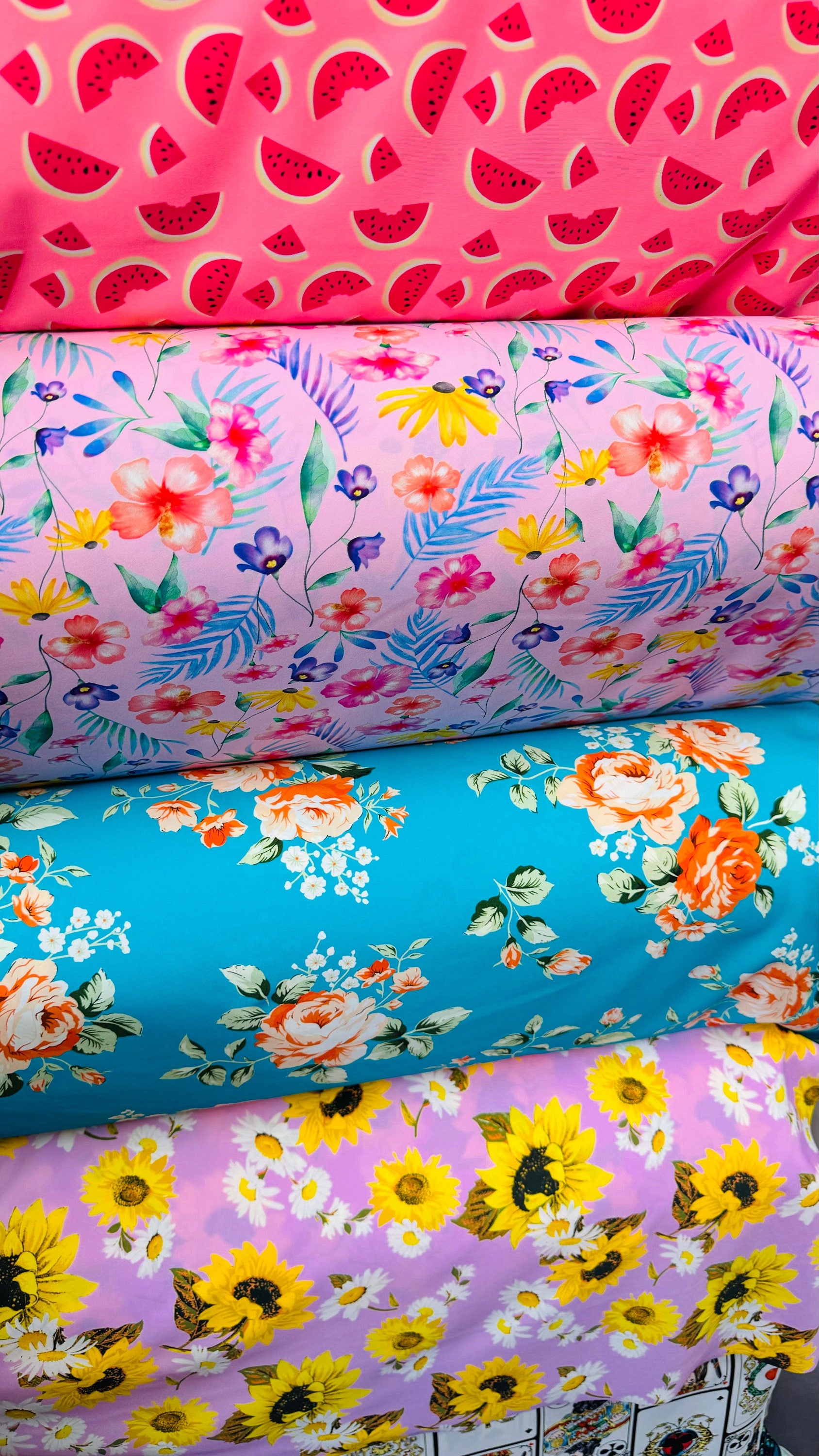 New various designs print on great quality of nylon spandex 4-way stretch 58/60” Sold by the YD. Ships worldwide from Los Angeles California USA. High quality fabrics by AlexLAFabrics