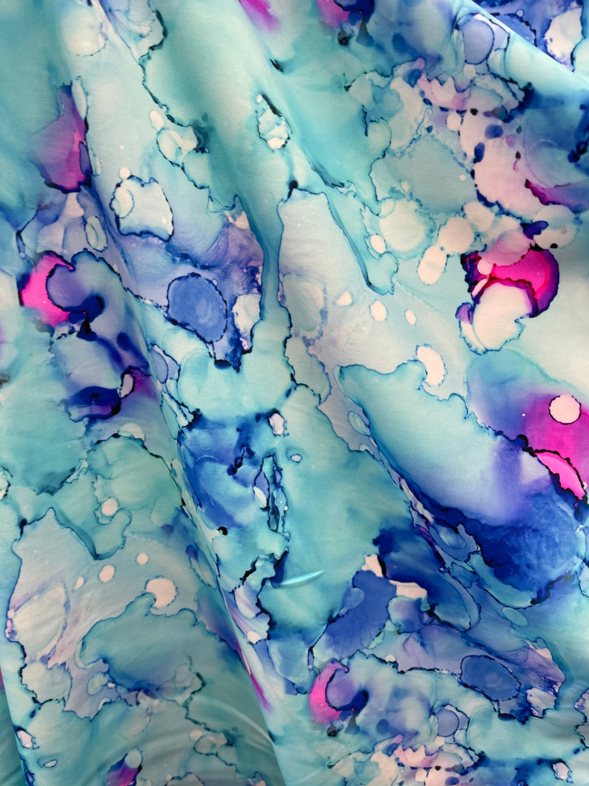 New Water abstract design print on best quality of nylon spandex 4-way stretch 58/60” Sold by the YD. Ships Worldwide from Los Angeles california USA.