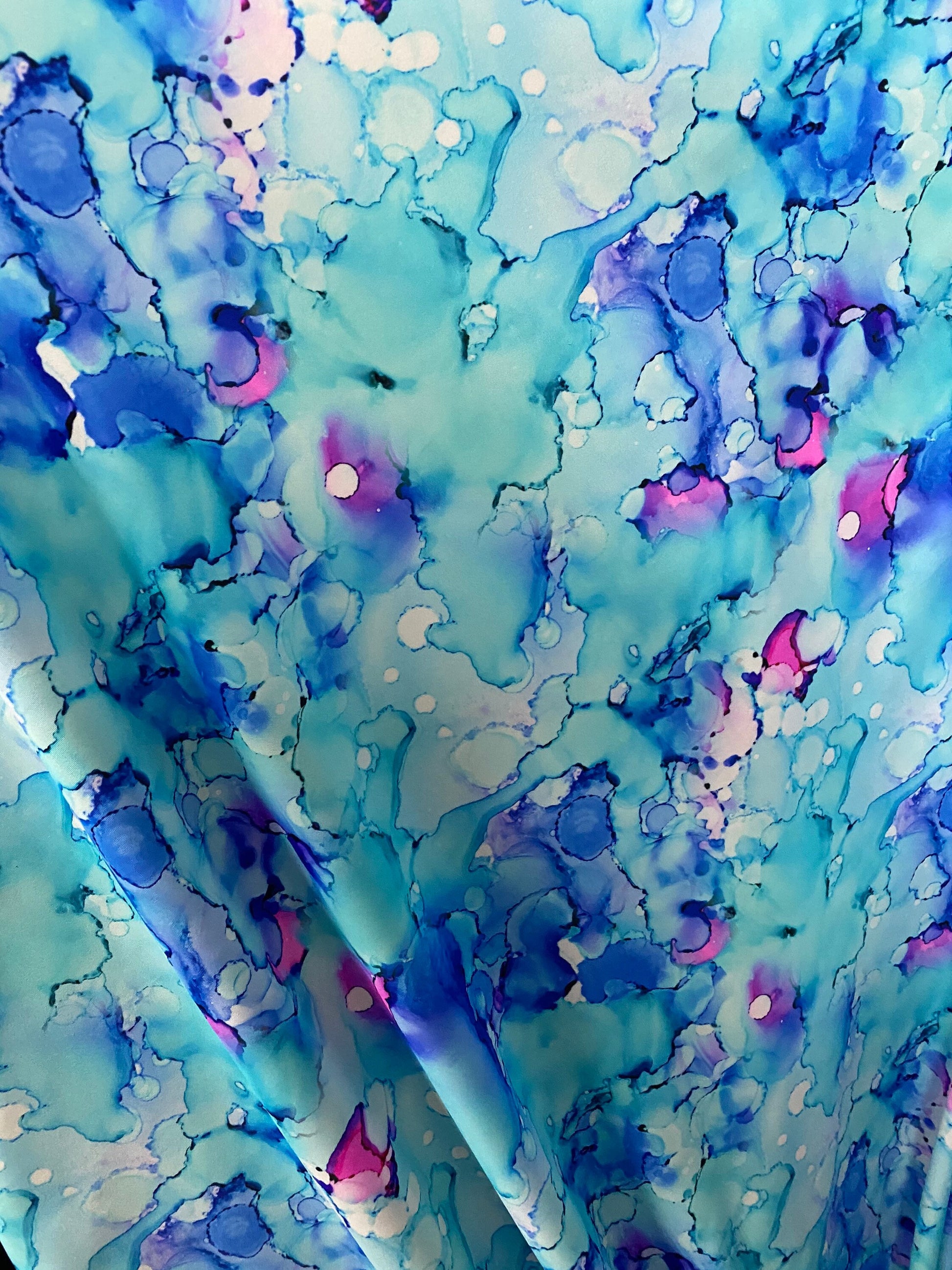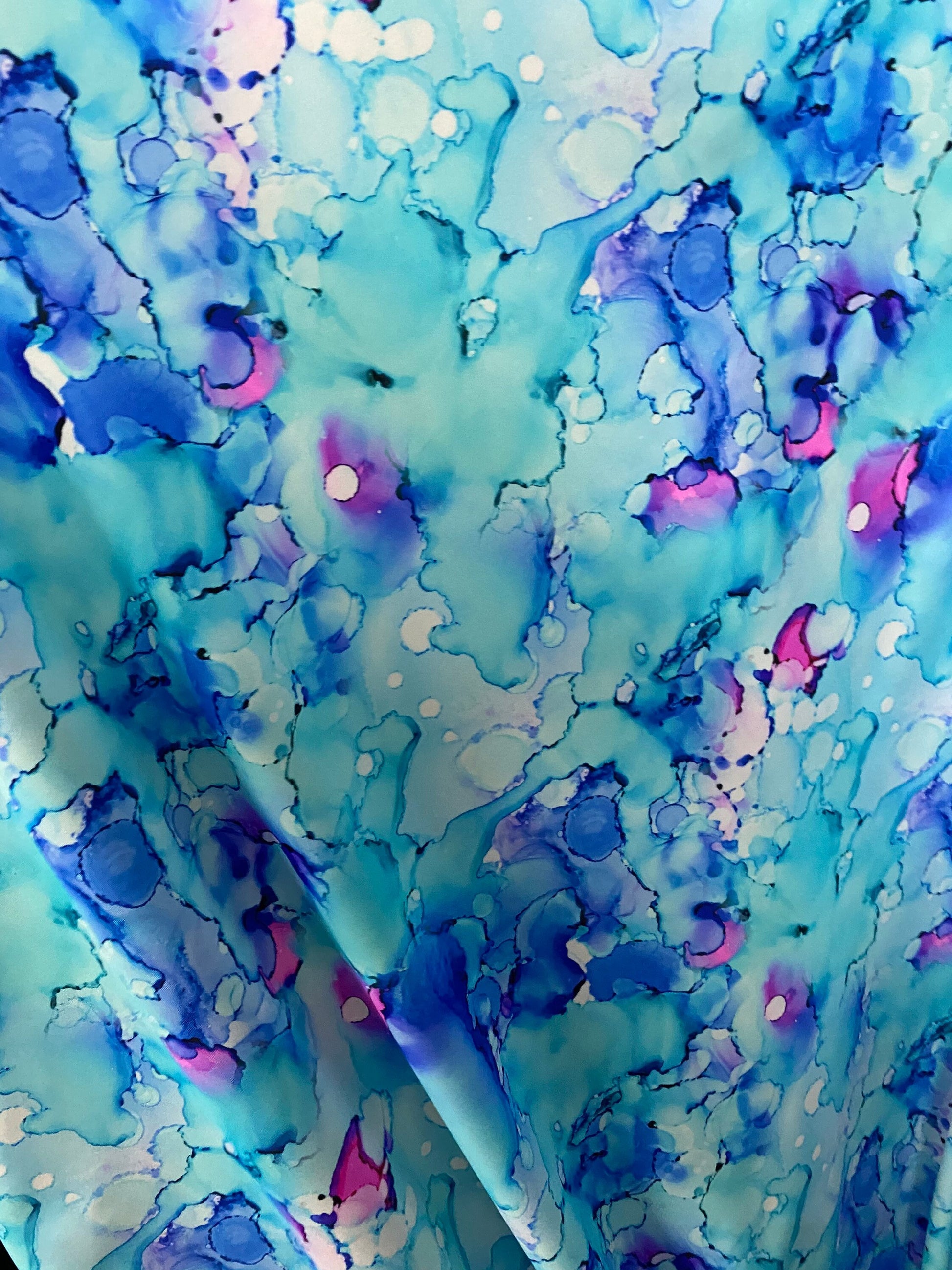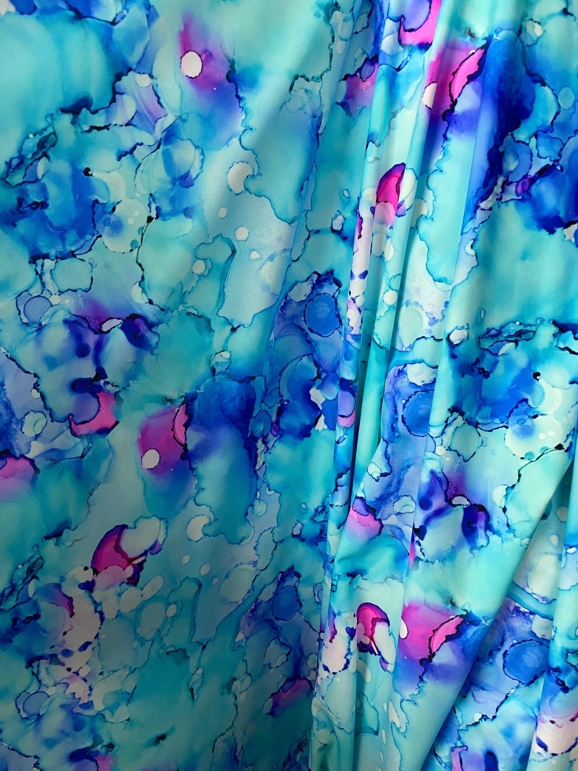 New water look design aqua color print on nylon spandex 4-way stretch 58/60” Sold by the YD. Ships worldwide from Los Angeles California USA