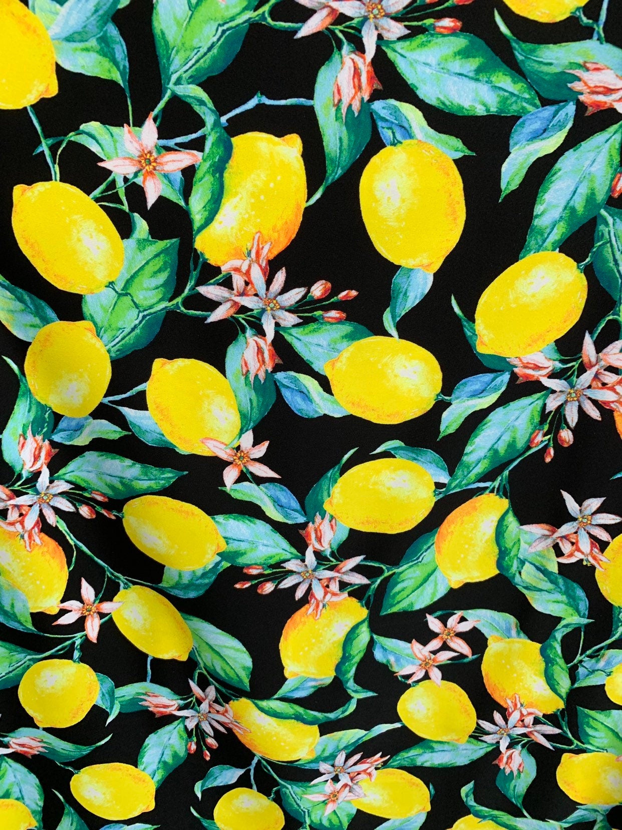 New yellow lemons design print on fine quality of nylon spandex 4way spandex 58/60" Sold by the YD. Ships worldwide from Los Angeles CA USA