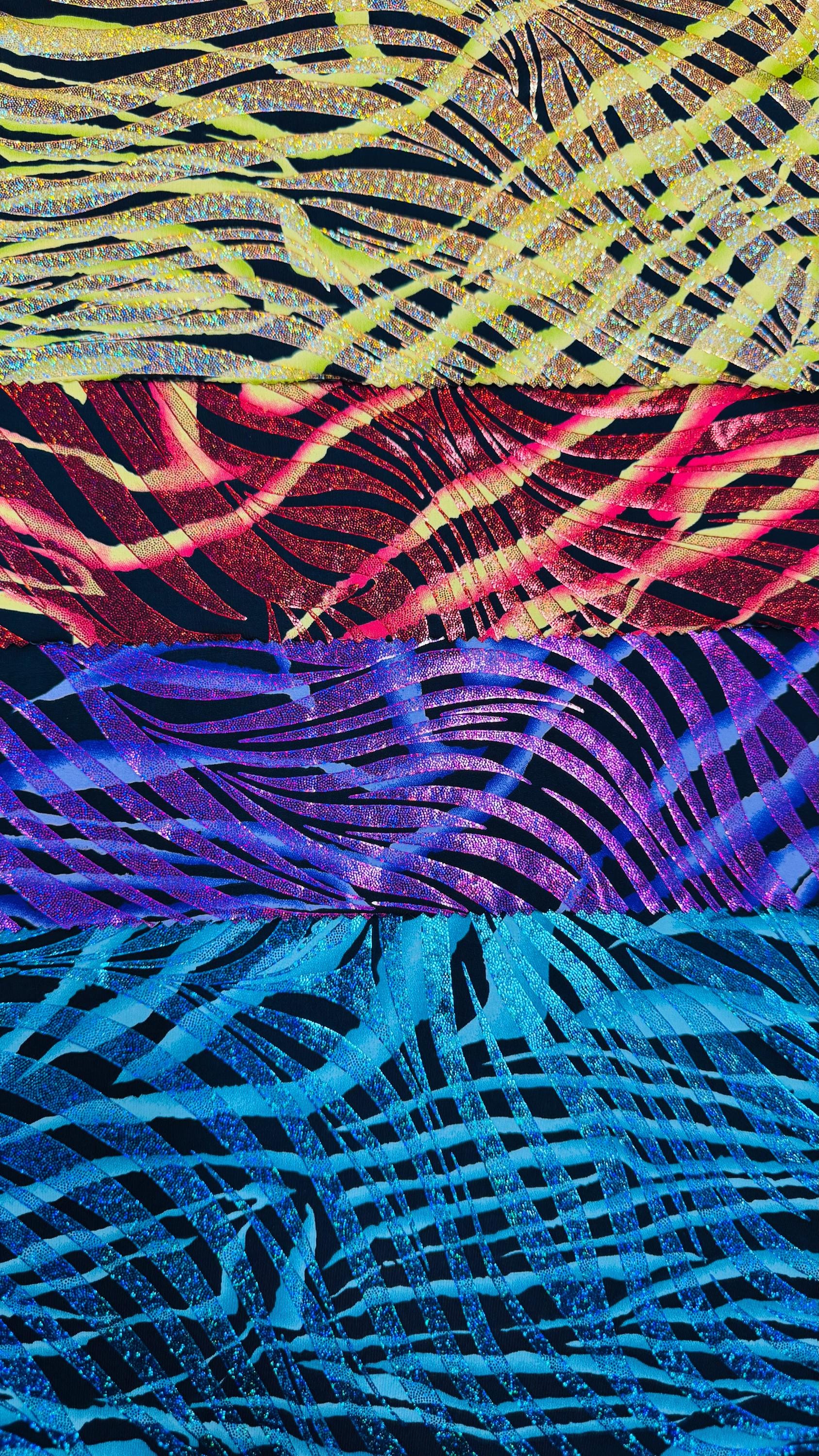 New Zebra multi Nylon spandex 4way stretch fantastic Zebra with Hologram Foil 58/60" Sold by the Yd. Ships worldwide from Los Angeles California USA. High quality fabrics by AlexLAFabrics