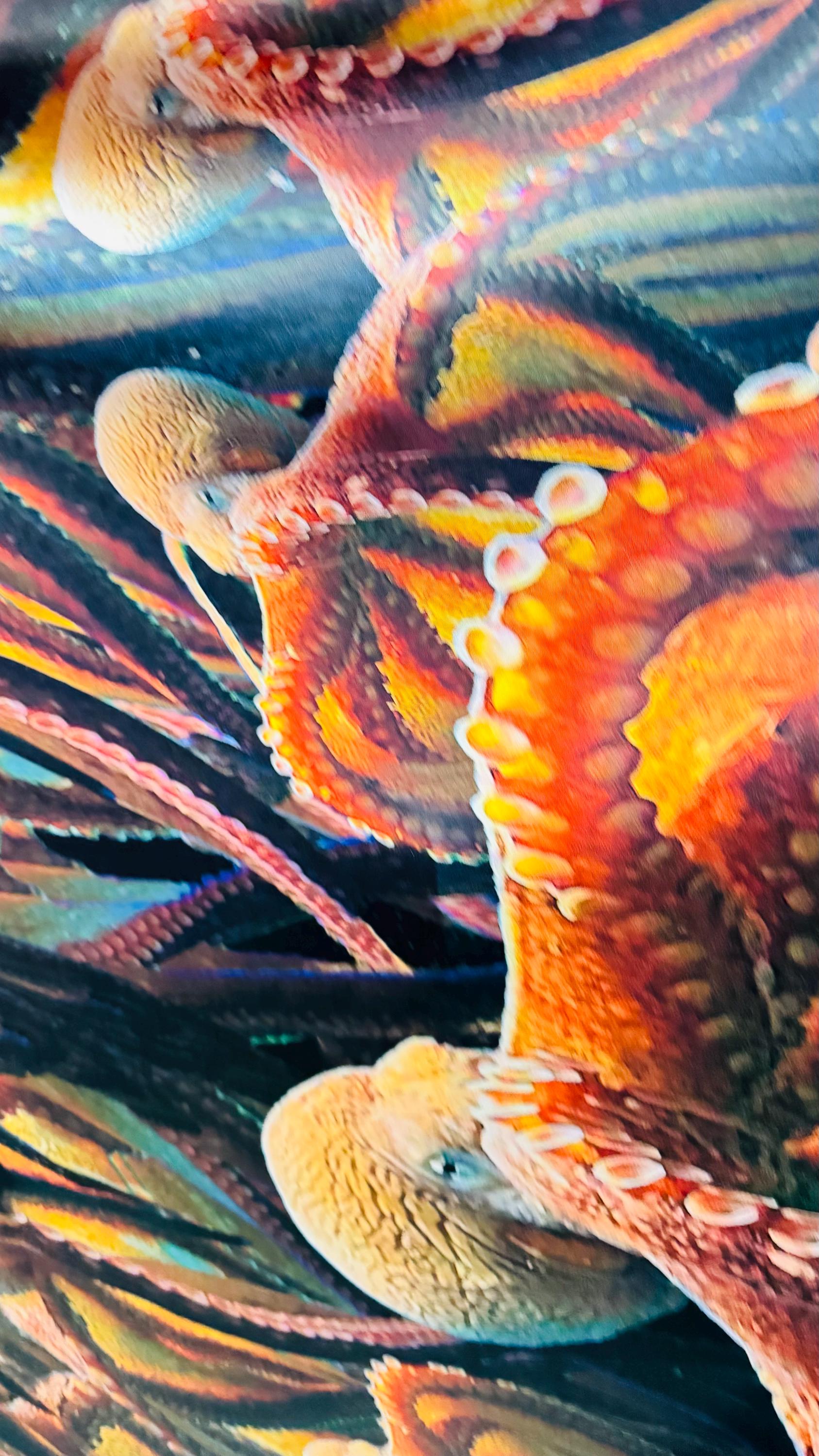 Octopus design multicolor print on nylon spandex 4way stretch 58/60" Sold by the yd. Ships worldwide from Los Angeles California USA.