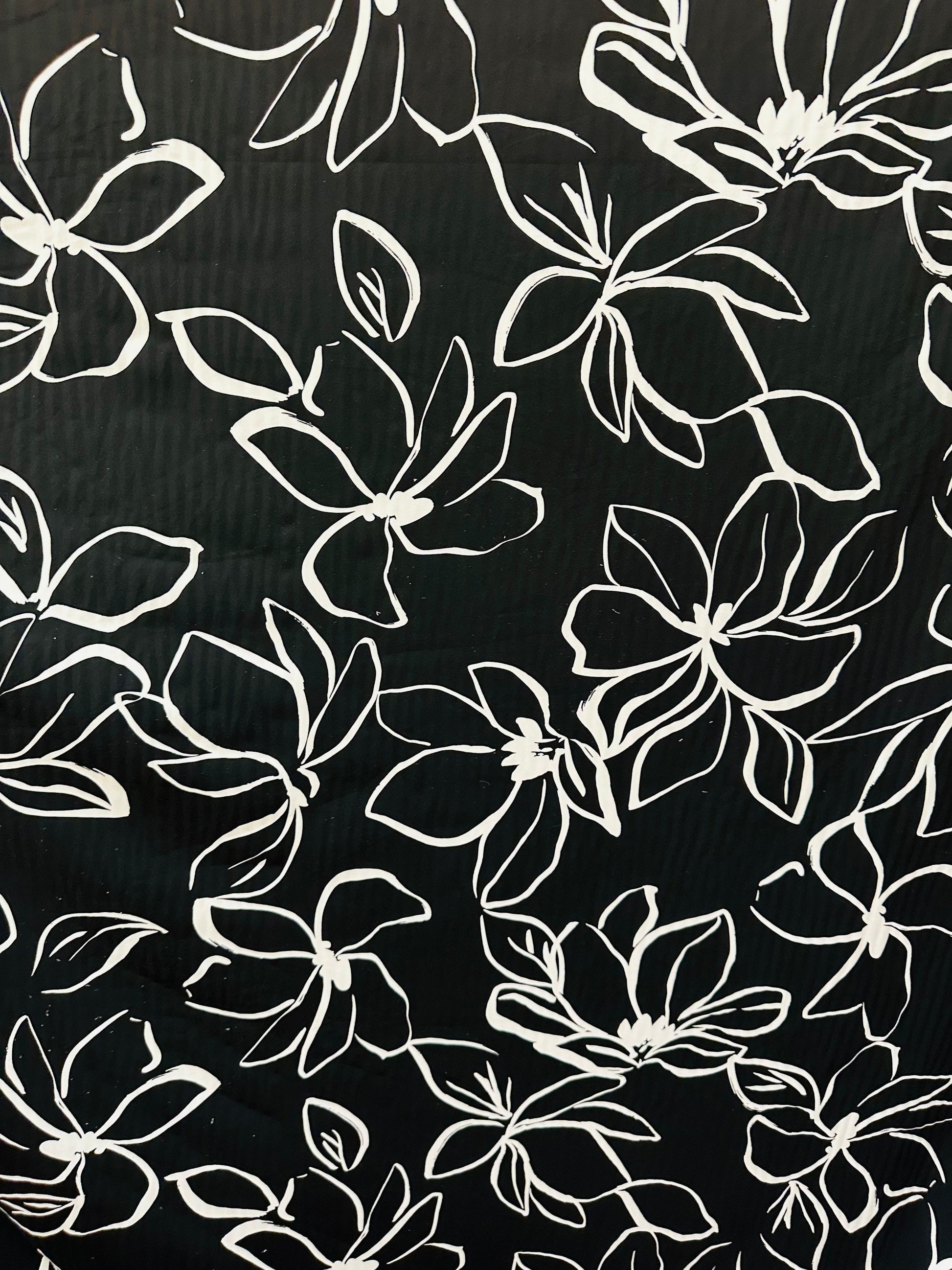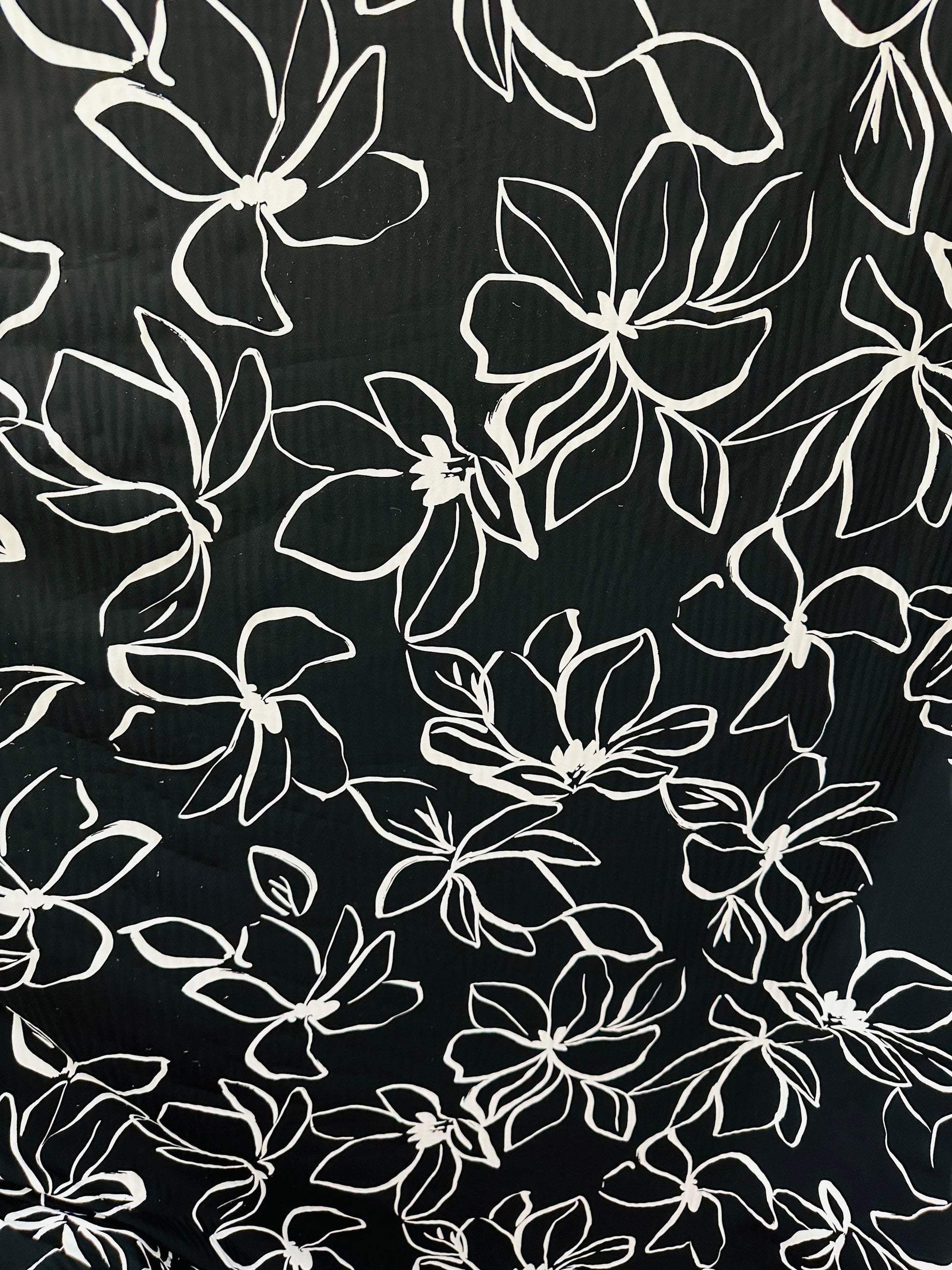 Orchid design Black/White print on great quality of nylon spandex 4-way stretch 58/60” Sold by the YD. Ships worldwide from Los Angeles California USA