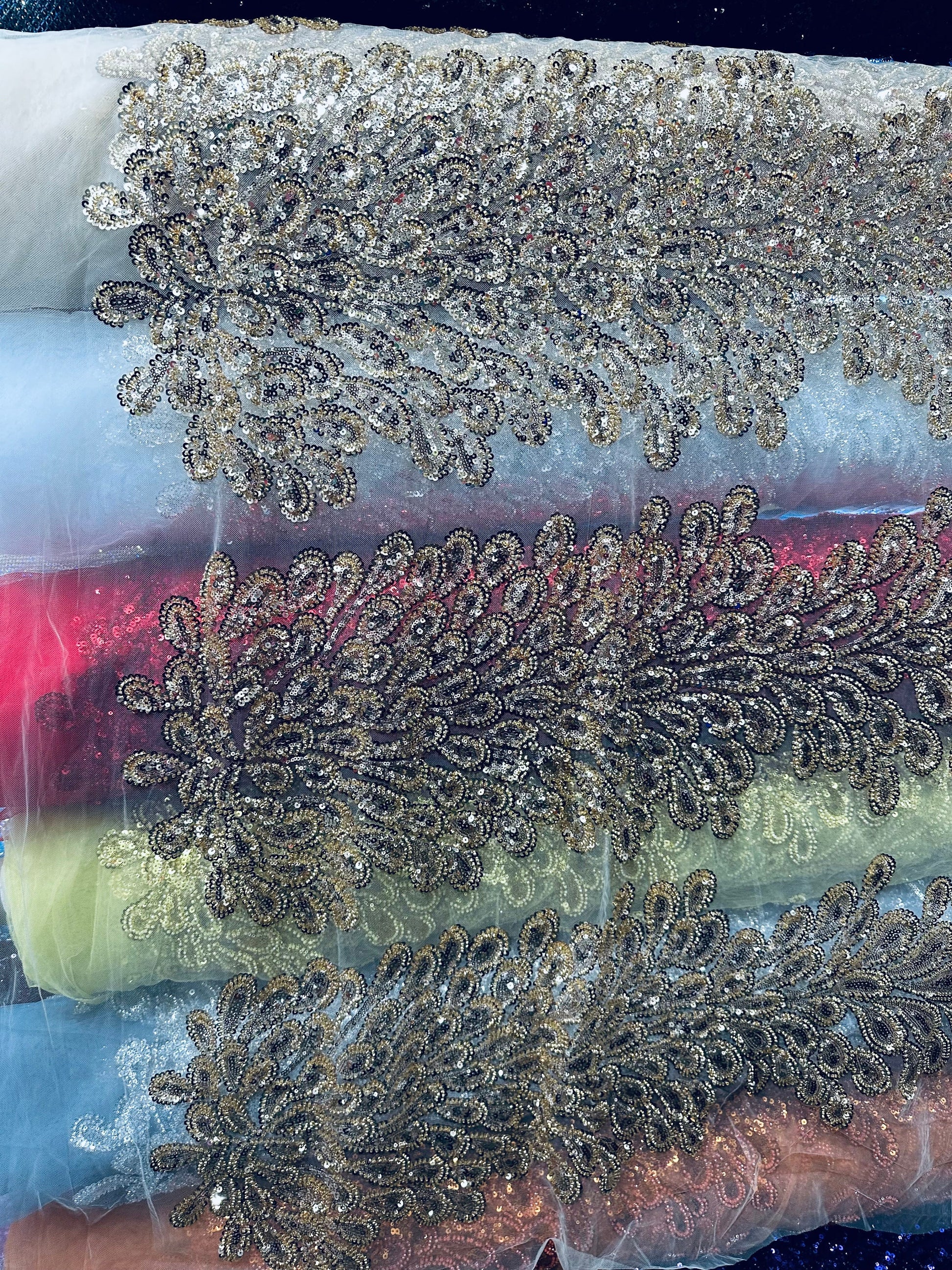 Peacock Beverly Hills design luxury beaded lace 2-way stretch 55/55” High quality fabrics by AlexLAFabrics