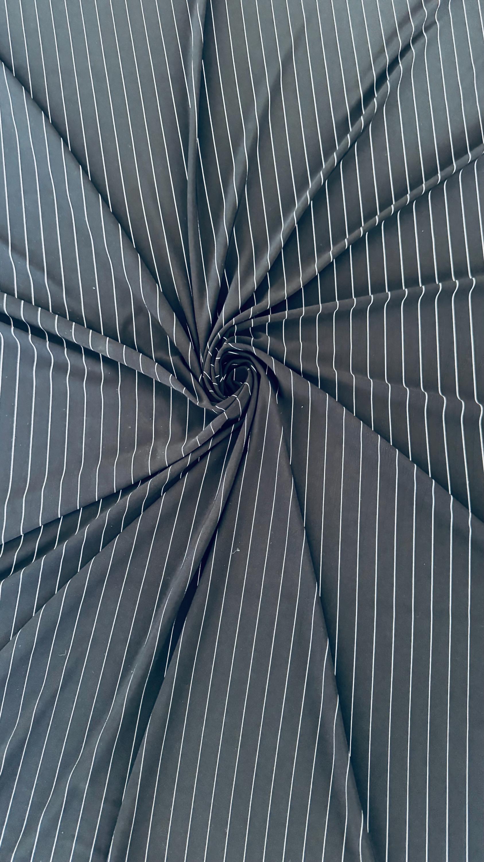Pin stripes on Poly spandex 4-way stretch 58/60” Sold by the YD. Ships worldwide from Los Angeles California USA. High quality fabrics