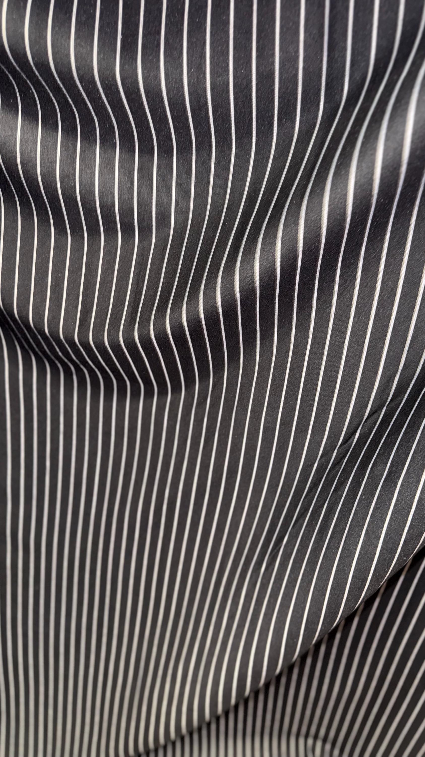 Pin stripes on spandex ponte de Roma fabric 2-way stretch 58/60” Sold by the YD. Ships worldwide from Los Angeles California USA.