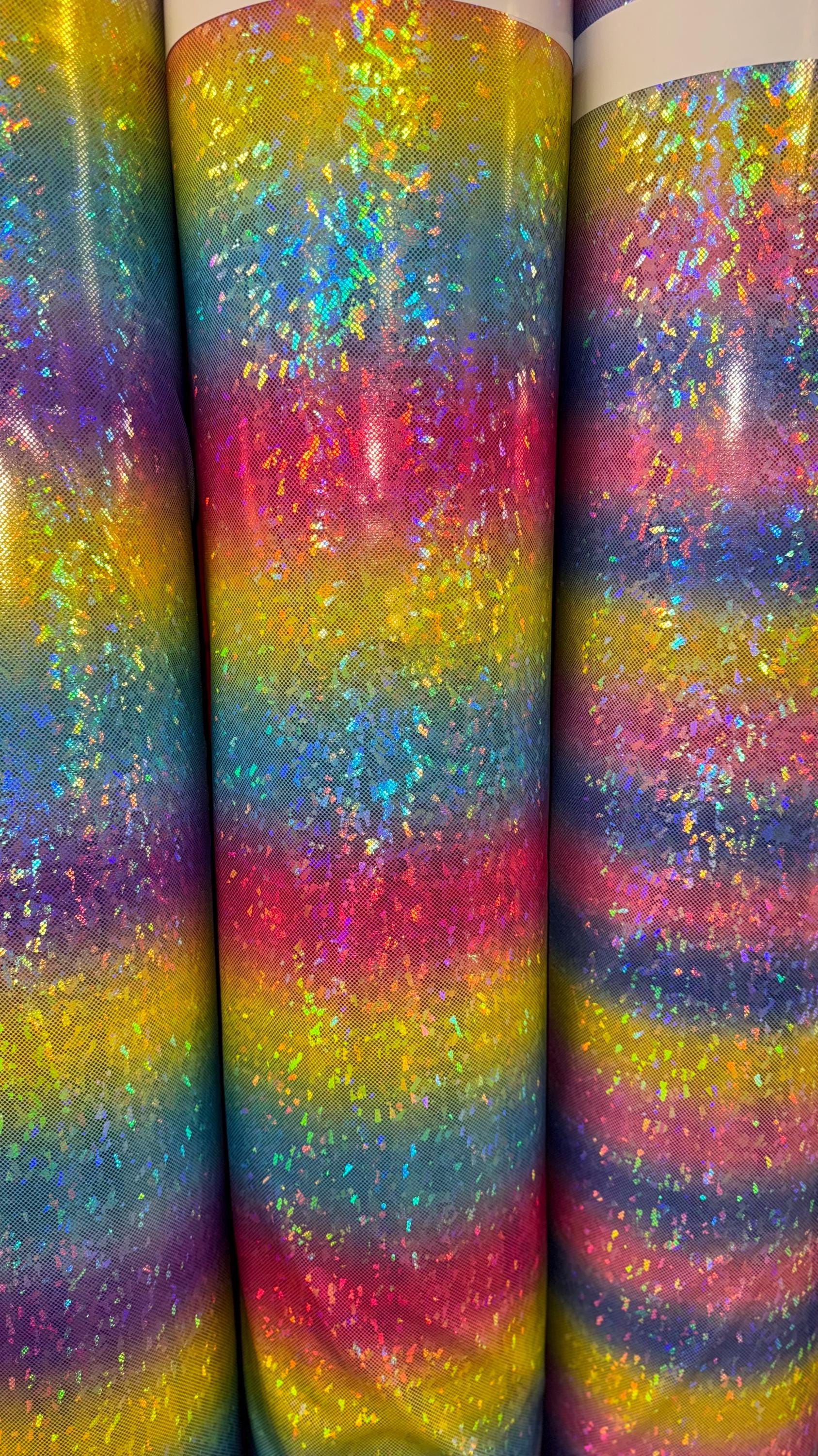 Rainbow Design hologram Shattered Glass metallic nylon spandex 4-way stretch 58/60" Sold by the YD. Ships worldwide From Los Angeles CA USA