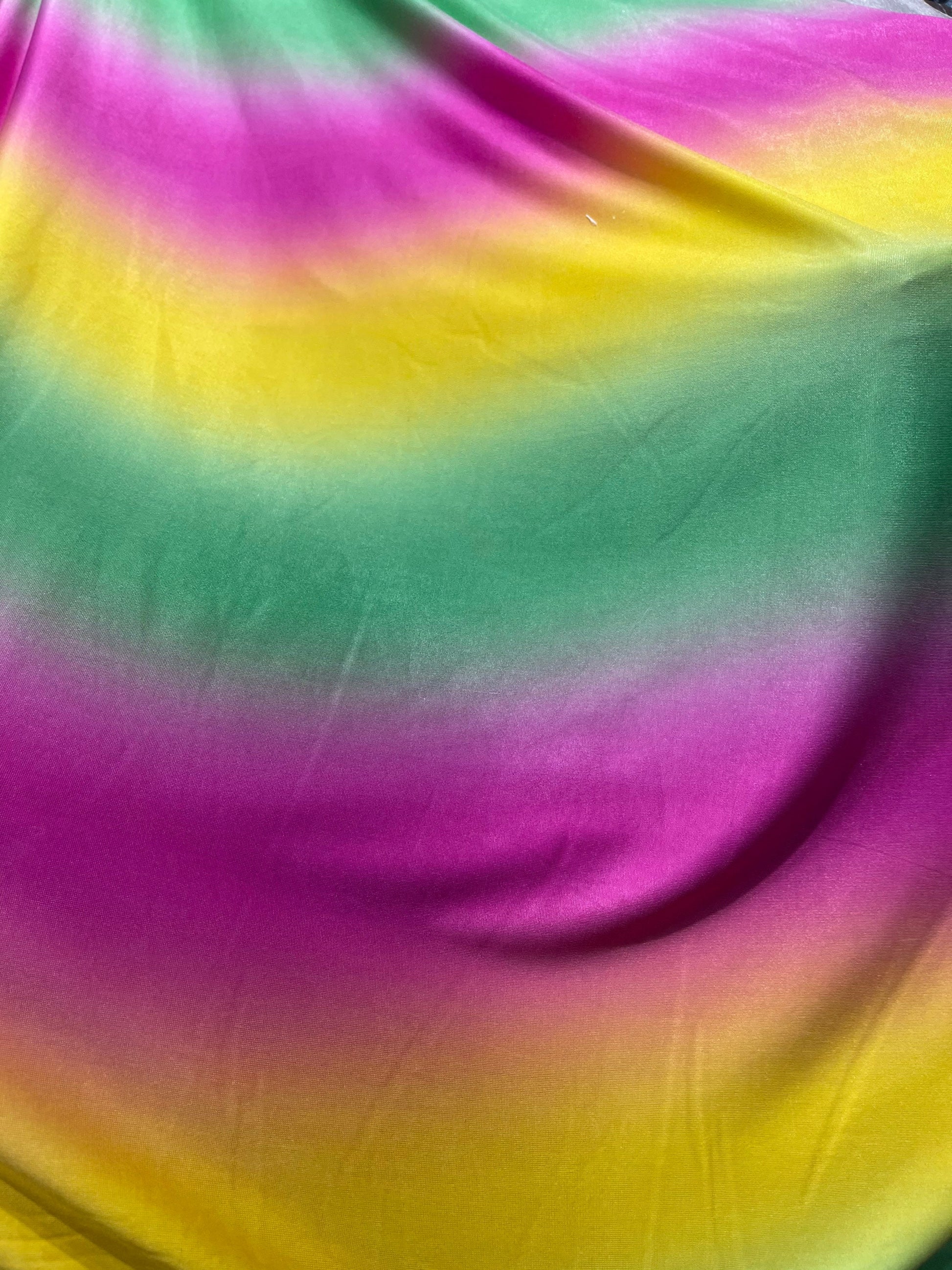 Rainbow design print on poly spandex medium weight 4-way stretch 58/60” Sold by the YD. Ships Worldwide from Los Angeles California USA.